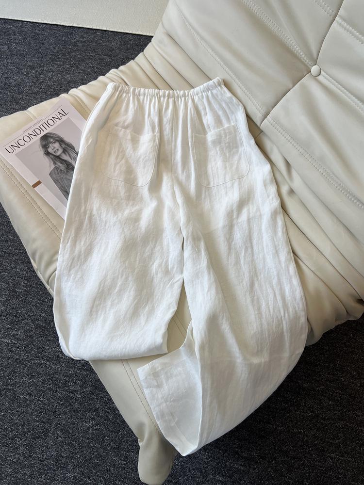 2025 Verano Nuevo Estilo Coreano Adelgazante Lino Diseño de Nicho con Sentido Occidental Pantalones Rectos Blancos de Moda para Mujer