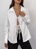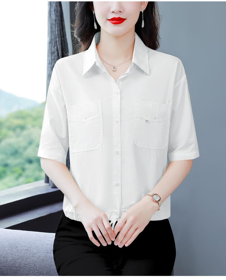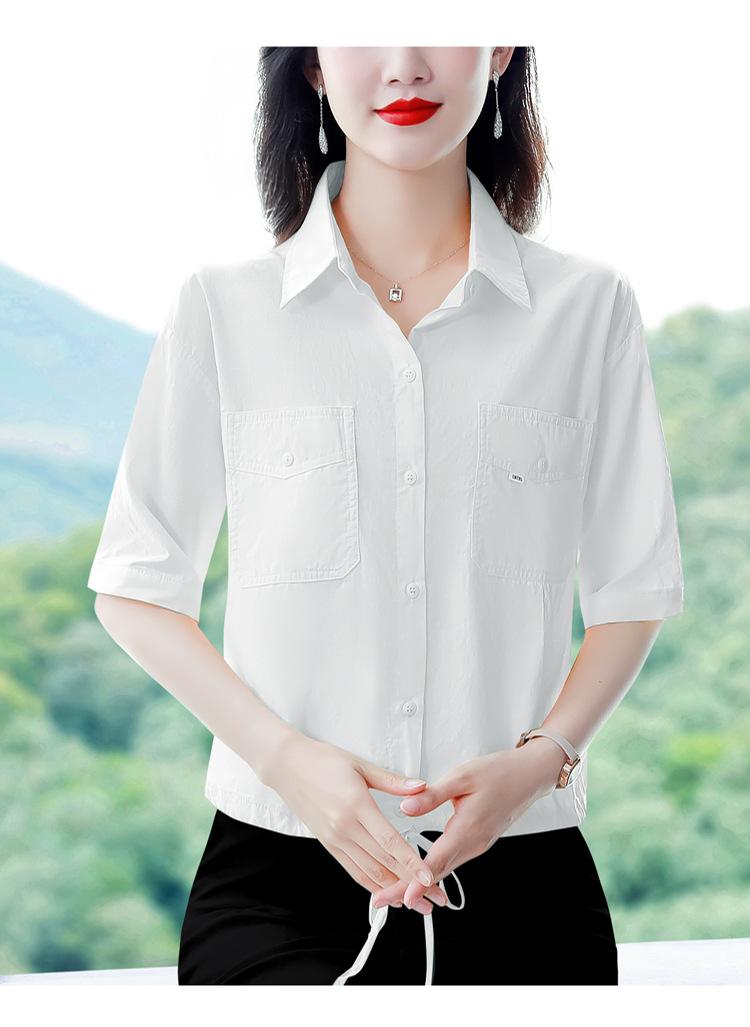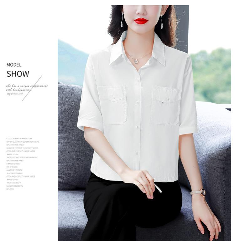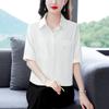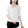 Camisa de manga corta de verano 2025 para mujer, diseño de nicho, estilo occidental, holgada, informal, con encaje y cuello polo, a la moda