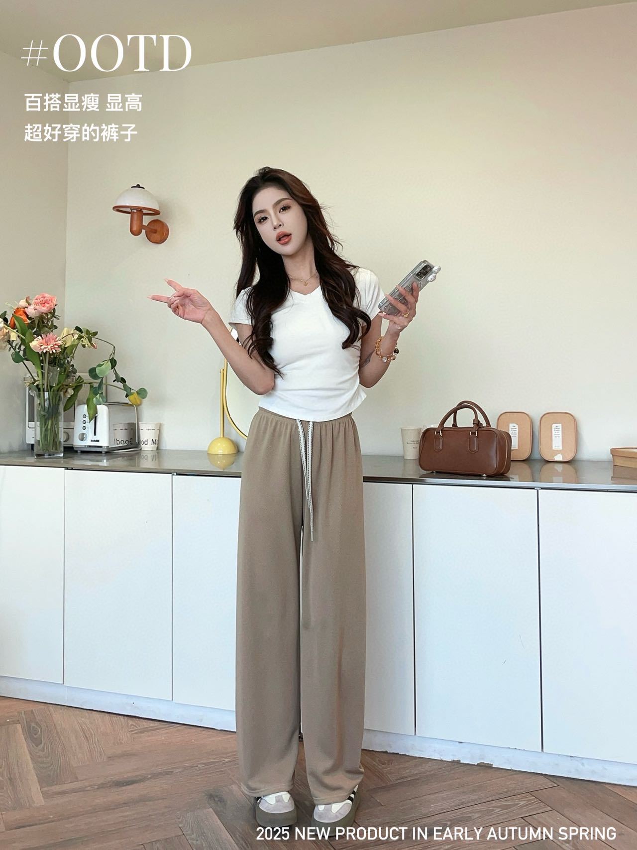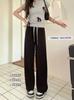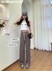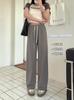 Pantalones de pata ancha con patrón de espiga para mujer Verano 2025 Nuevos pantalones rectos casuales de cintura alta Aspecto adelgazante y con caída Pantalones largos hasta el suelo