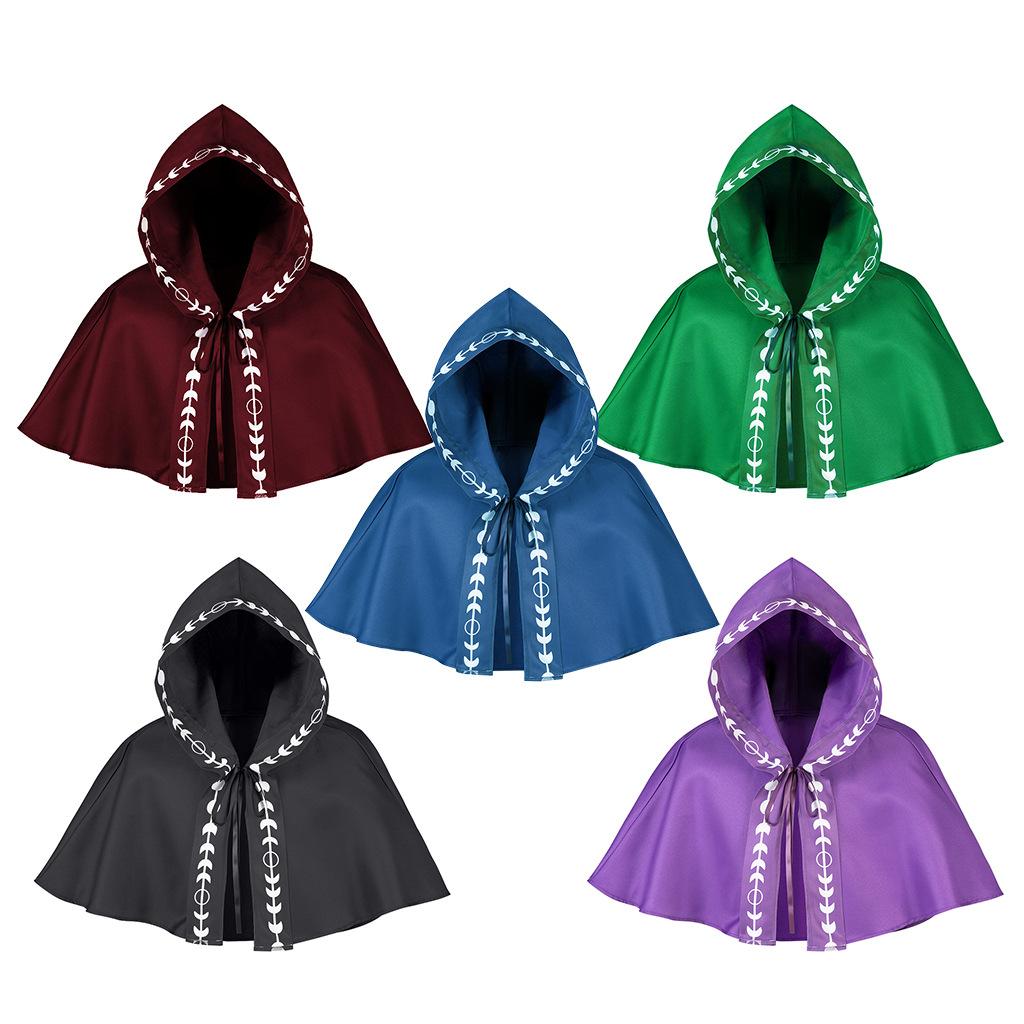 Capa Corta con Capucha Estampada Medieval Renacentista Disfraz de Escenario para Cosplay de Halloween Gótico