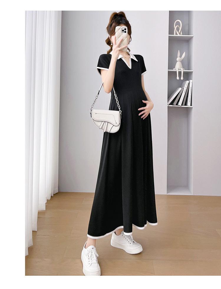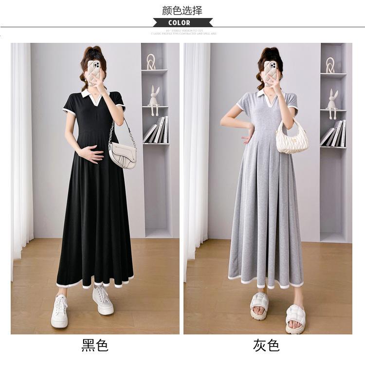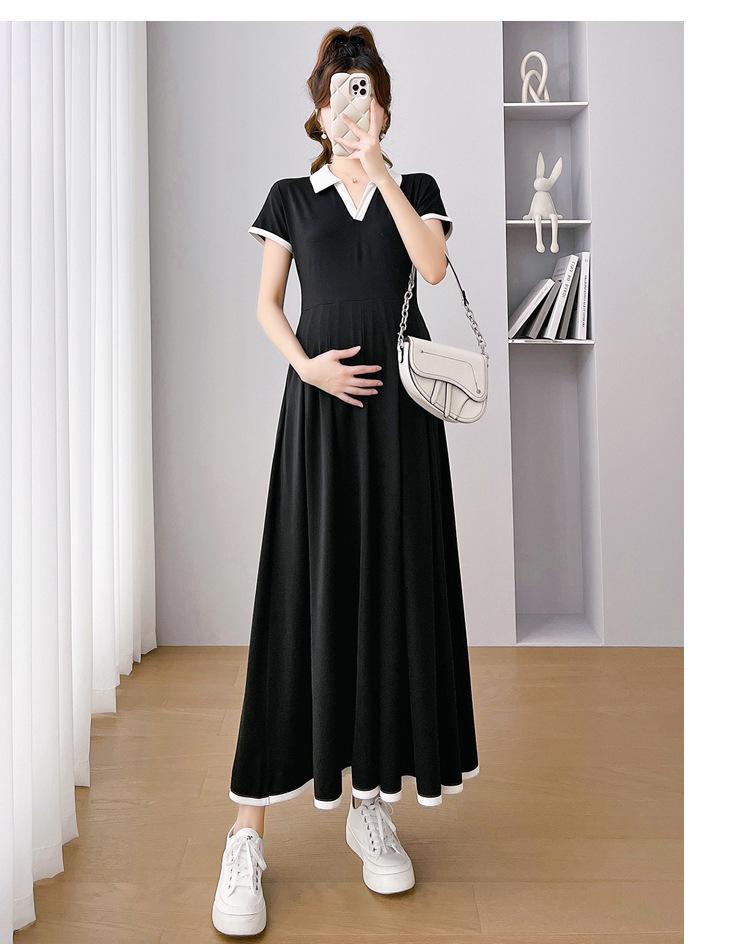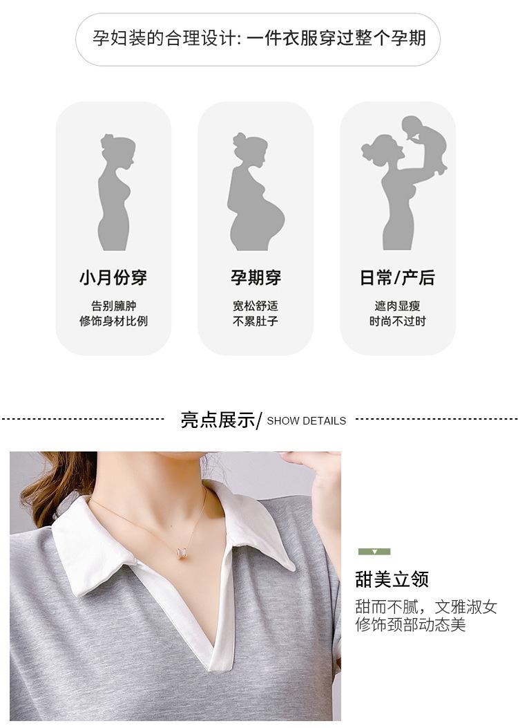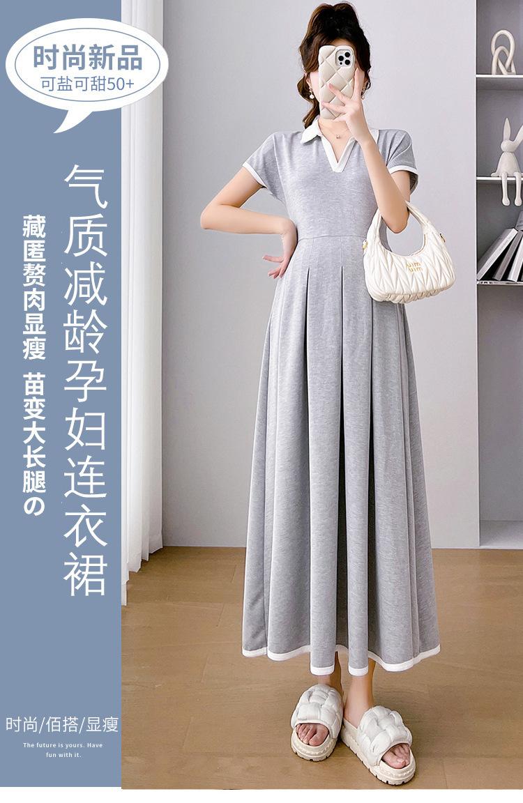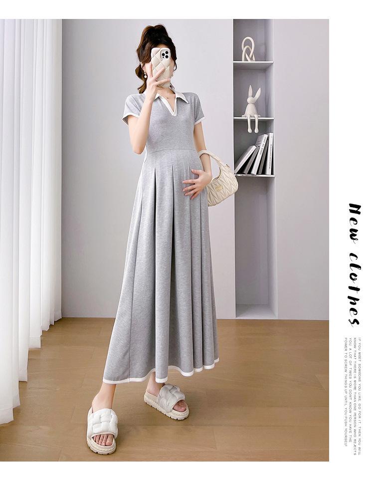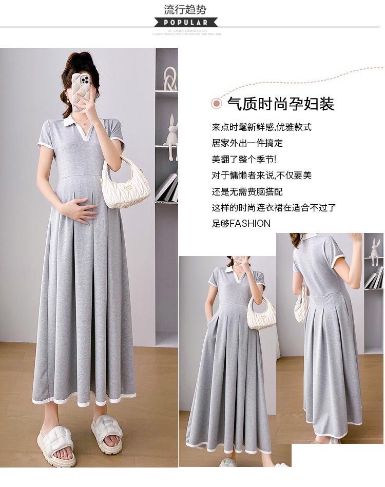 Verano Nuevo Elegante Cuello en V Francés Color Puro Cómodo Vestido de Moda para Maternidad