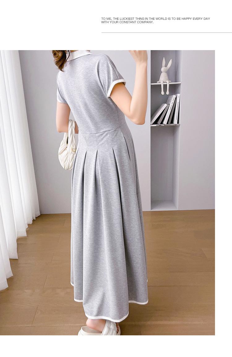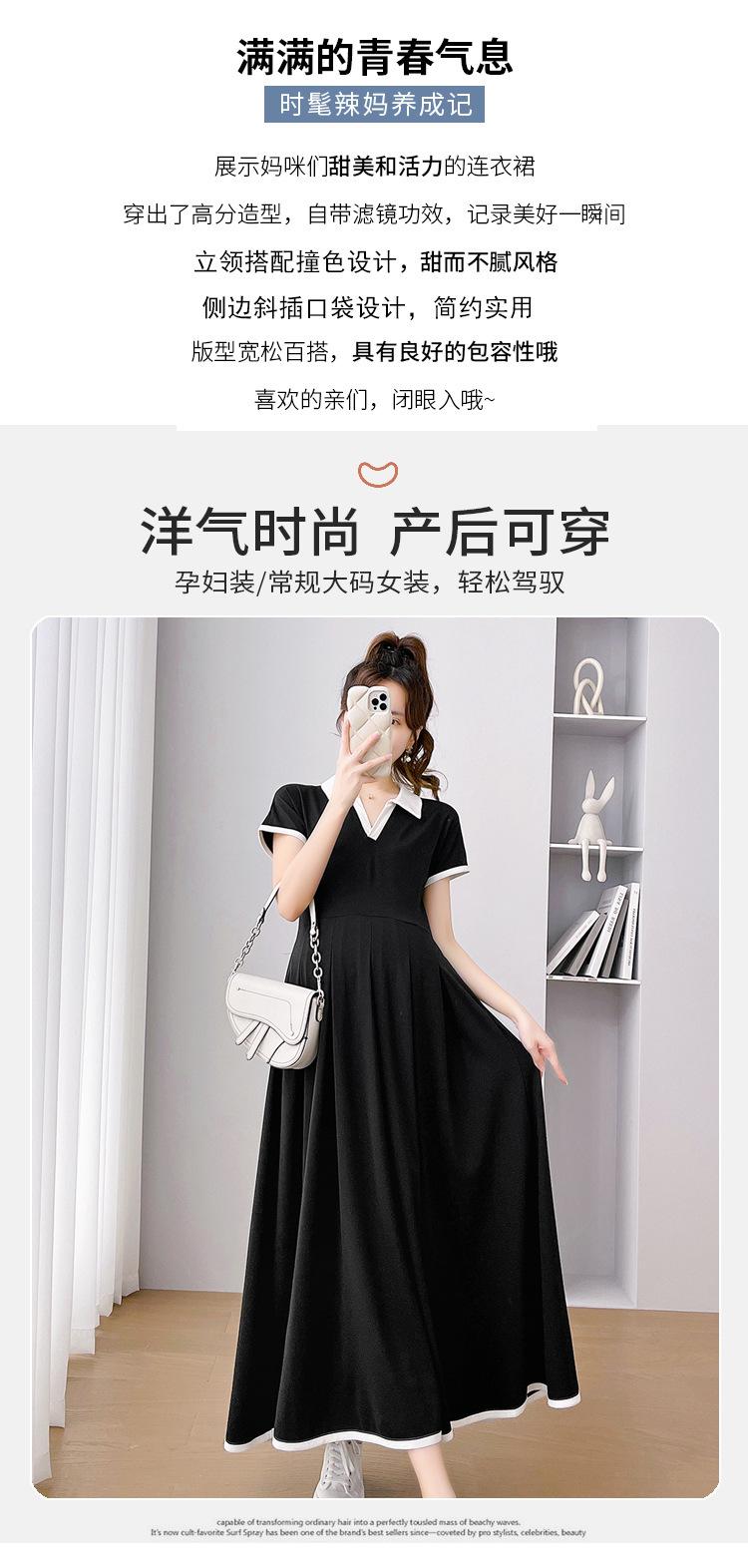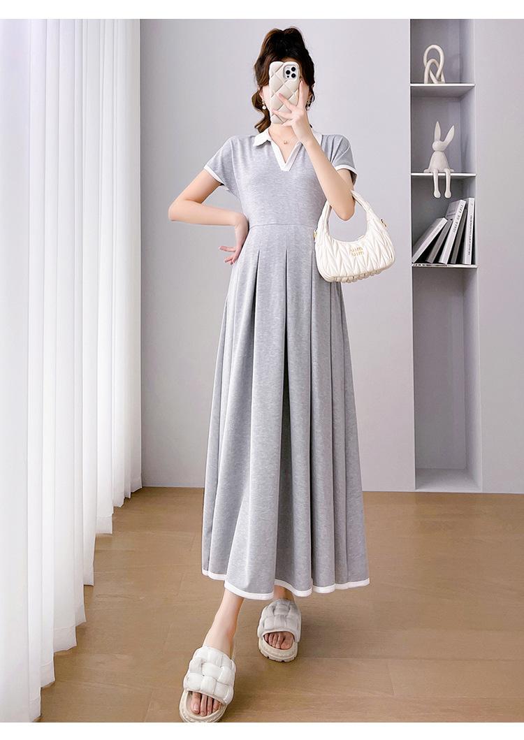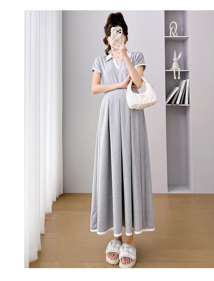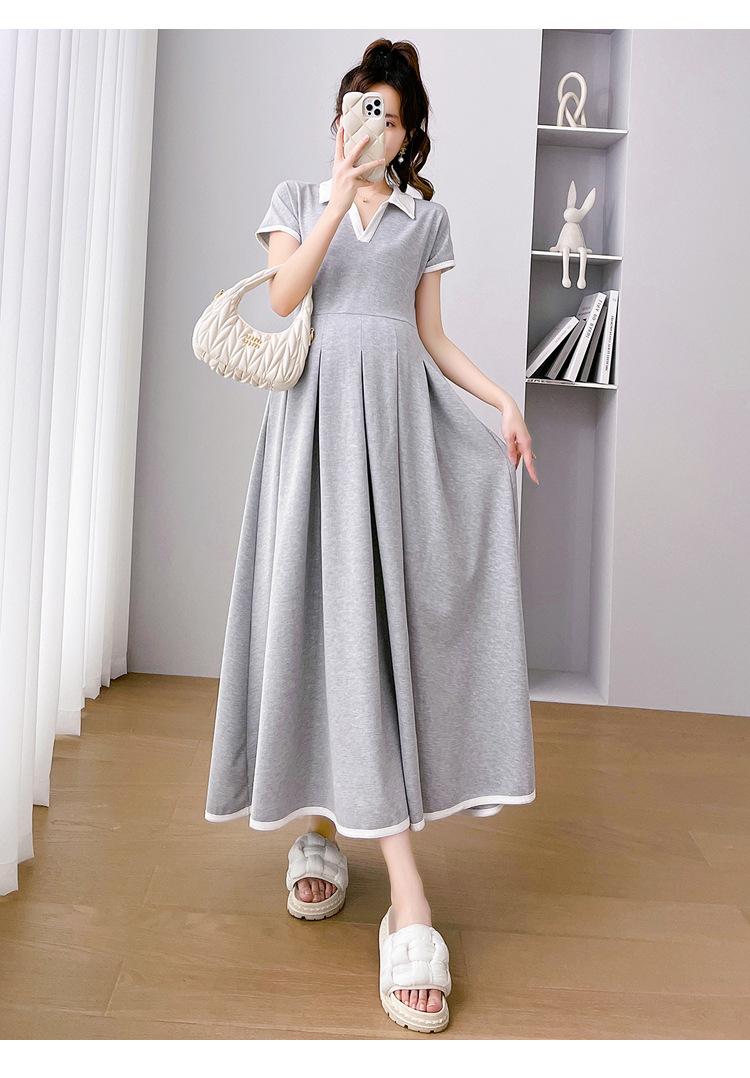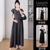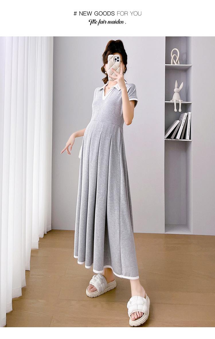Verano Nuevo Elegante Cuello en V Francés Color Puro Cómodo Vestido de Moda para Maternidad