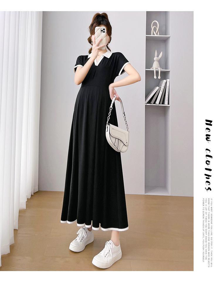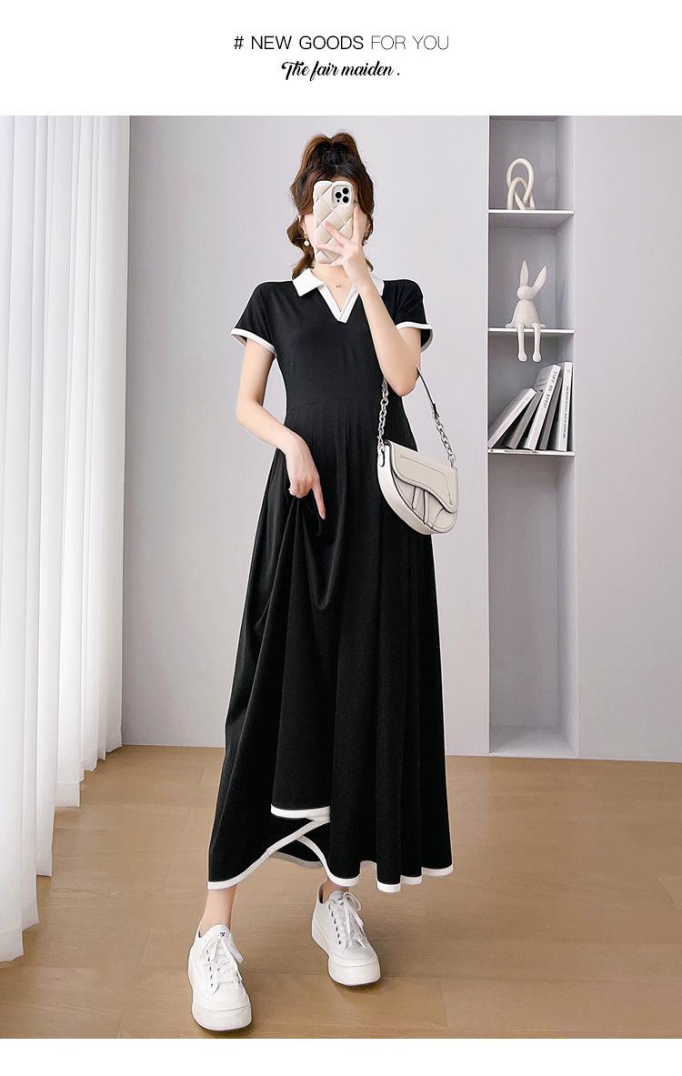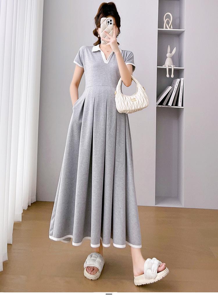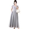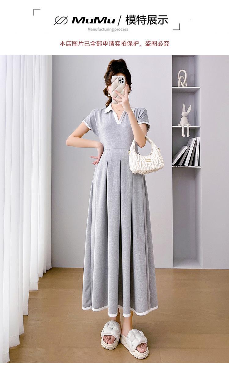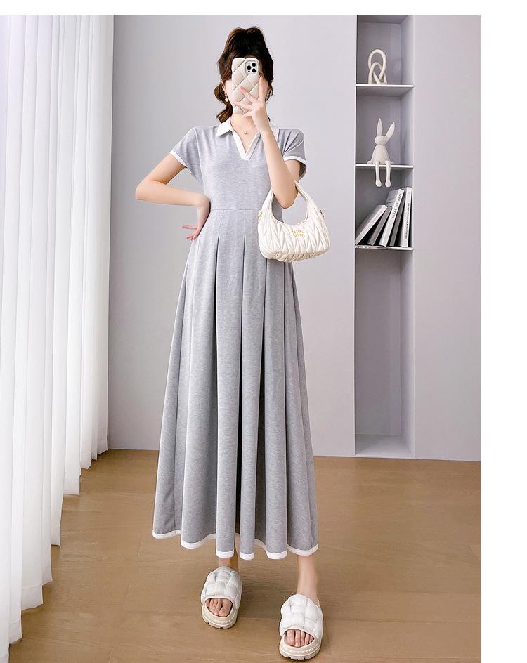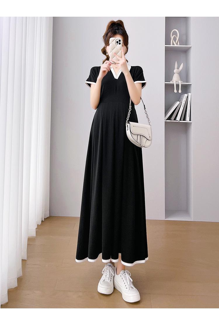 Verano Nuevo Elegante Cuello en V Francés Color Puro Cómodo Vestido de Moda para Maternidad