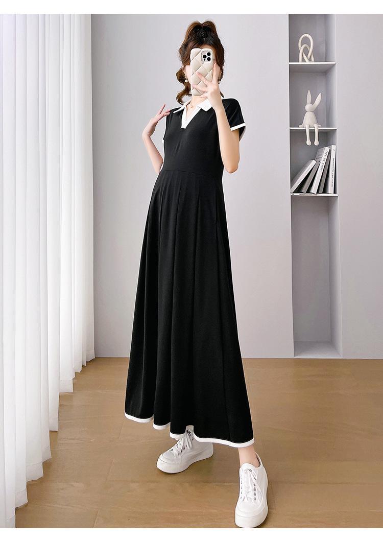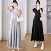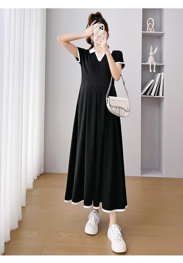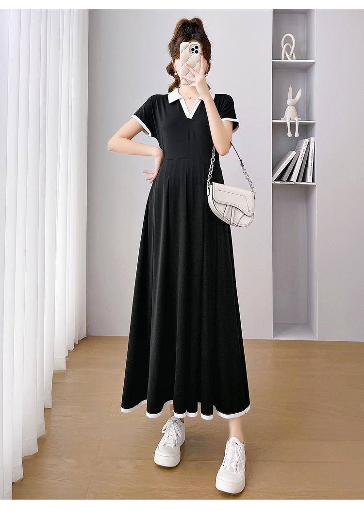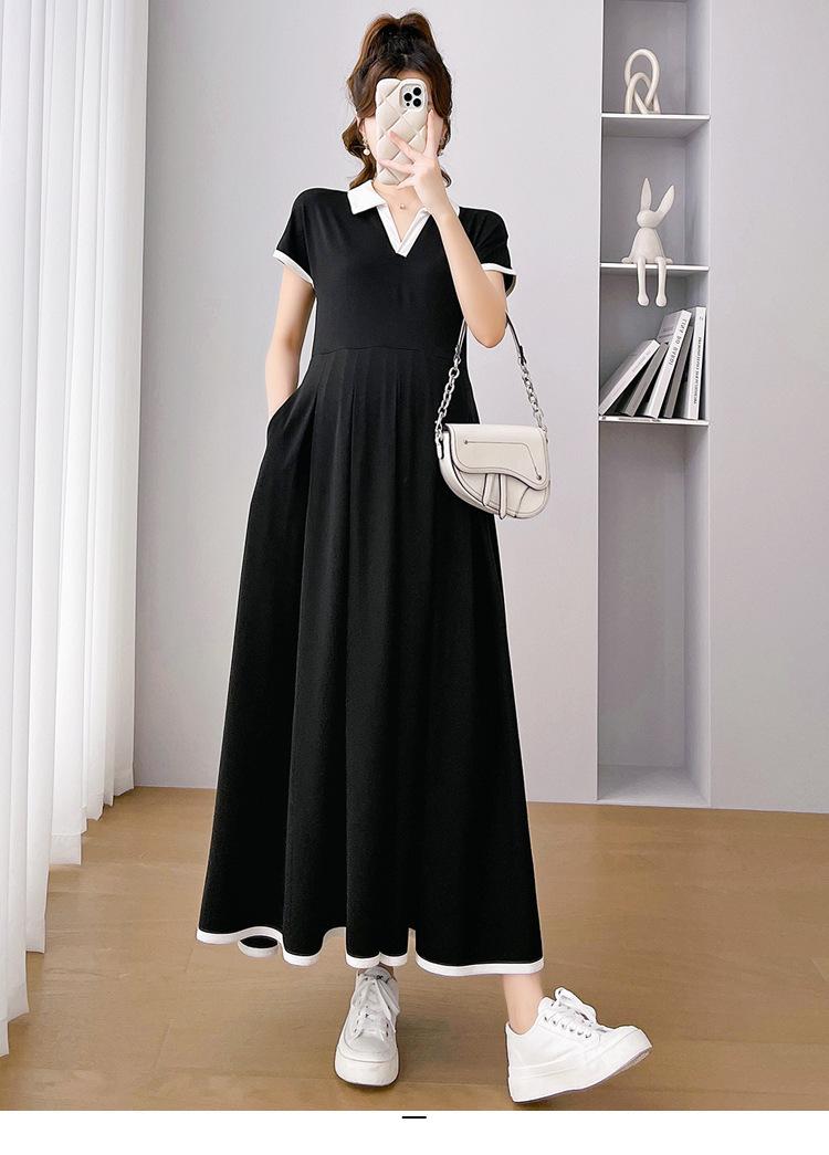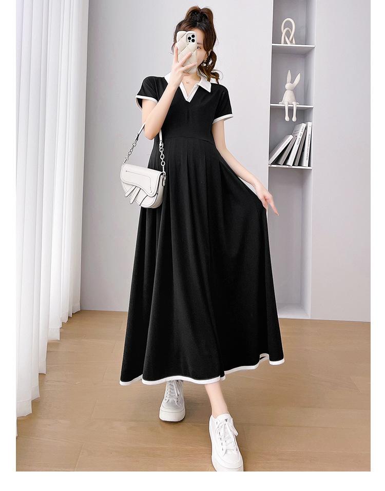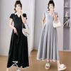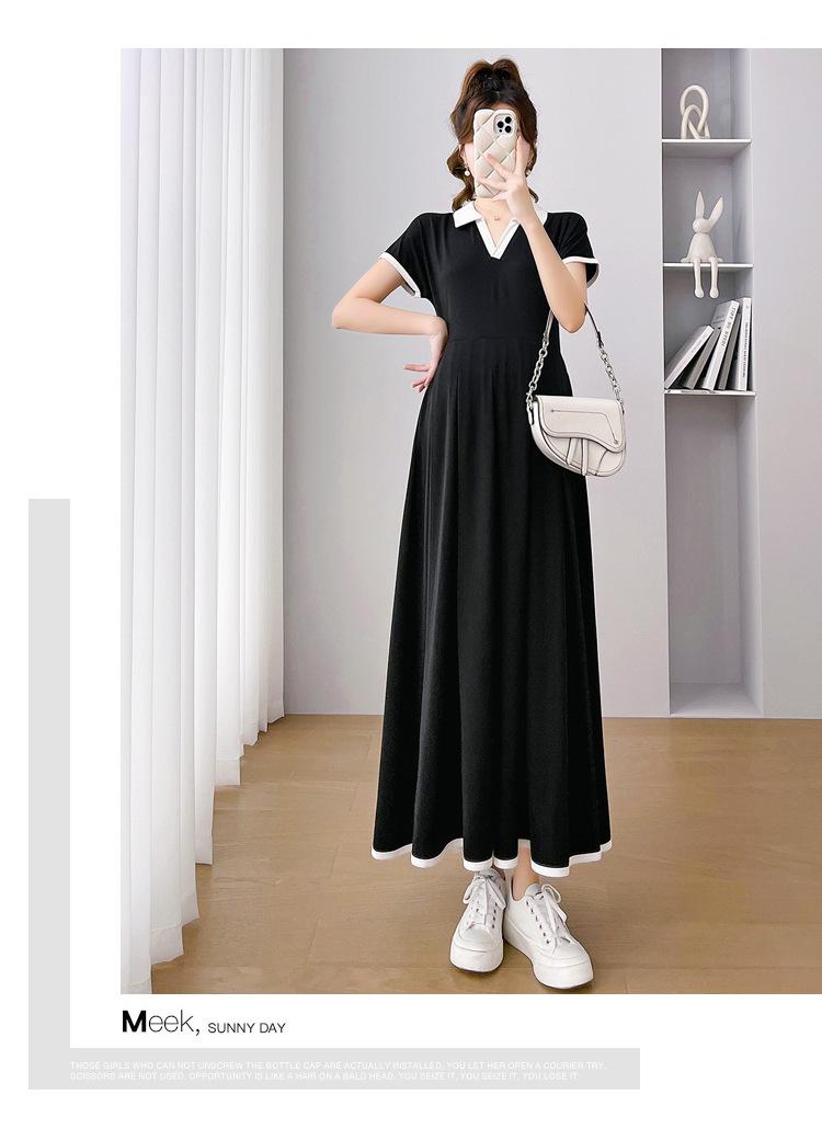 Verano Nuevo Elegante Cuello en V Francés Color Puro Cómodo Vestido de Moda para Maternidad