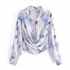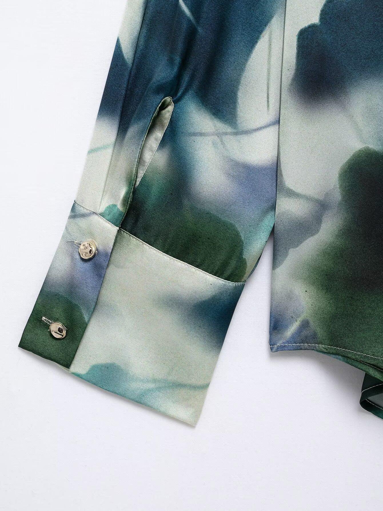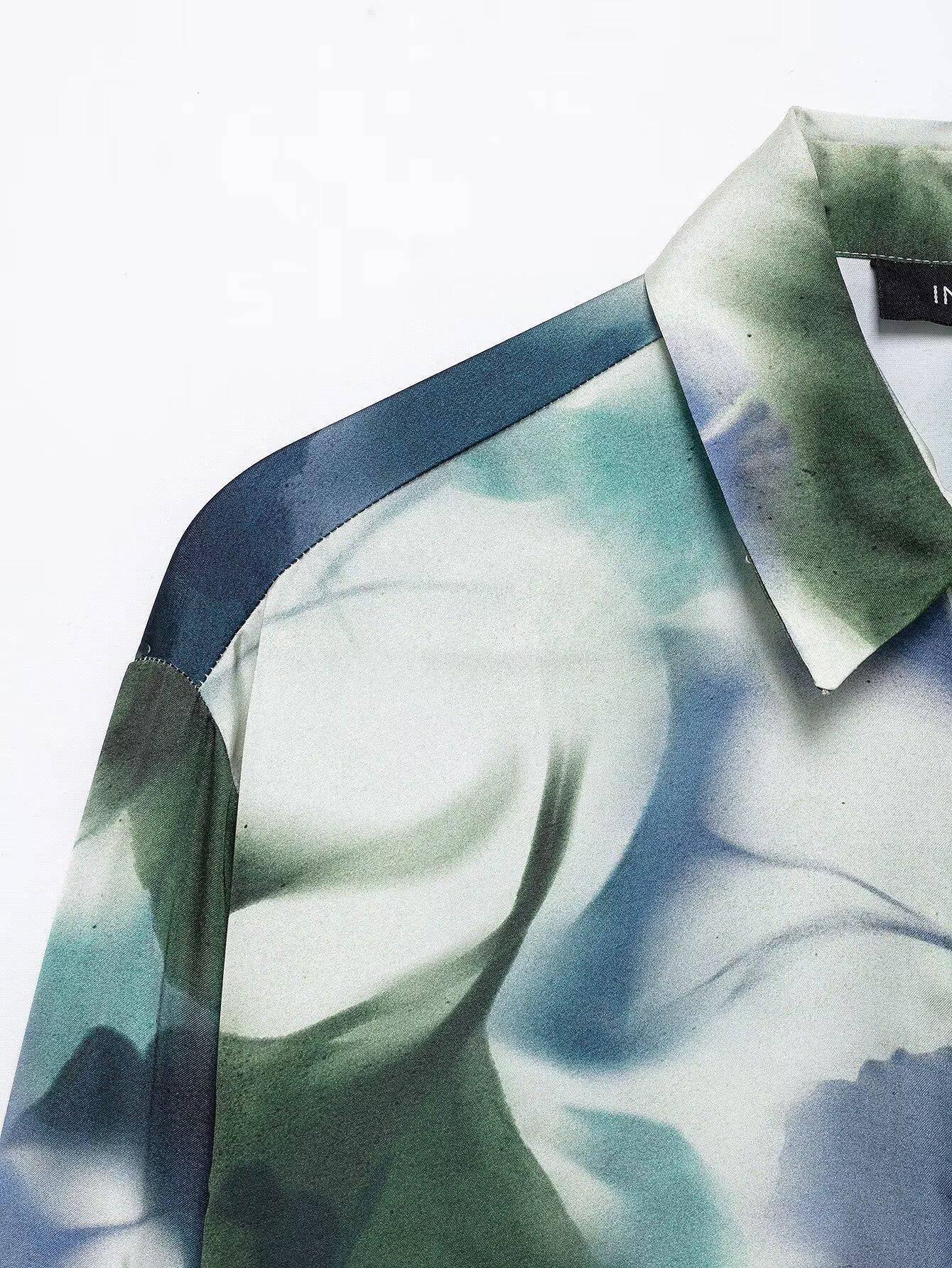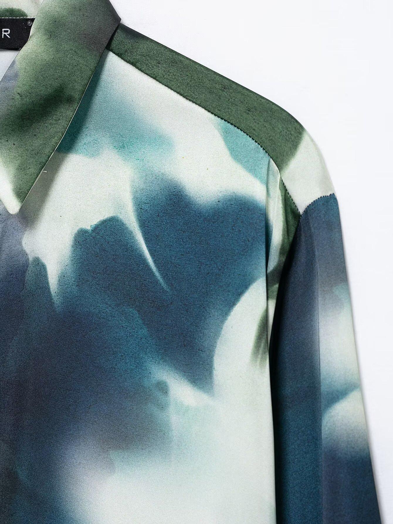 Venta al por mayor de comercio exterior Viento europeo y americano Moda casual estampada primavera y verano 2025 Camisa de solapa con textura de satén de seda para mujer D6238108