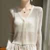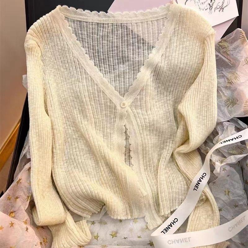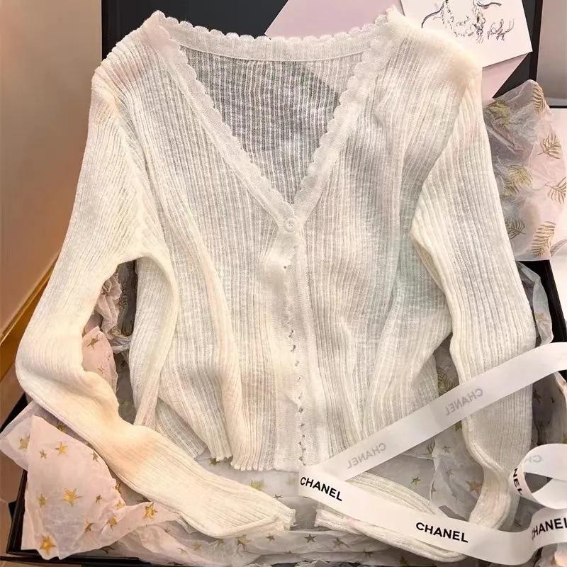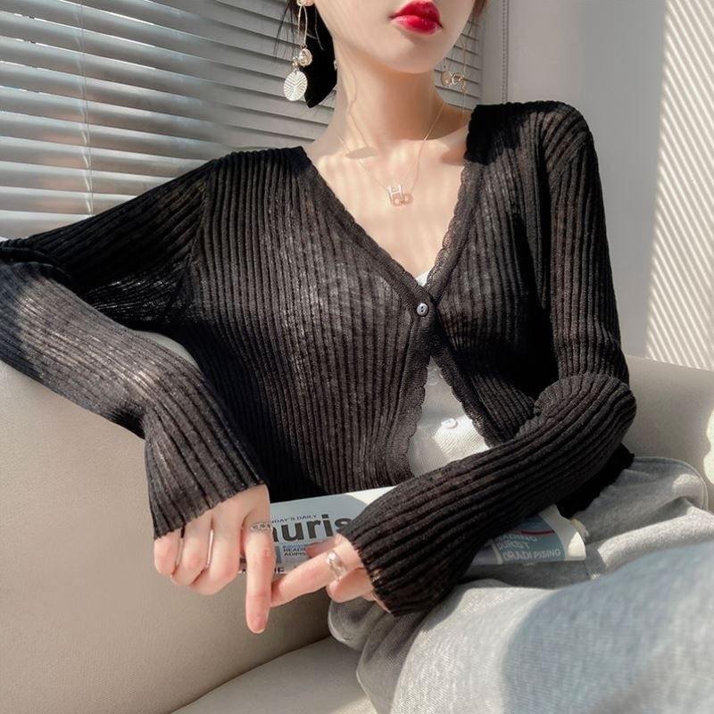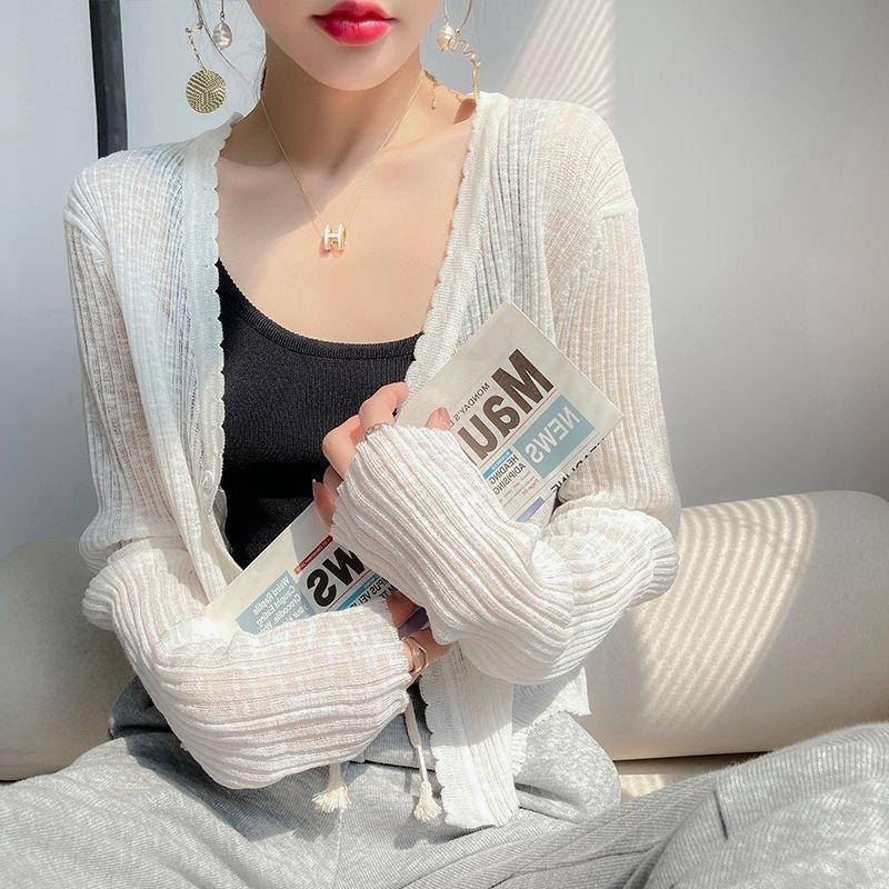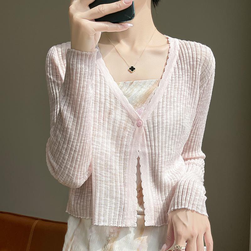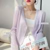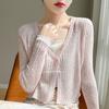 Cárdigan corto con protector solar para mujer, tejido de seda helada, manga larga, cuello en V, chal exterior, camisa con aire acondicionado, novedad de verano