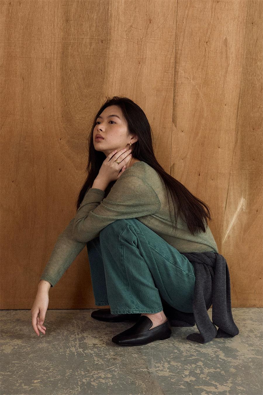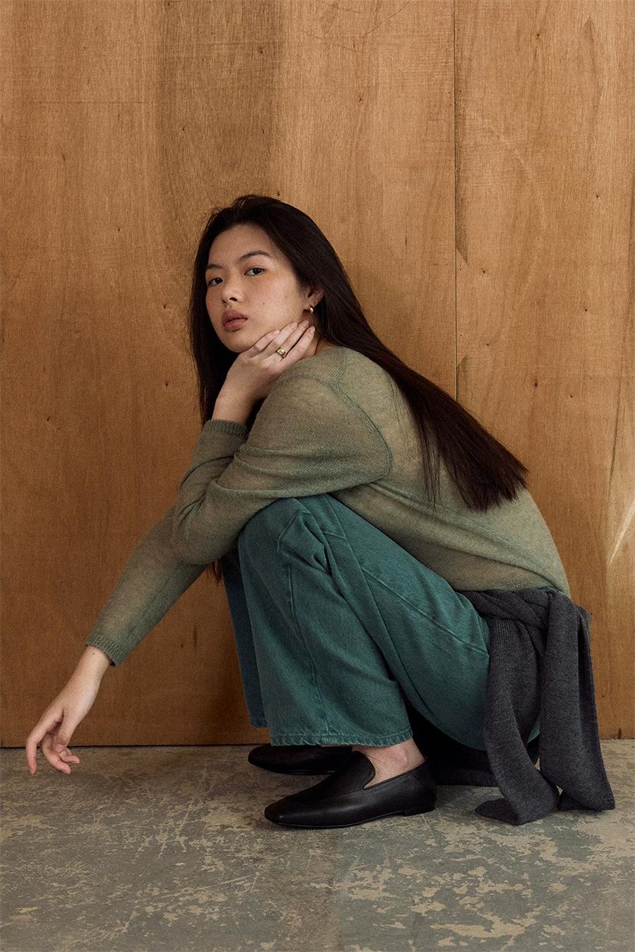 La parte superior verde oliva tiene un filtro suave y es muy elegante.