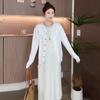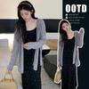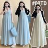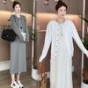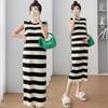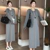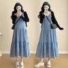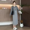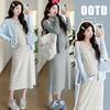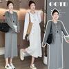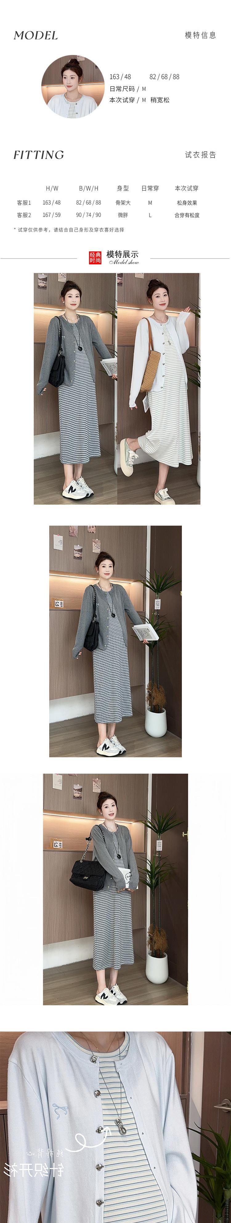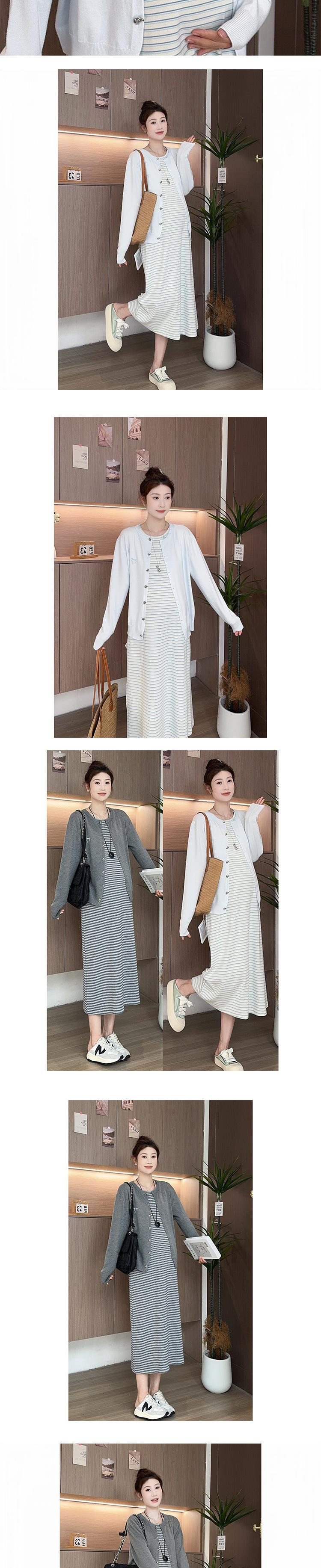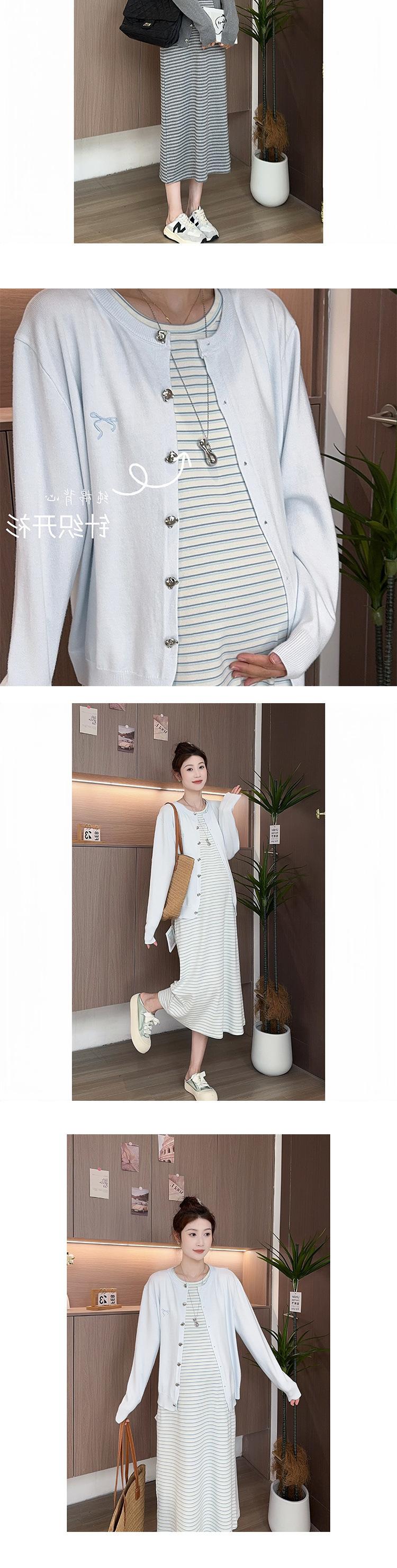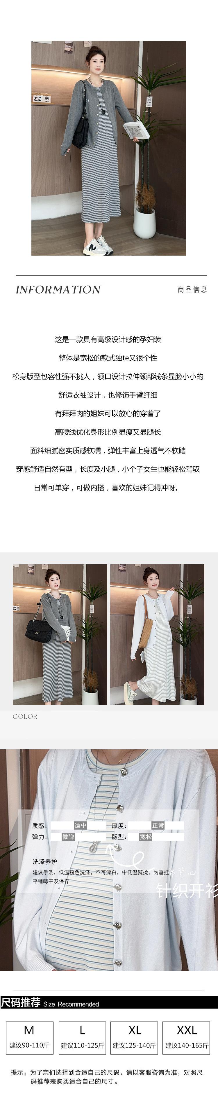 2025 Nuevo Cárdigan de Primavera para Mujeres Embarazadas con Hebilla Metálica de Oso y Bordado de Mariposas + Vestido Chaleco Holgado a Rayas
