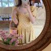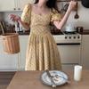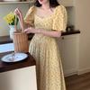 Vestido blanco con mangas abullonadas y cuello cuadrado, estilo romántico francés para vacaciones, con estampado floral, 77675
