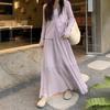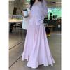 Elegante Falda Plisada Morada para Mujer Primavera 2025 Nueva Dulce Adelgazante de Cintura Alta Bajo Amplio A-Line Falda Larga a la Moda