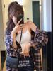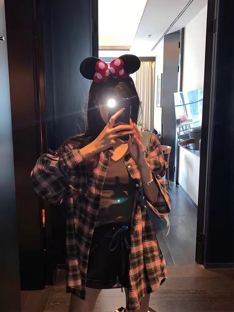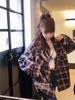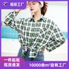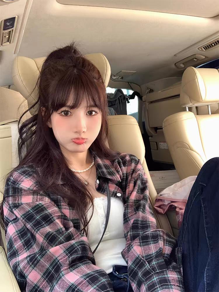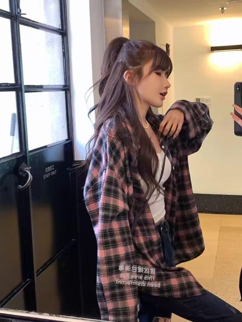 Camisa a cuadros vintage negra y rosa para mujer, abrigo holgado de primavera y verano con diseño de nicho, resistente al sol