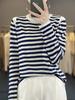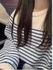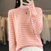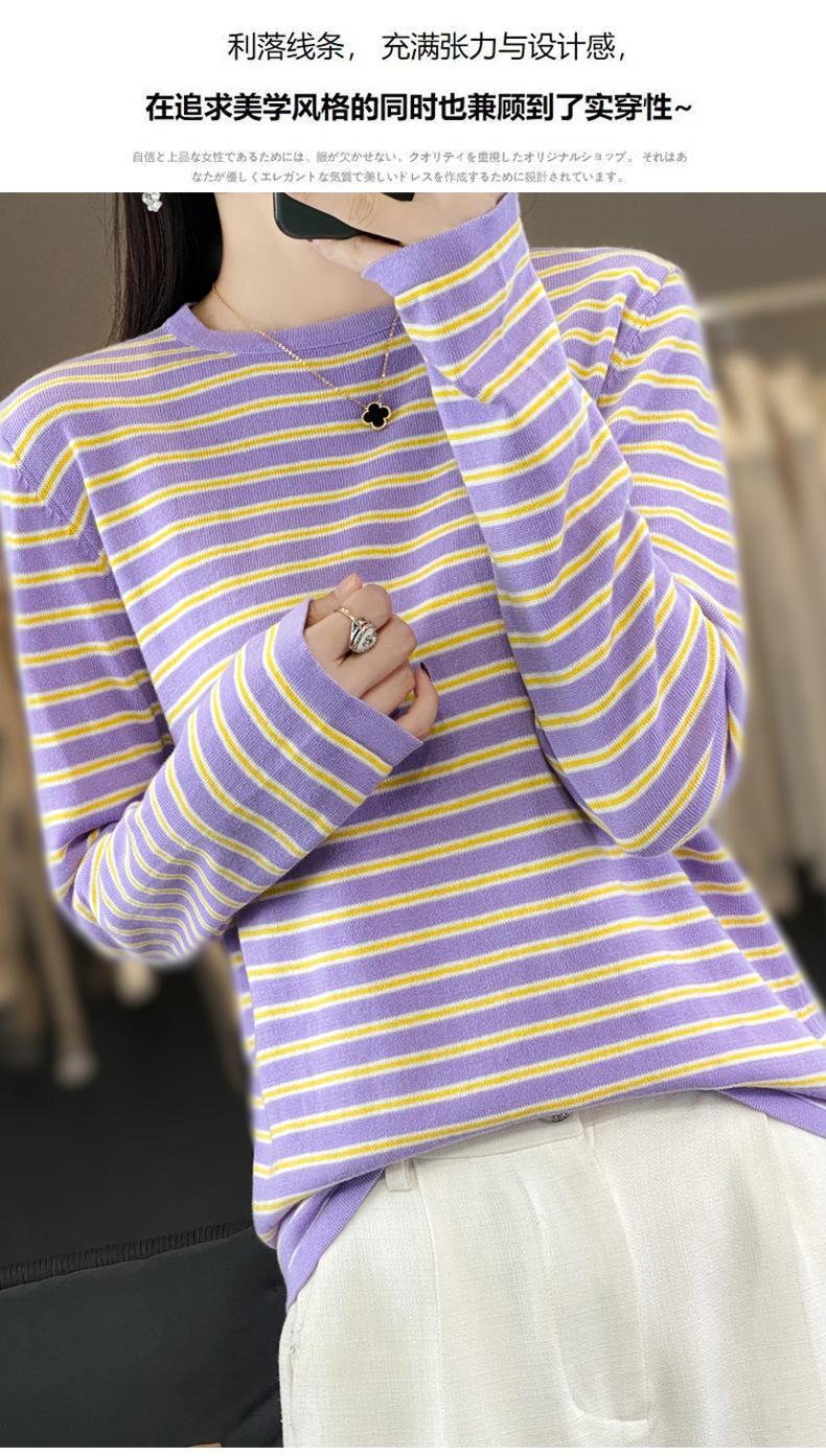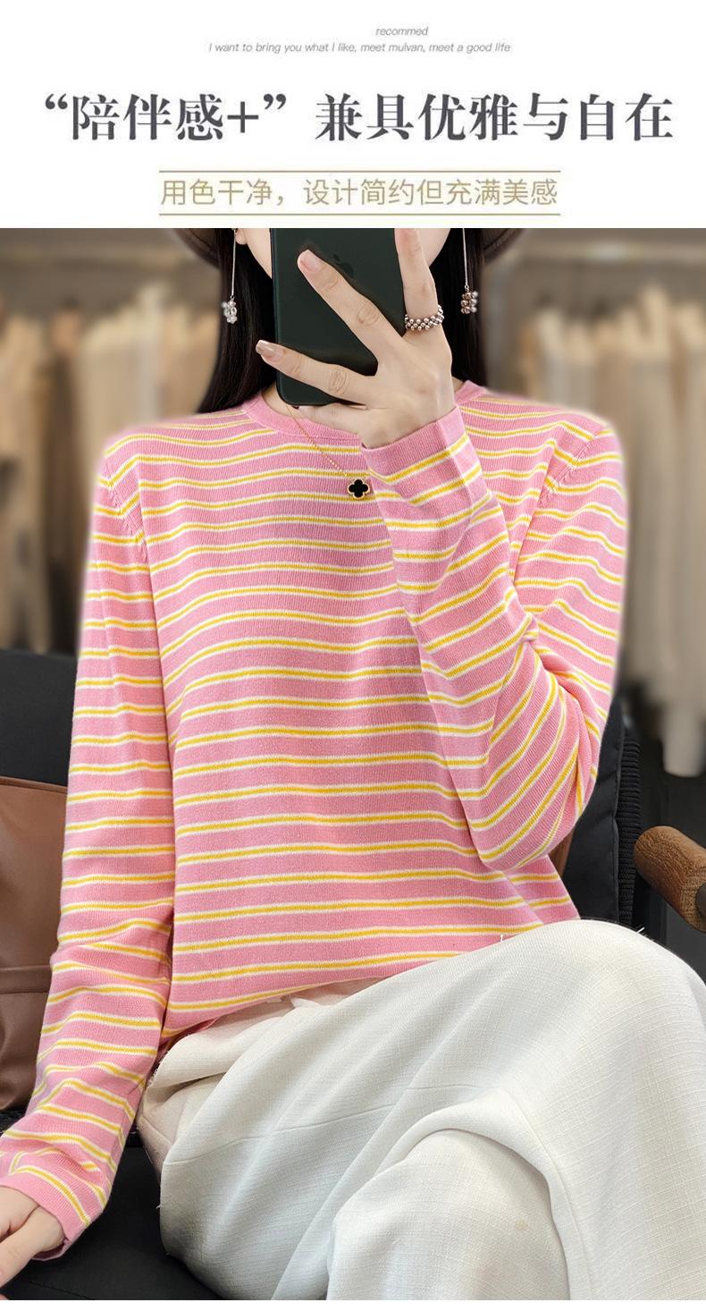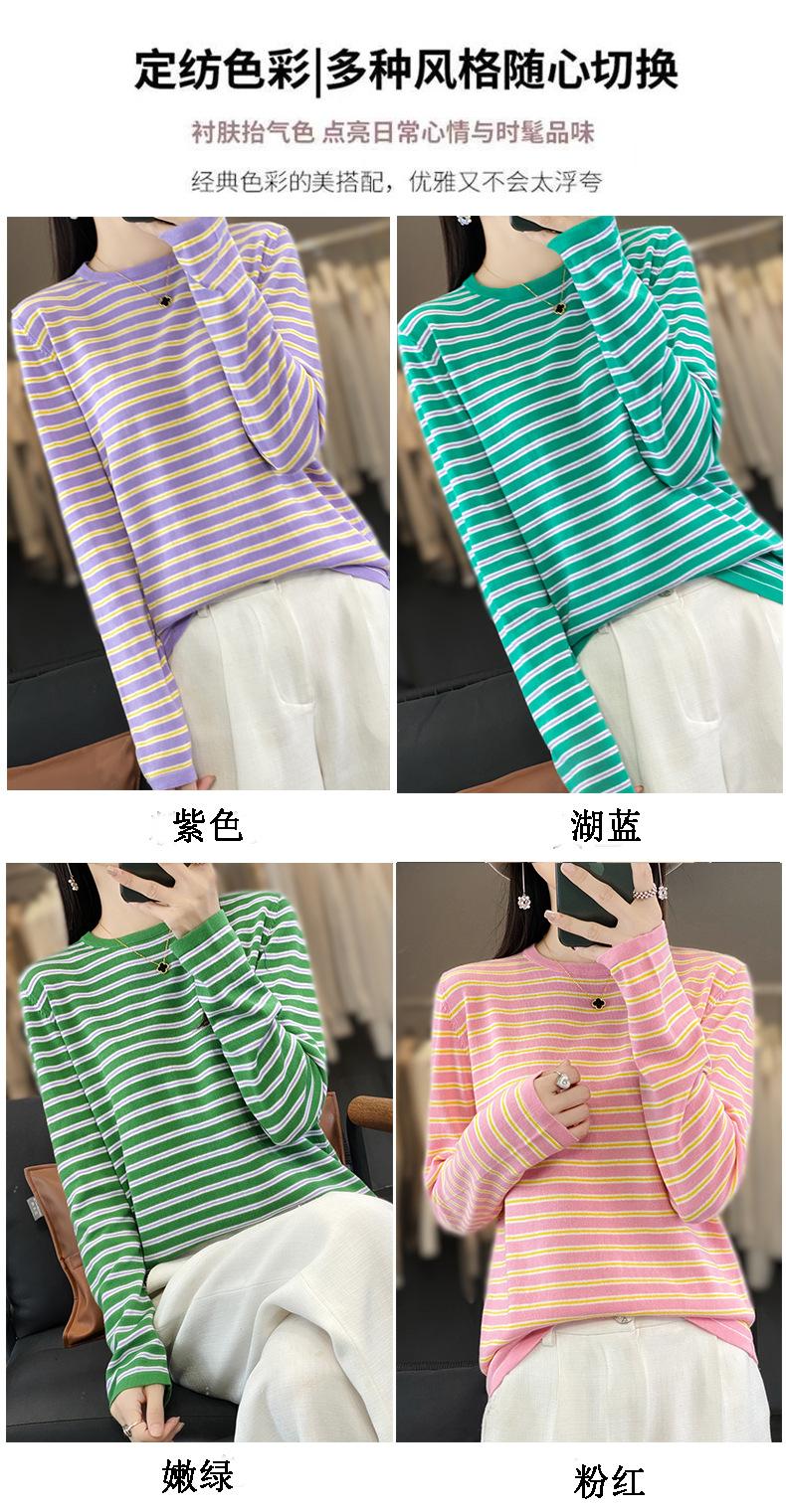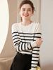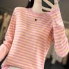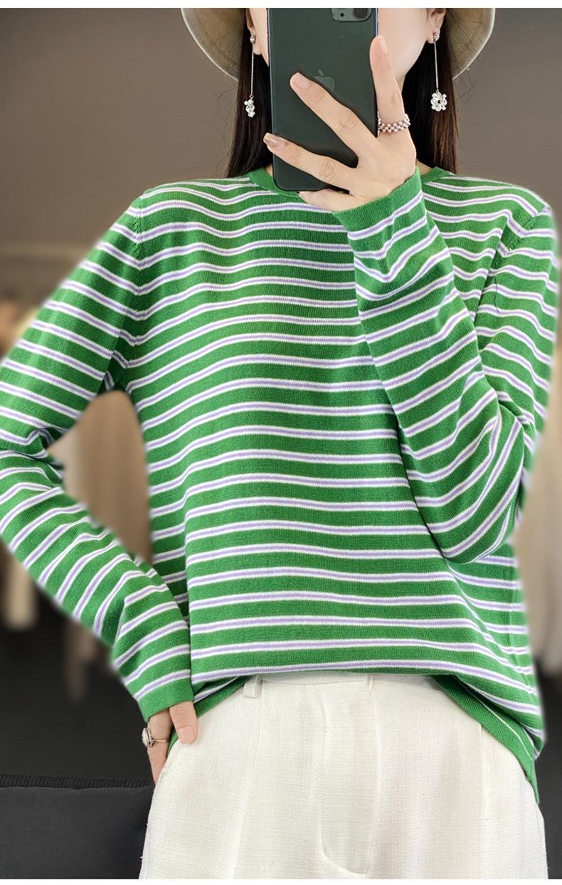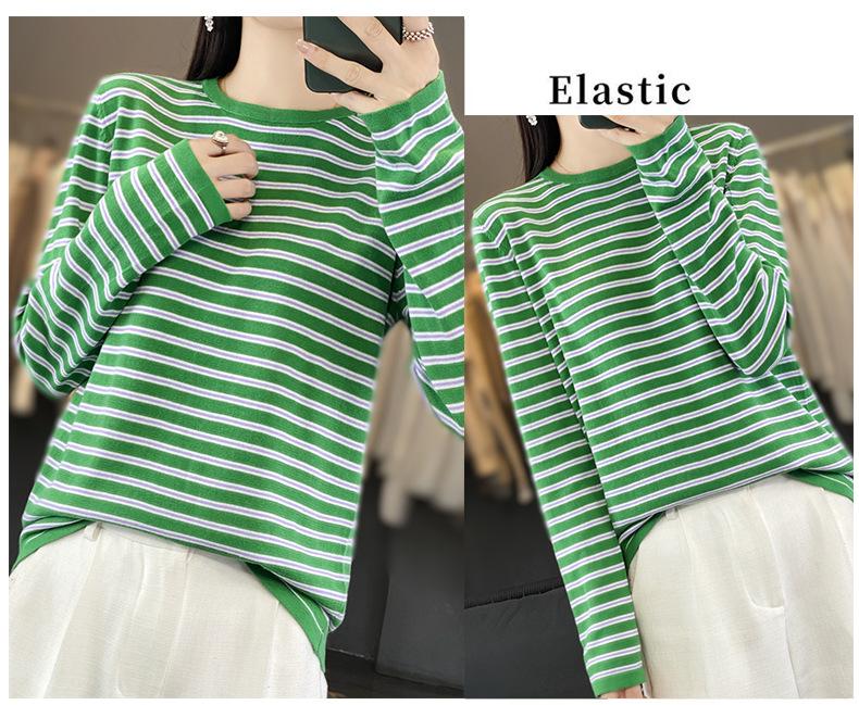 Estilo Coreano Algodón Puro Tejido Cuello Redondo Raya Horizontal Jersey de Mujer Suelto Slim Commuter Primavera Nuevo Tejido Manga Larga Ropa Exterior