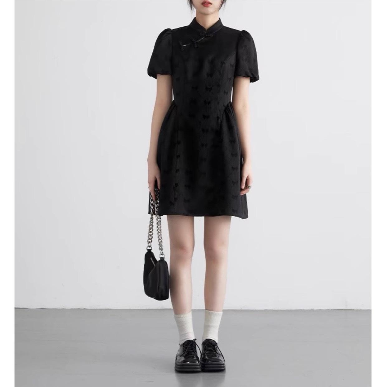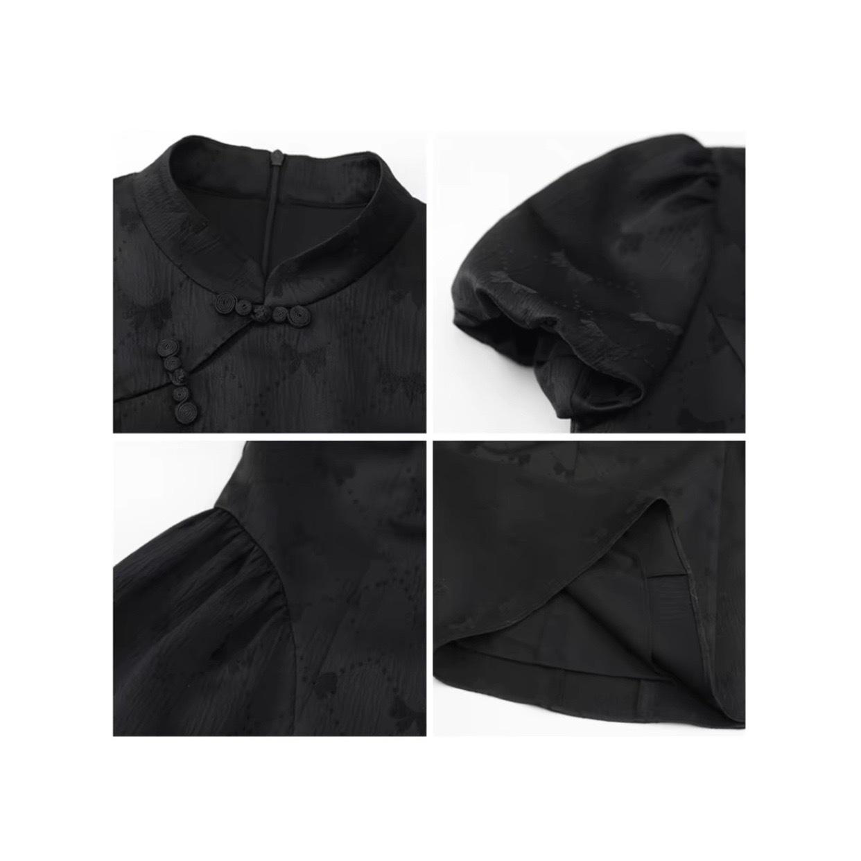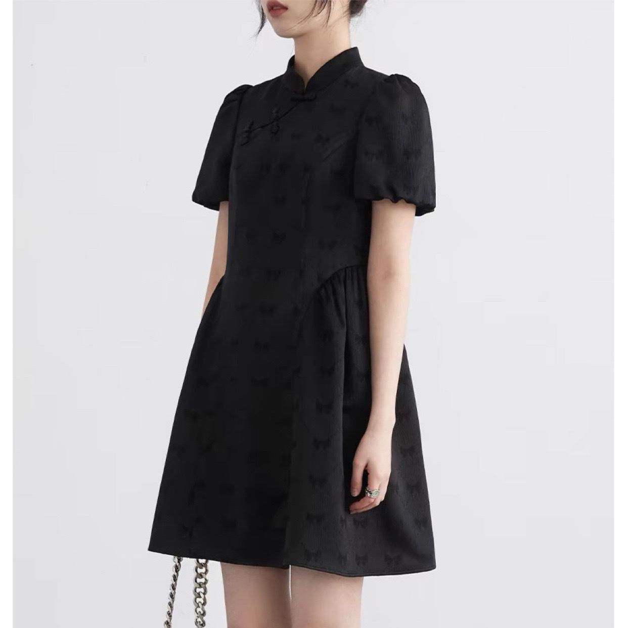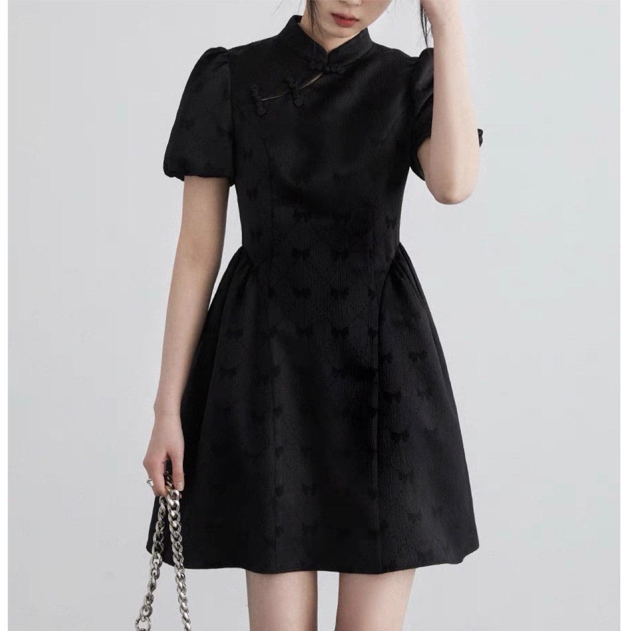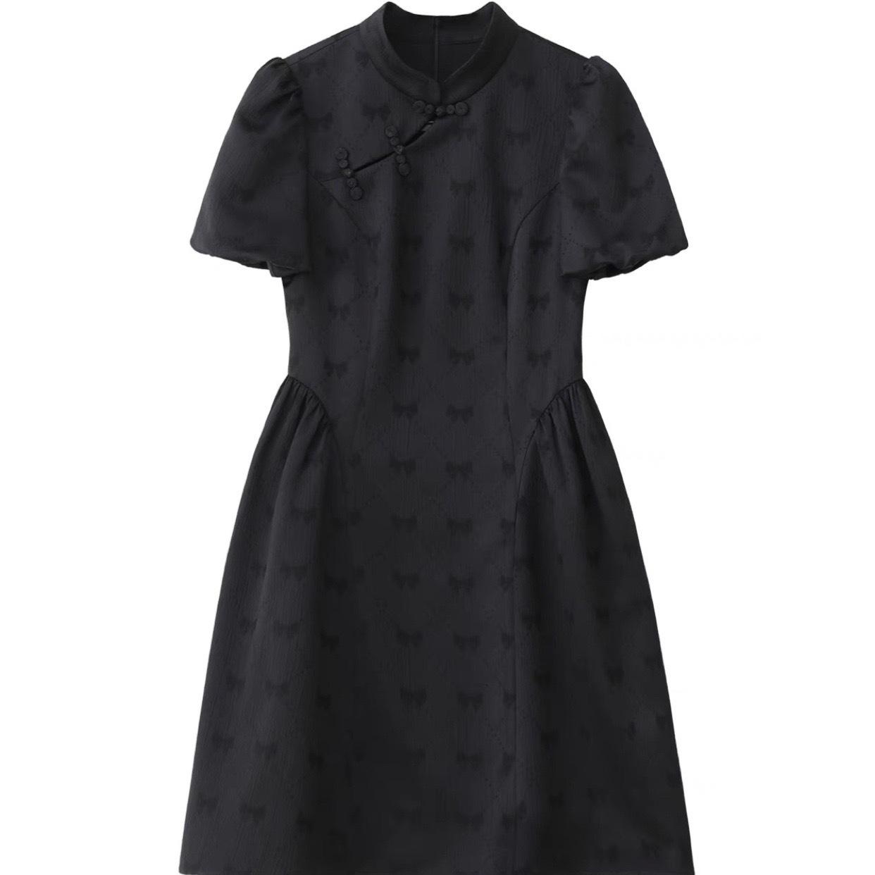 Vestido cheongsam de primavera CHIVEN "Salida romántica", con lazo de imitación de ácido acético y mangas cortas abullonadas.
