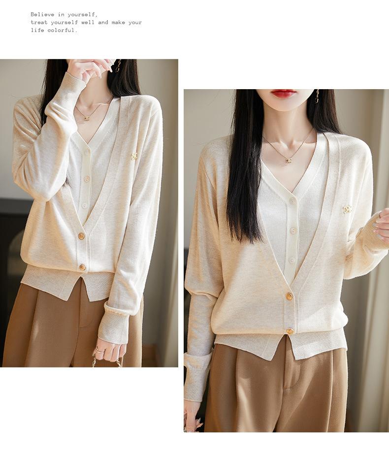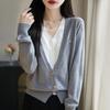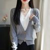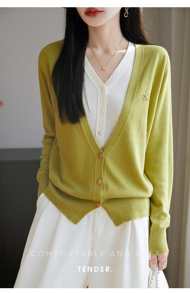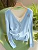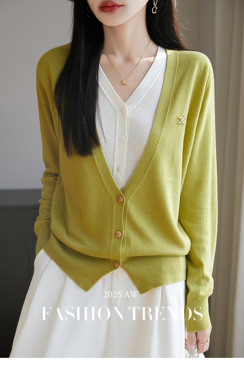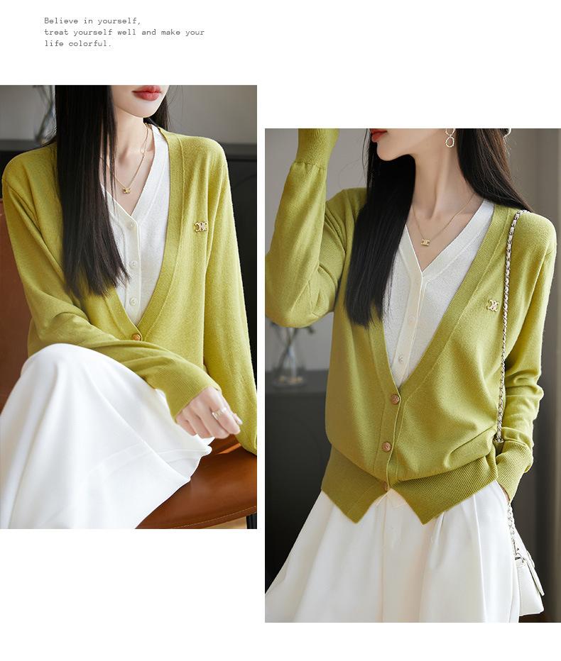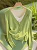 Otoño 2025 Nuevo estilo Chanel Estilo Falso Cárdigan de punto verde de dos piezas Suéter de punto único para mujer