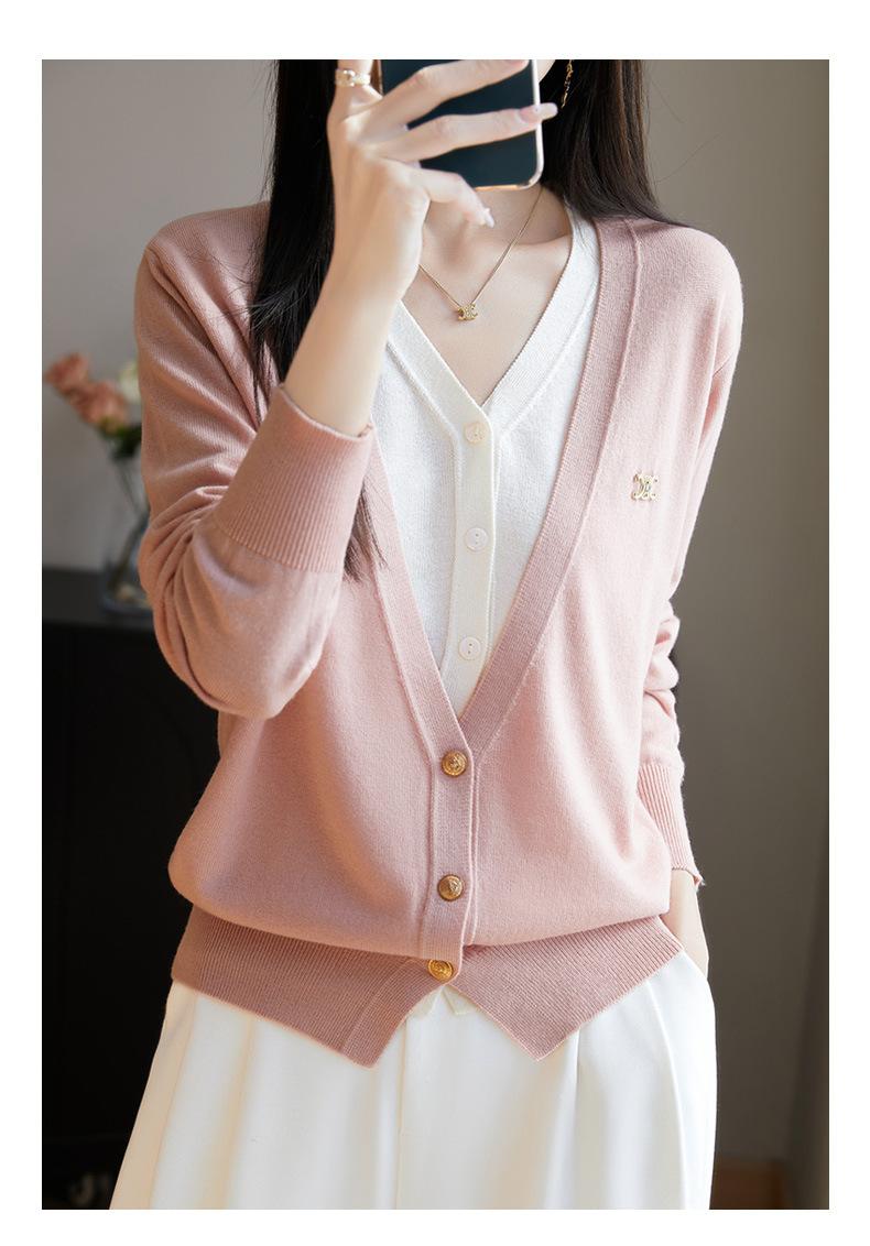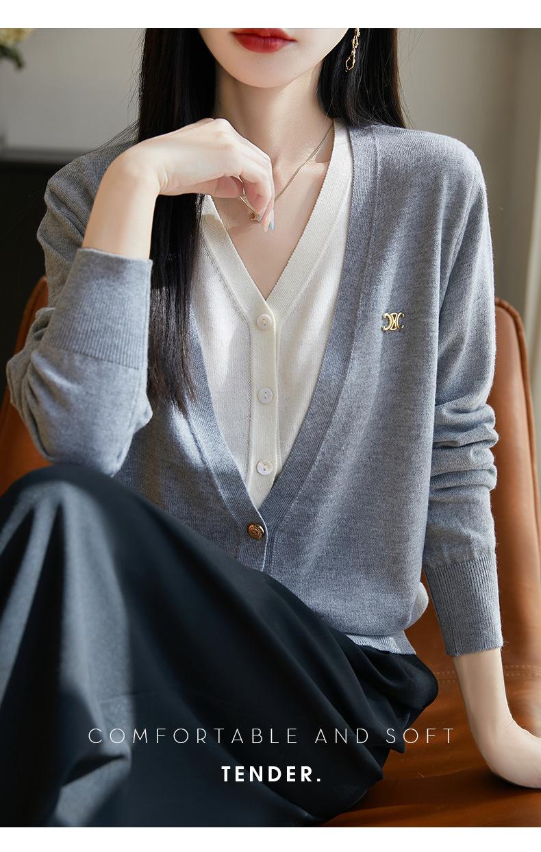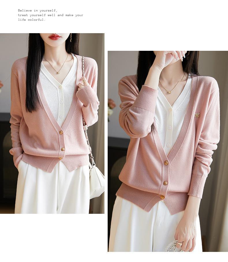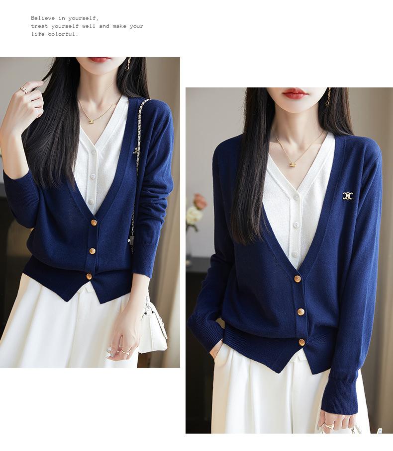 Otoño 2025 Nuevo estilo Chanel Estilo Falso Cárdigan de punto verde de dos piezas Suéter de punto único para mujer