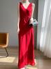 Verano Nuevo Georgette Sin Mangas Vestido Cuello V Vestido Chaleco con Cinturón para Mujer Falda Larga Encaje con Cordones Drapeado Falda para Fondo