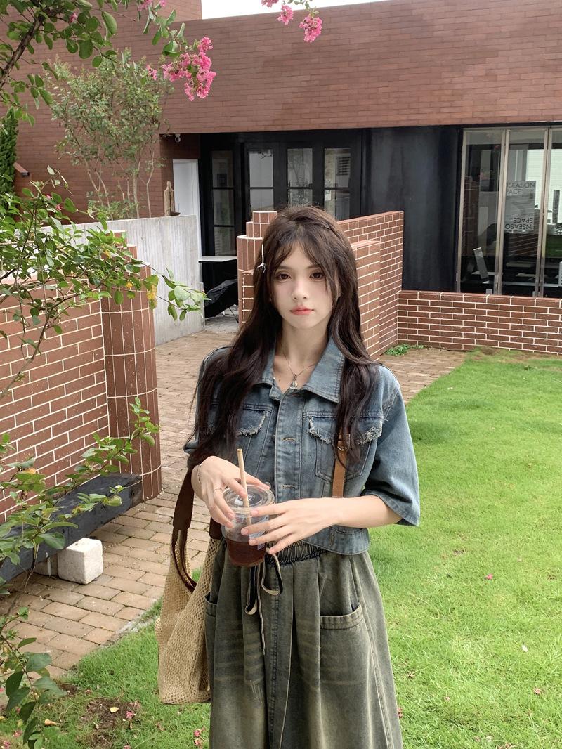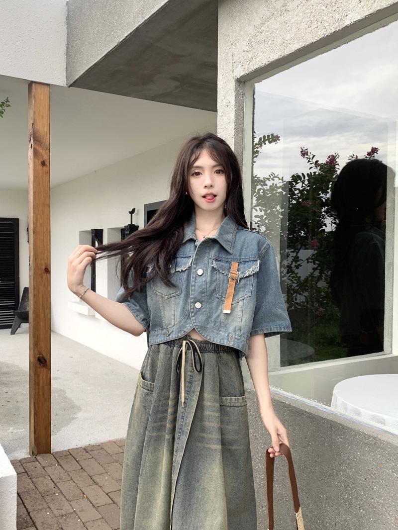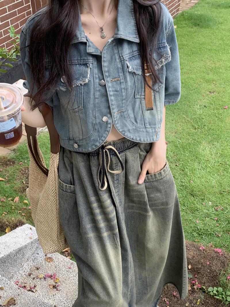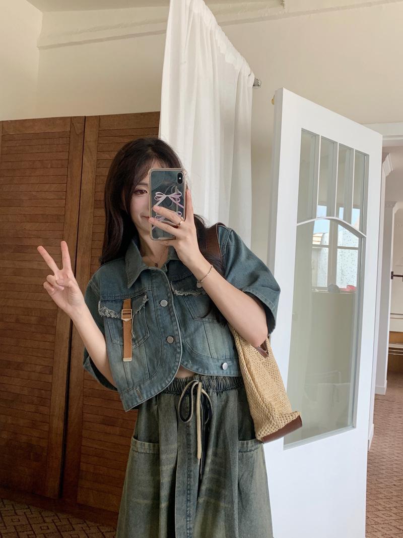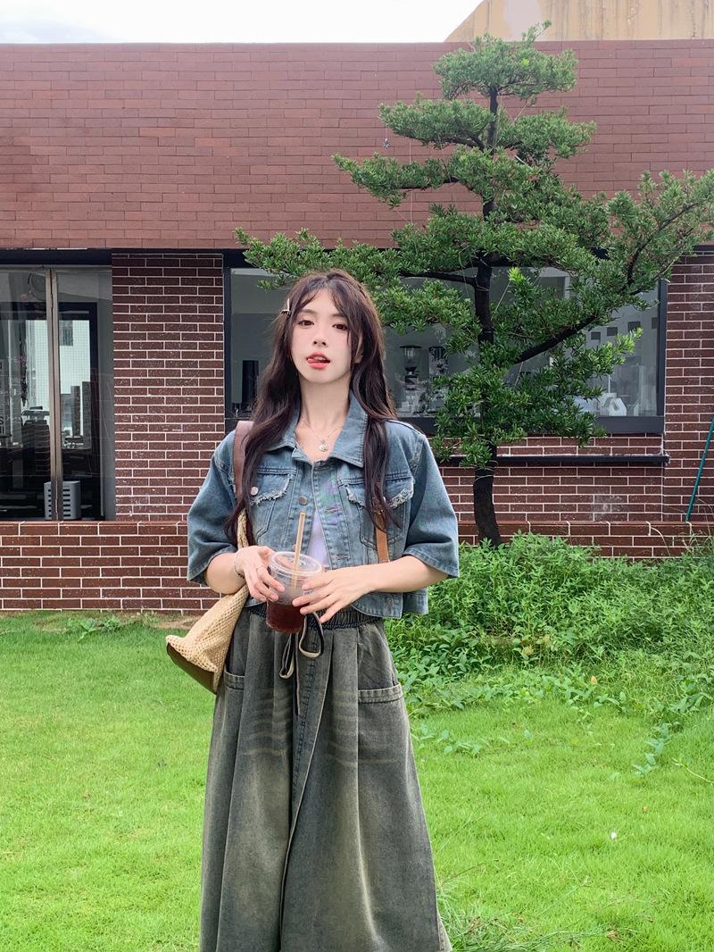 Abrigo vaquero de manga corta con diseño de estilo Chanel para mujer, holgado, adelgazante, de verano, con solapa y corte a juego.