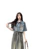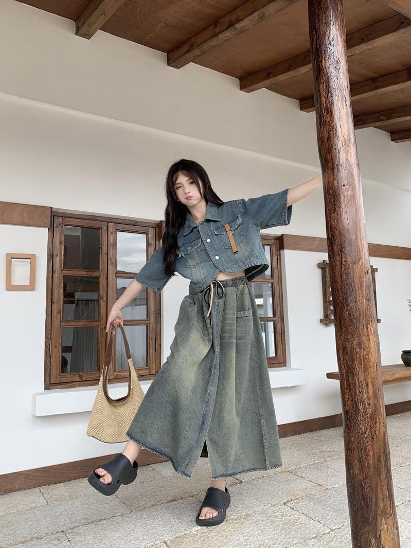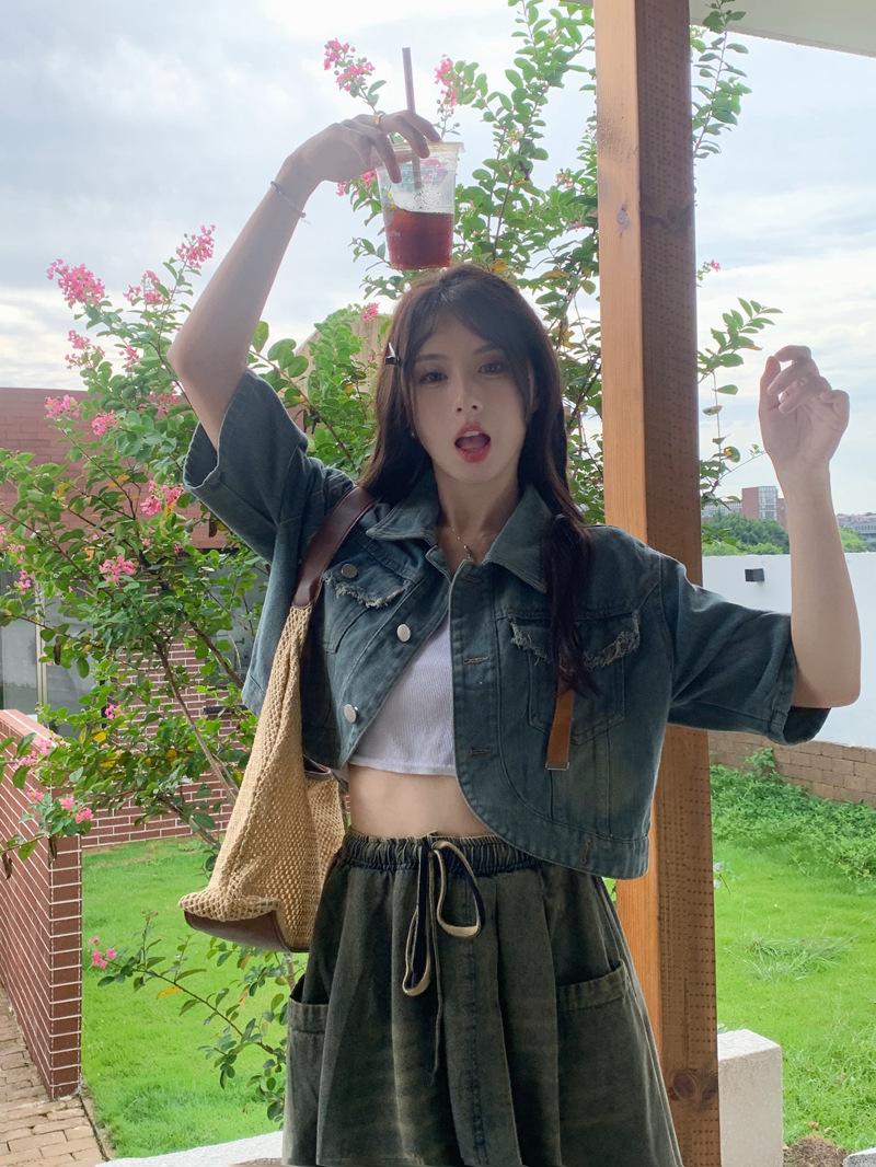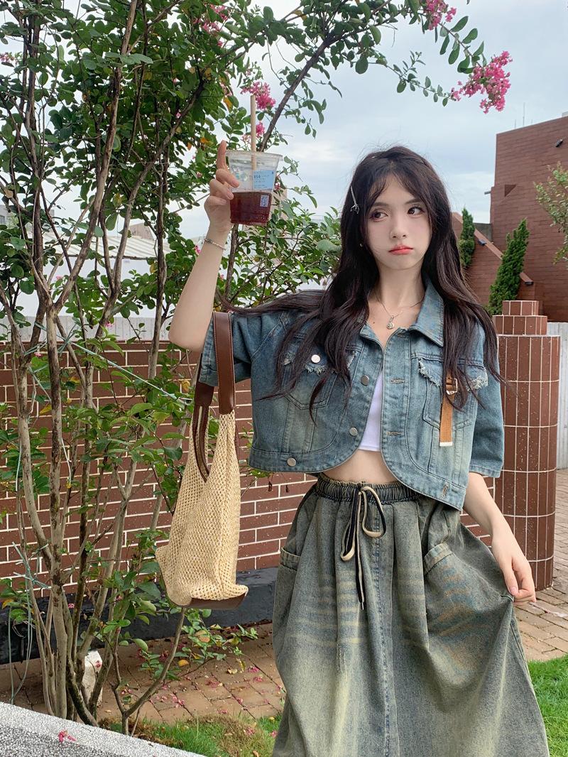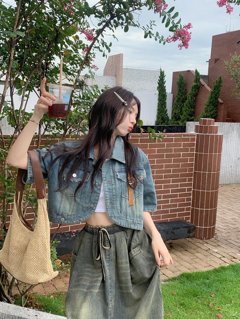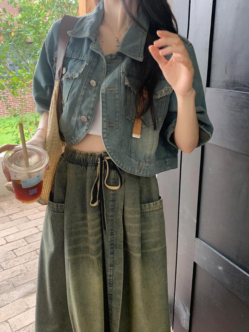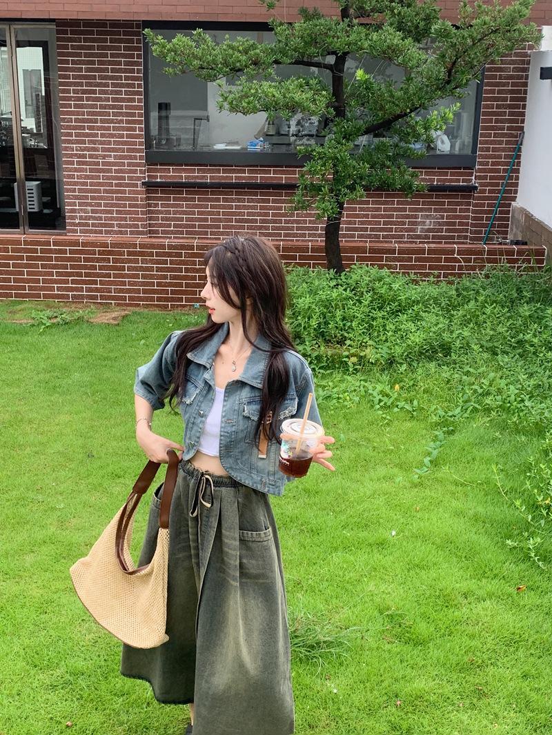 Abrigo vaquero de manga corta con diseño de estilo Chanel para mujer, holgado, adelgazante, de verano, con solapa y corte a juego.