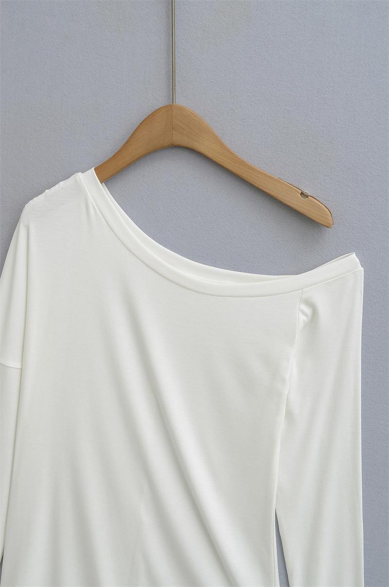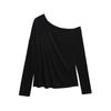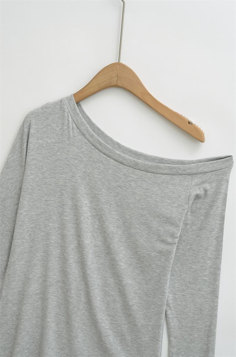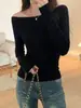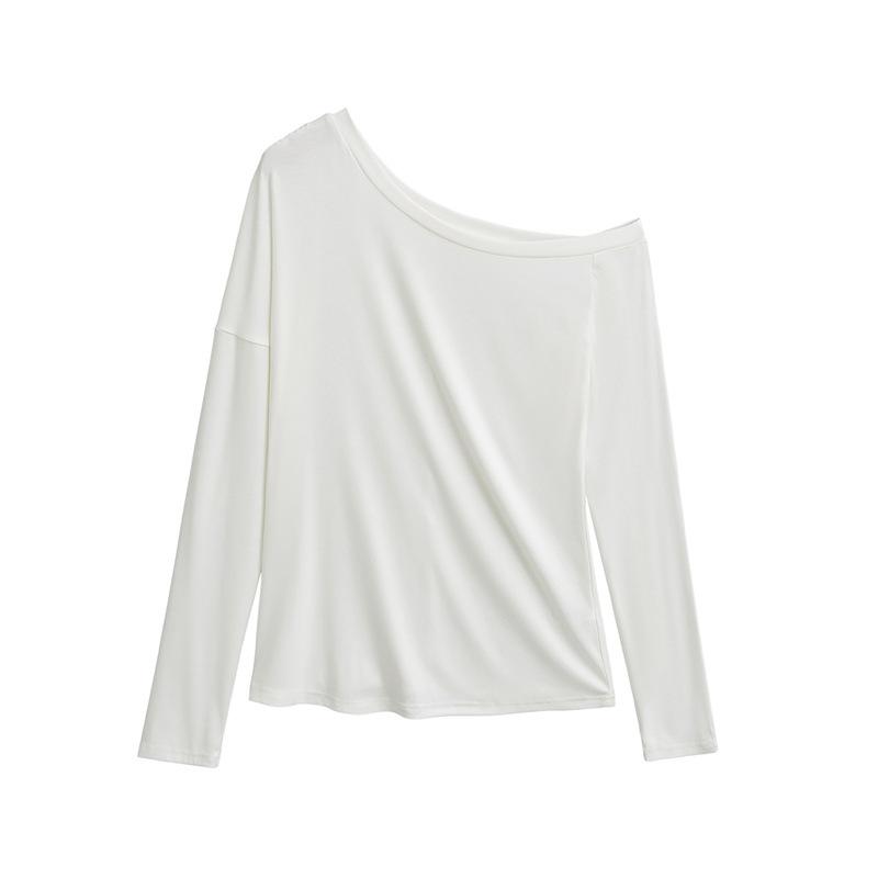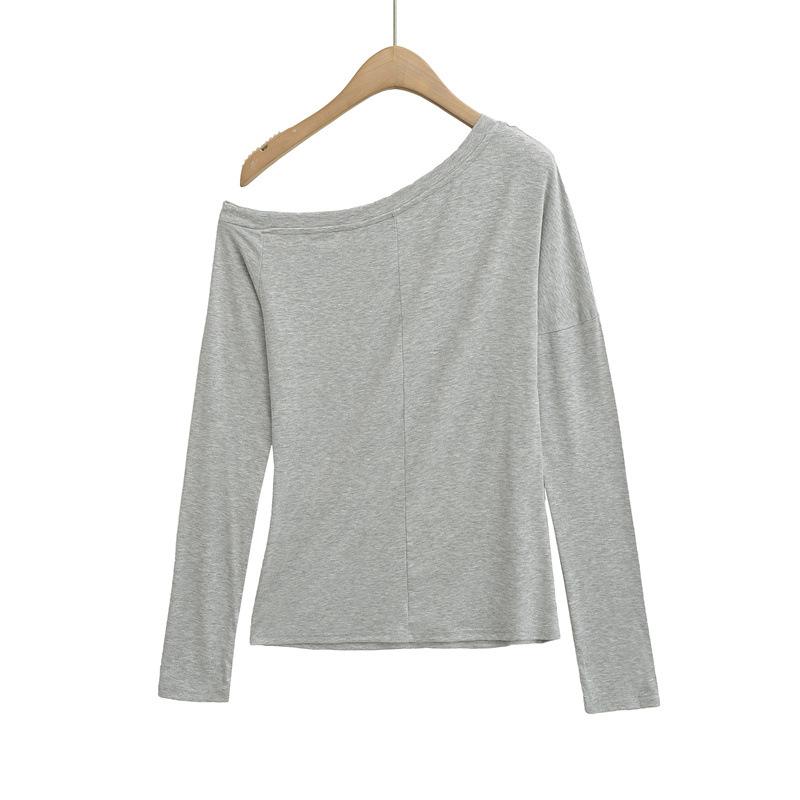 Camiseta de manga larga con hombro caído de diseño para chica sexy, nueva moda primavera y verano 2025, top ajustado y adelgazante de color sólido tipo jersey para mujer