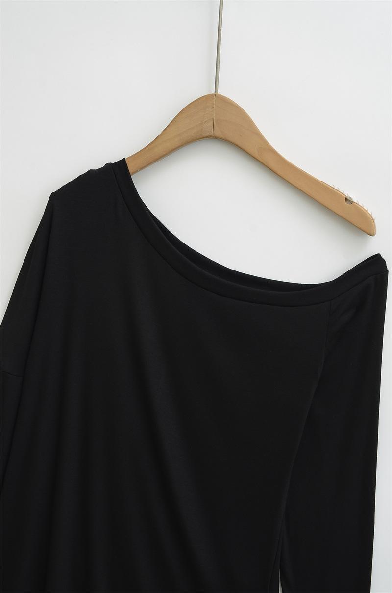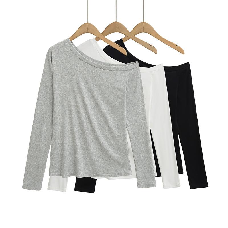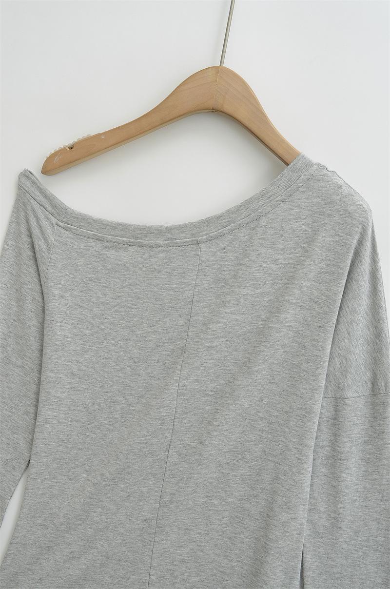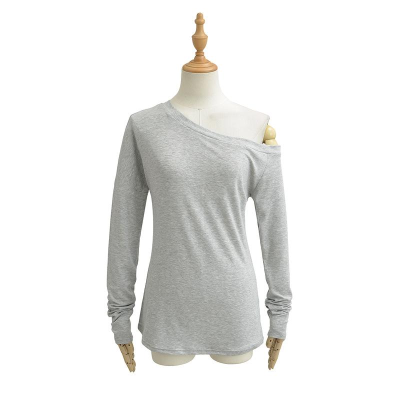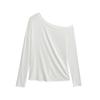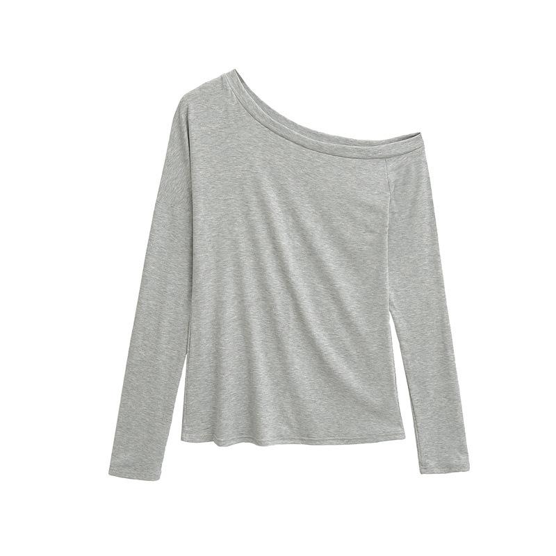 Camiseta de manga larga con hombro caído de diseño para chica sexy, nueva moda primavera y verano 2025, top ajustado y adelgazante de color sólido tipo jersey para mujer