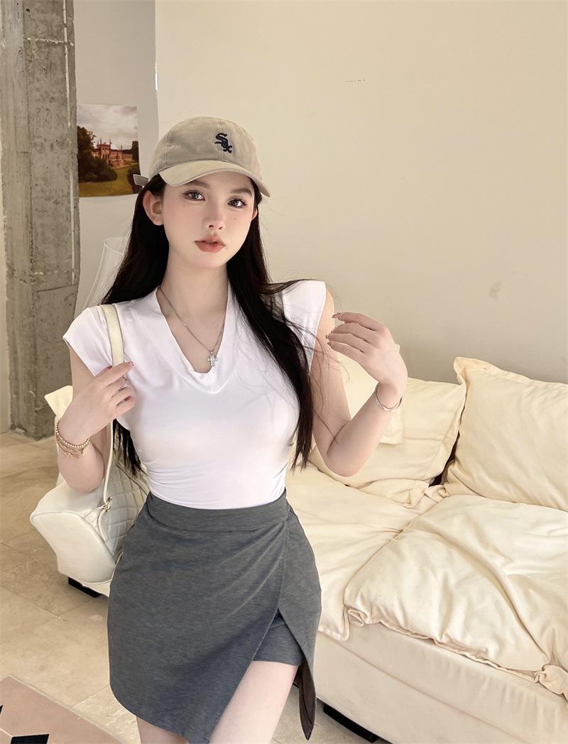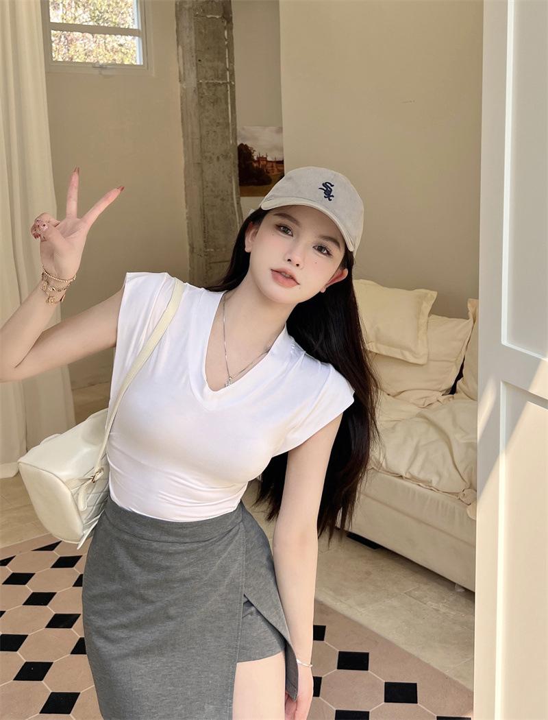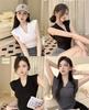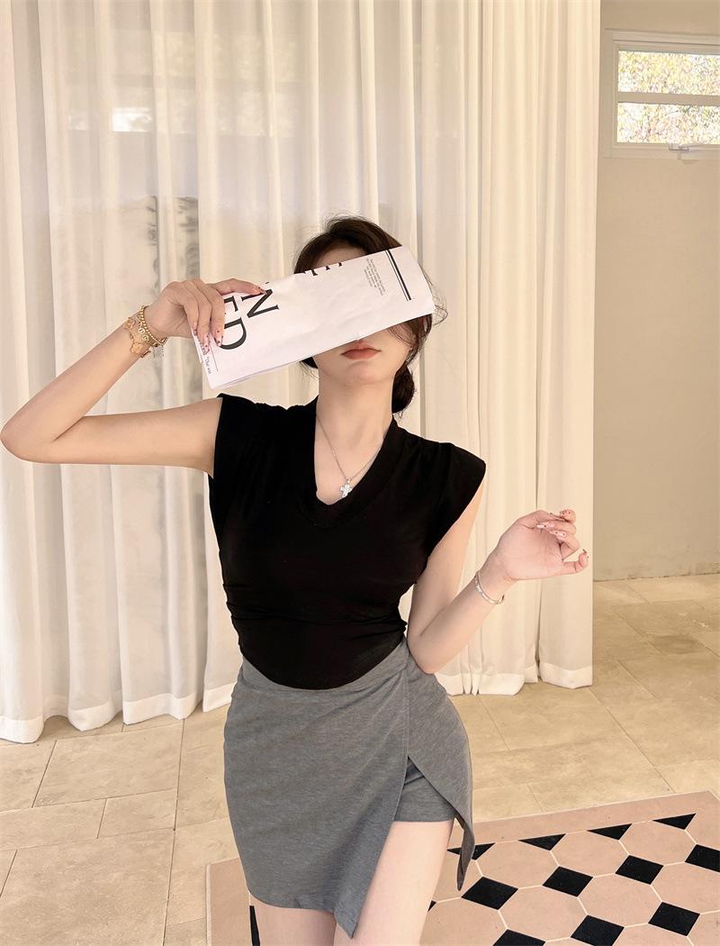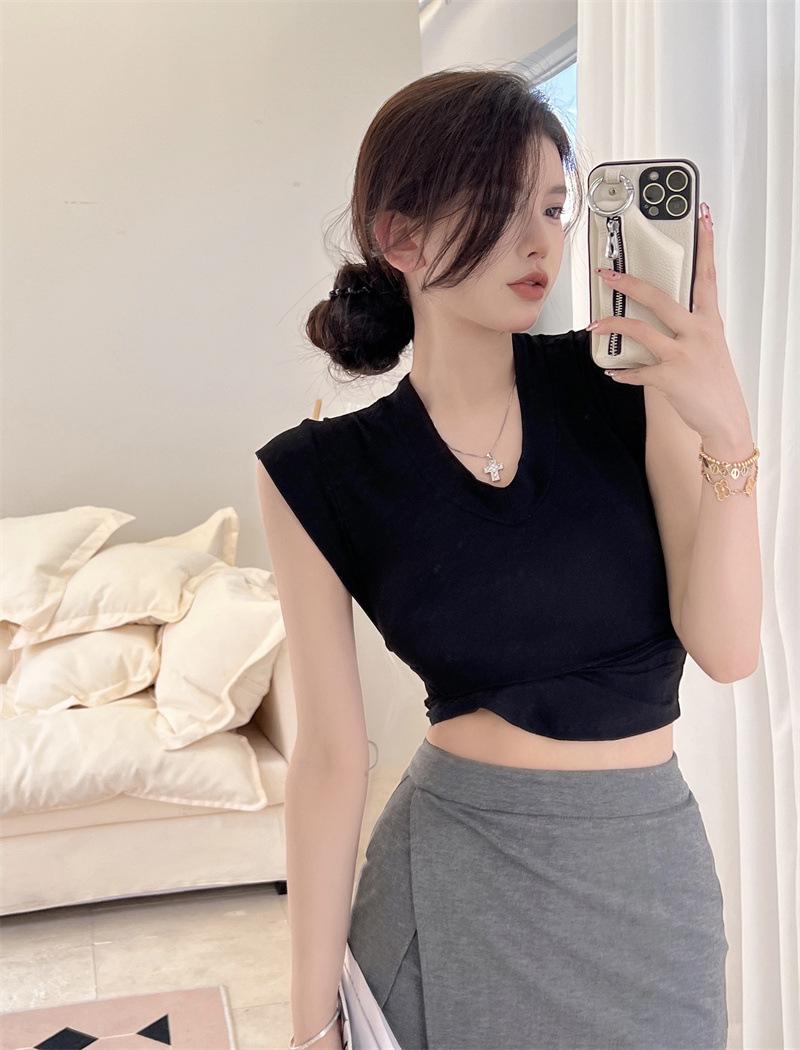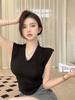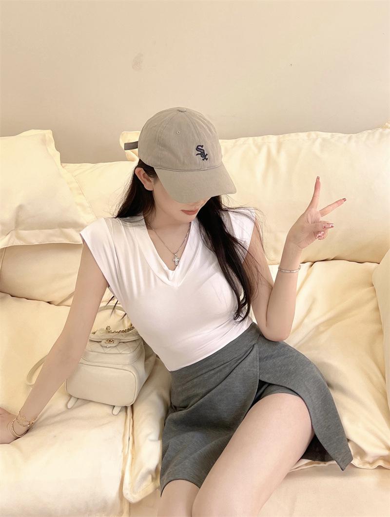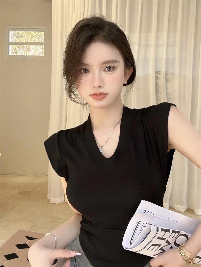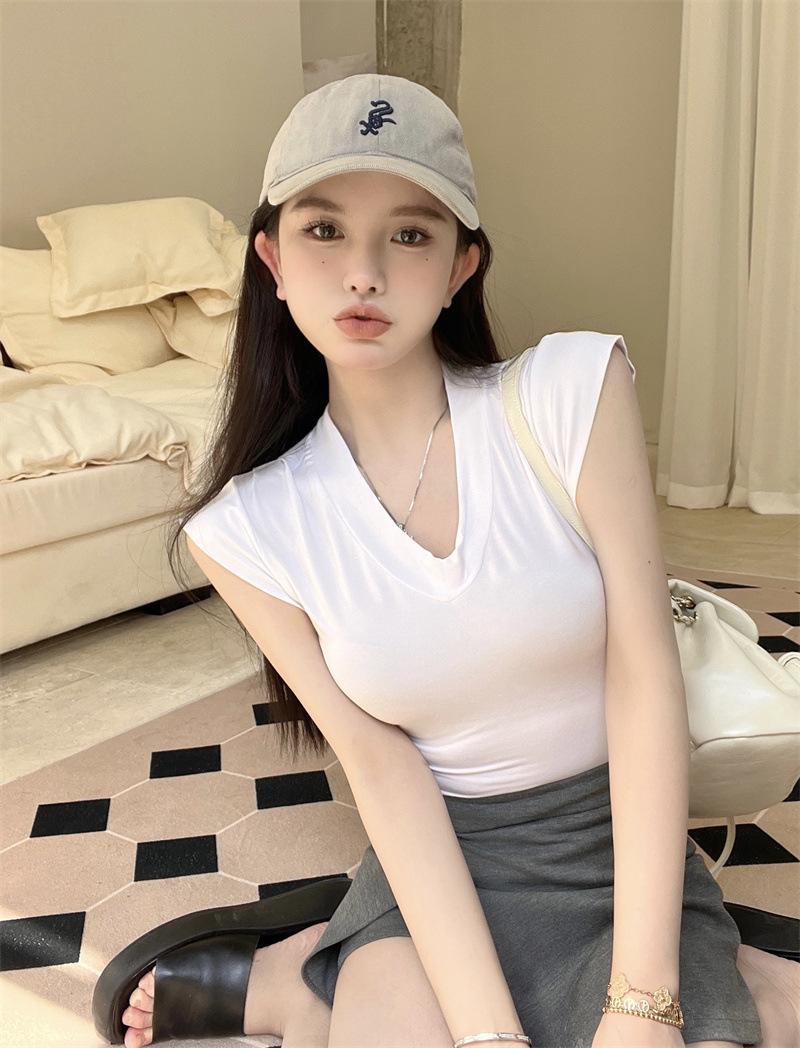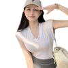 Camiseta sin mangas para mujer verano 2024 nueva elegante cuello en V manga corta ajustada sexy chica caliente top blanco ajustado