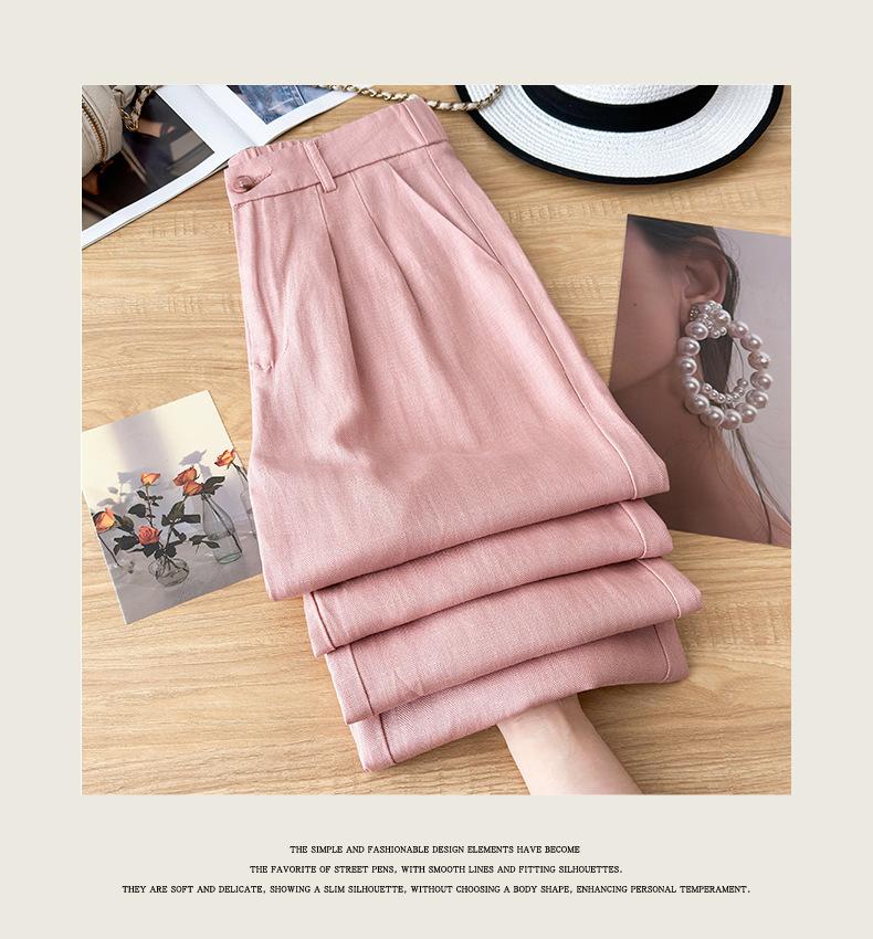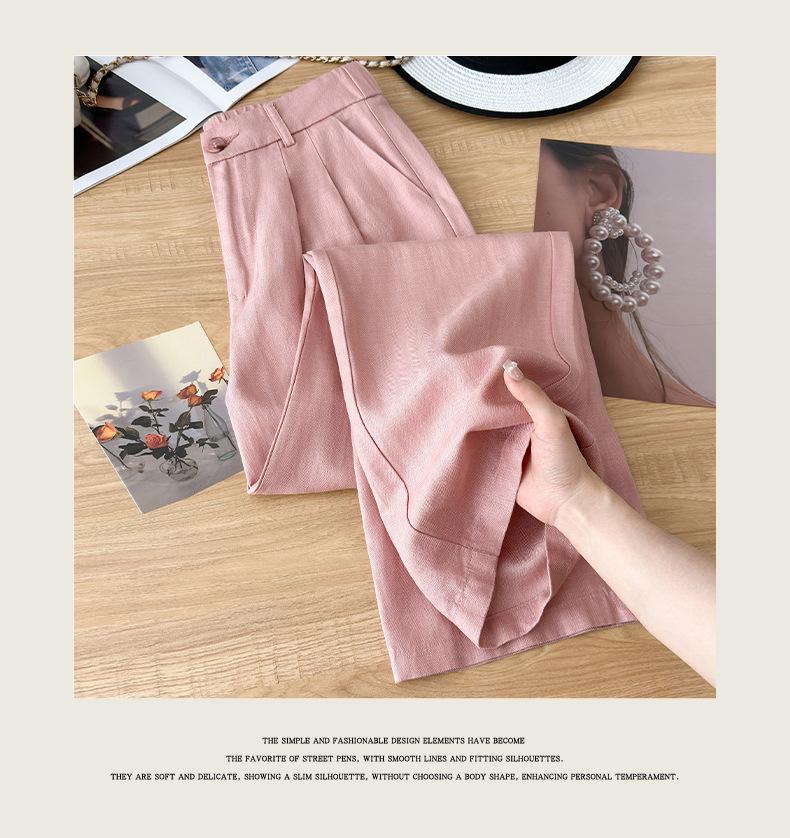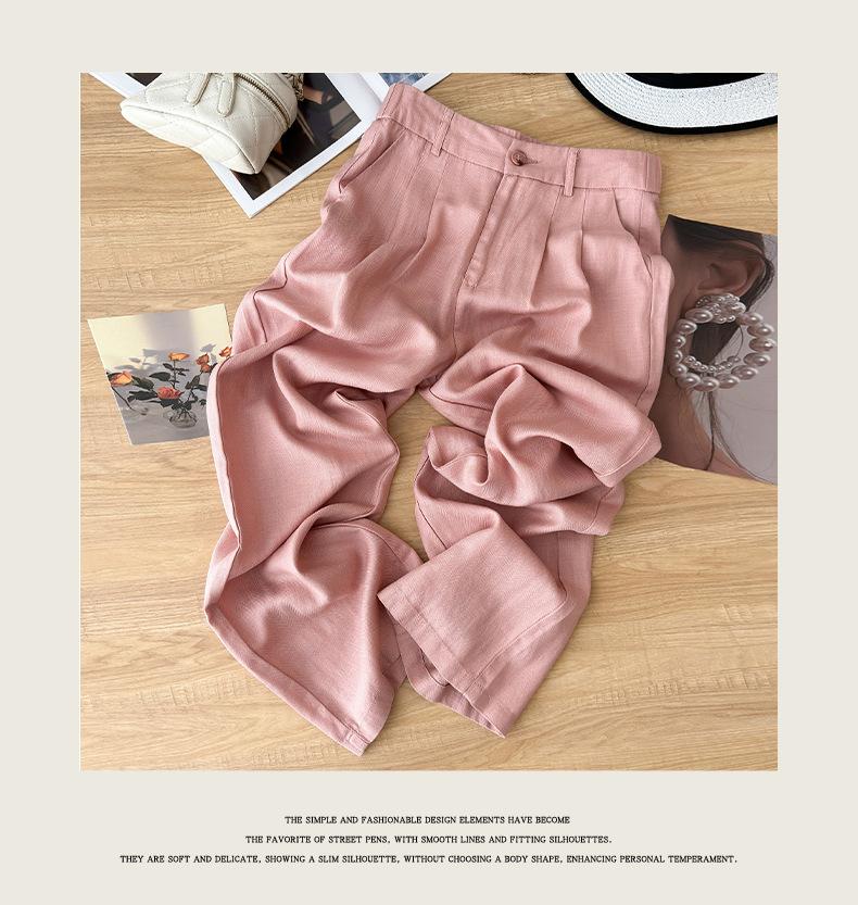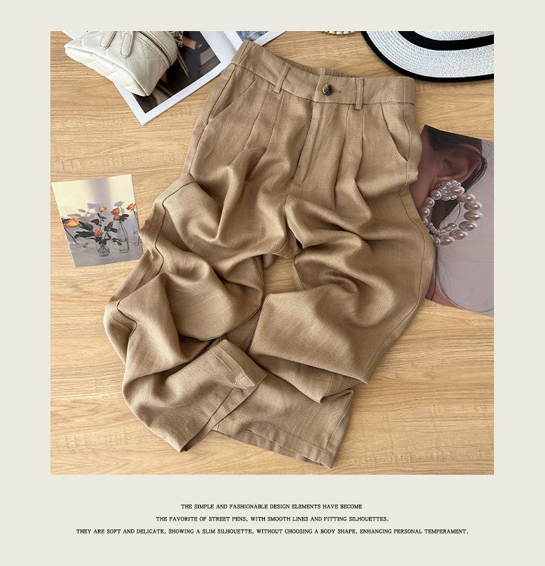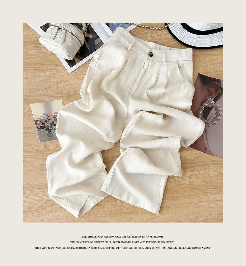 Compra Pantalones anchos de lino Tencel para mujer, ligeros, de verano 2025, nuevos pantalones rectos de algodón y lino con cintura alta y drapeados. al por mayor en Joom.pro