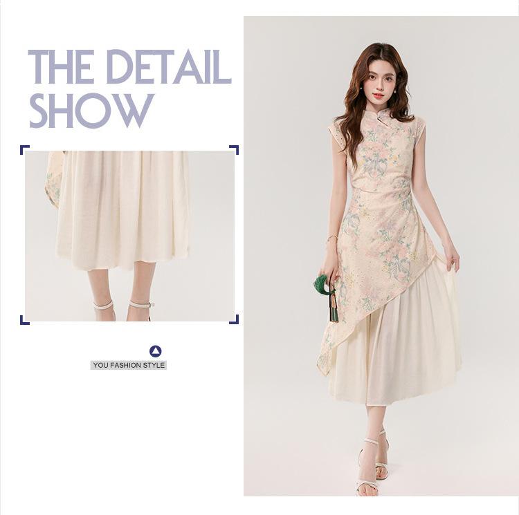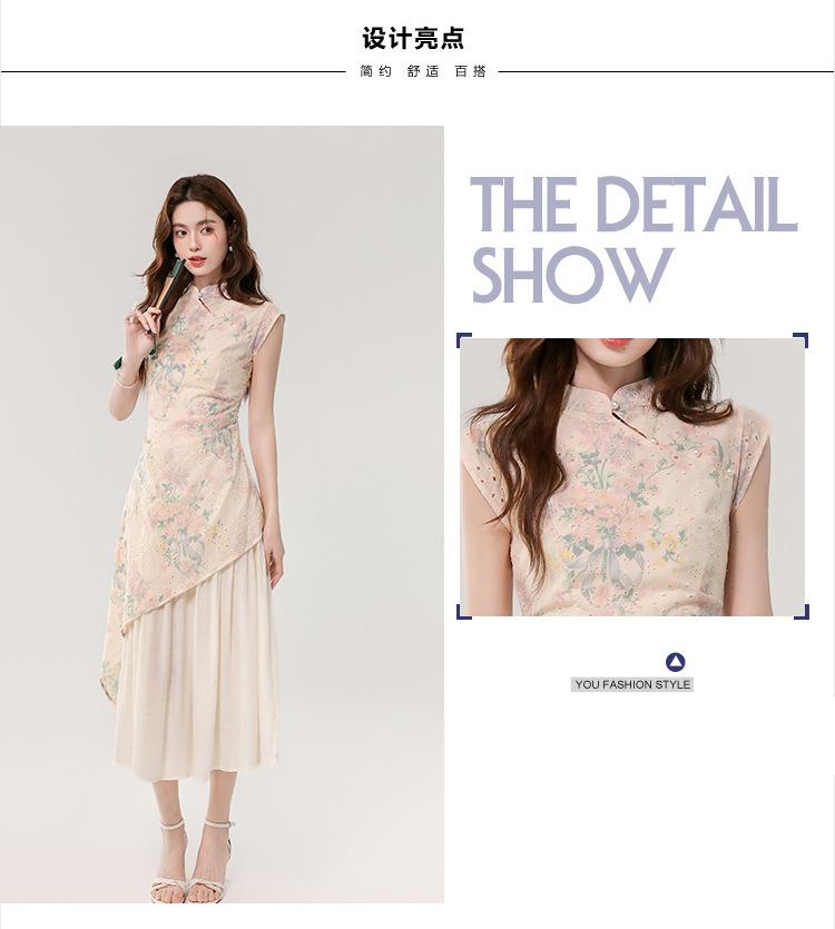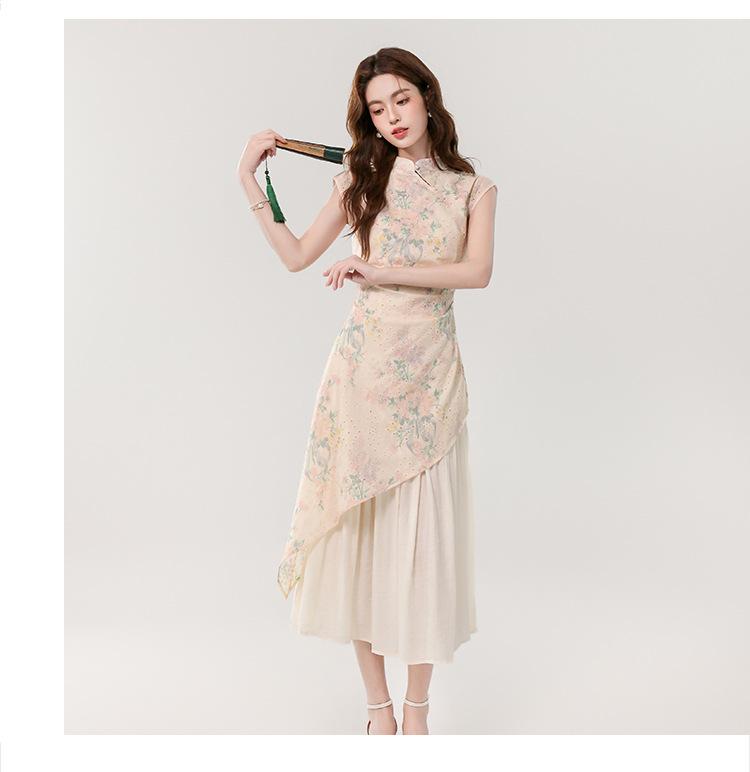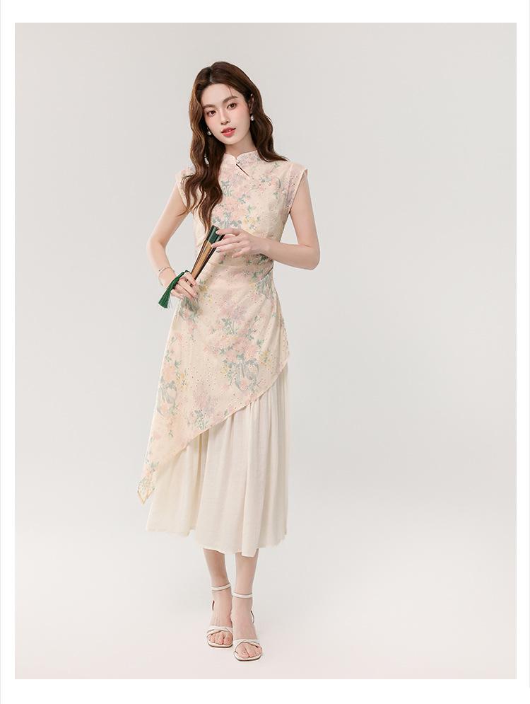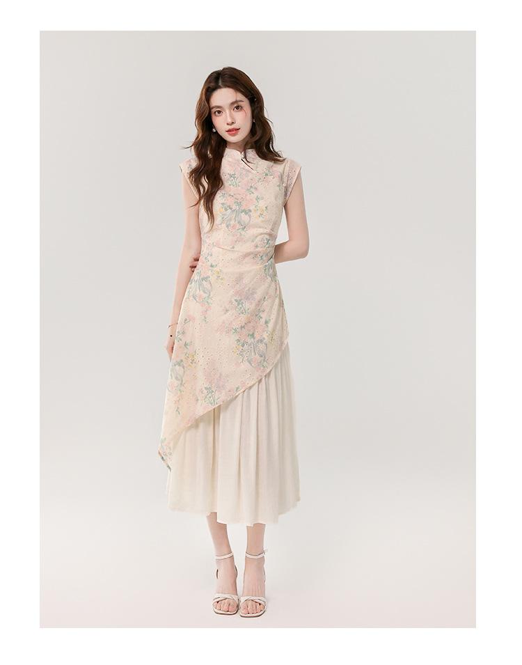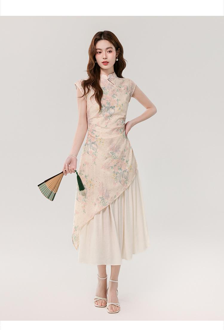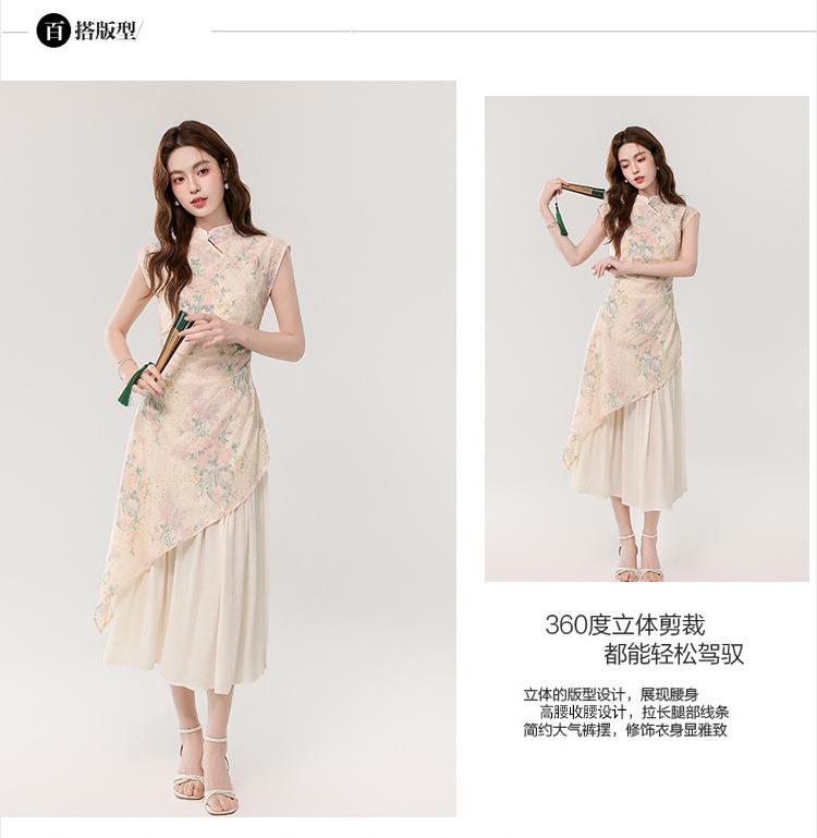 Vestido largo bordado con estampado irregular de dos piezas, elegante, estilo chino, novedad de verano de 2025