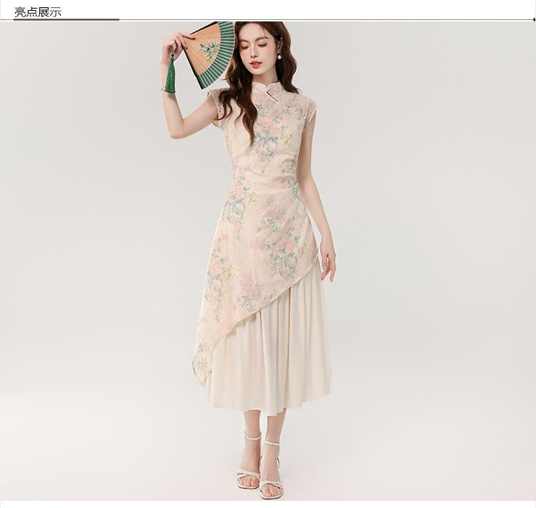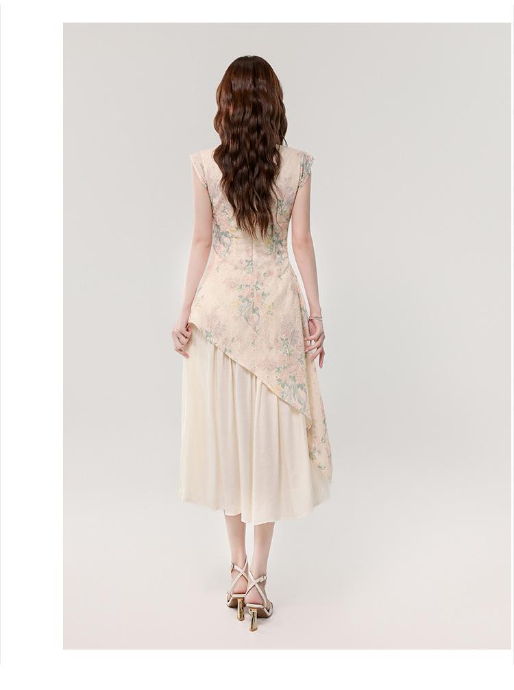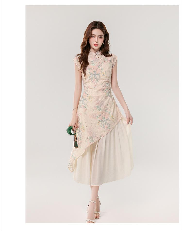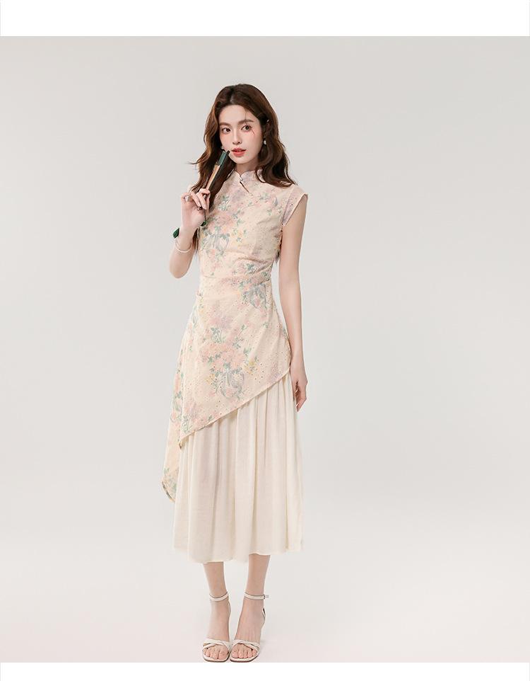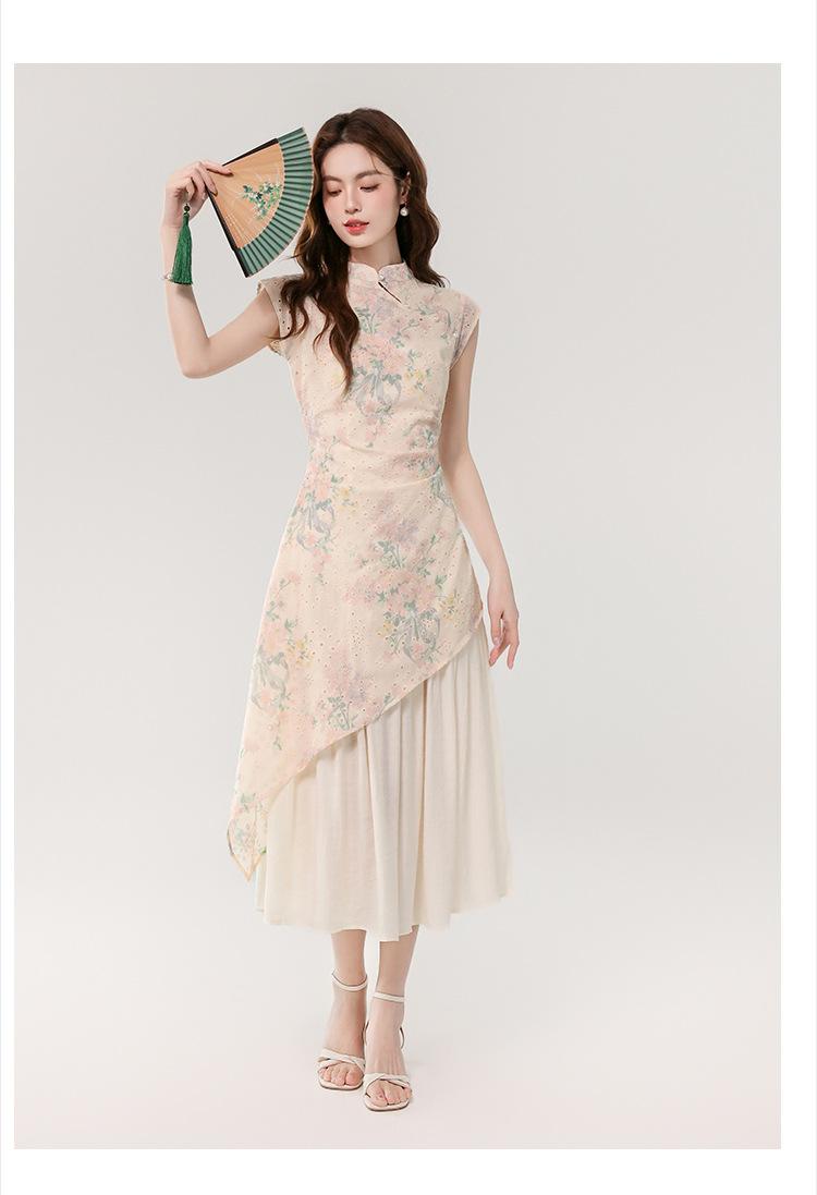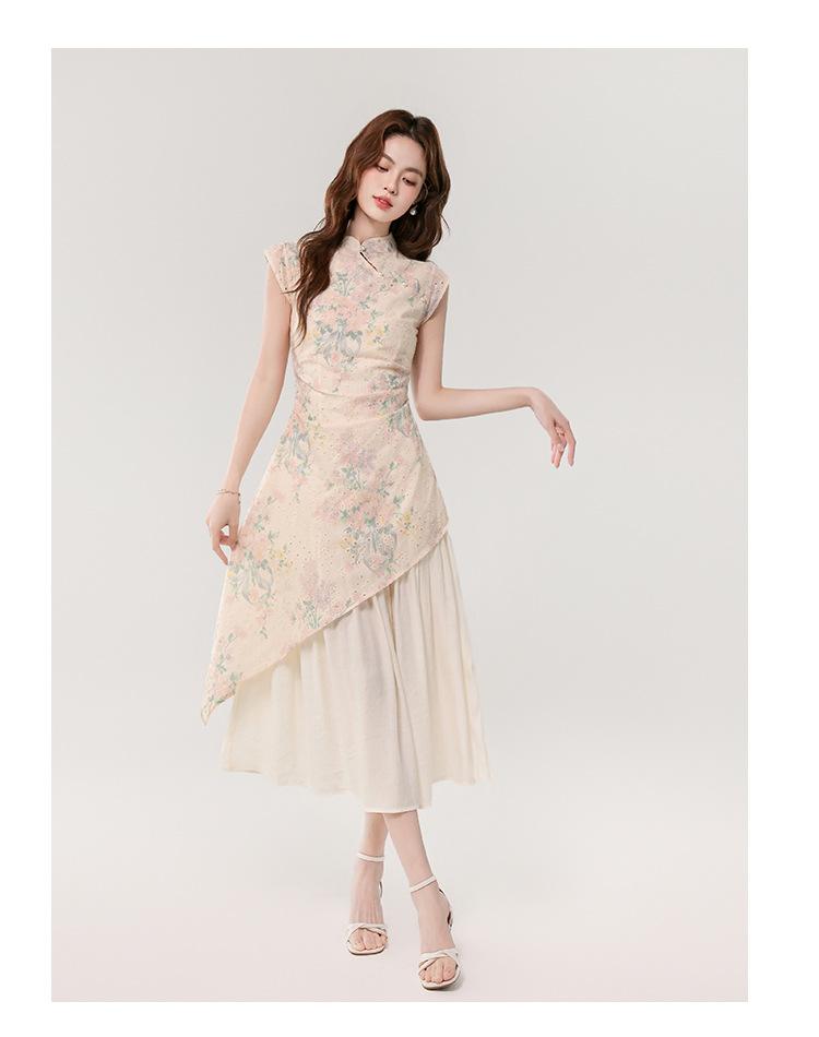 Vestido largo bordado con estampado irregular de dos piezas, elegante, estilo chino, novedad de verano de 2025