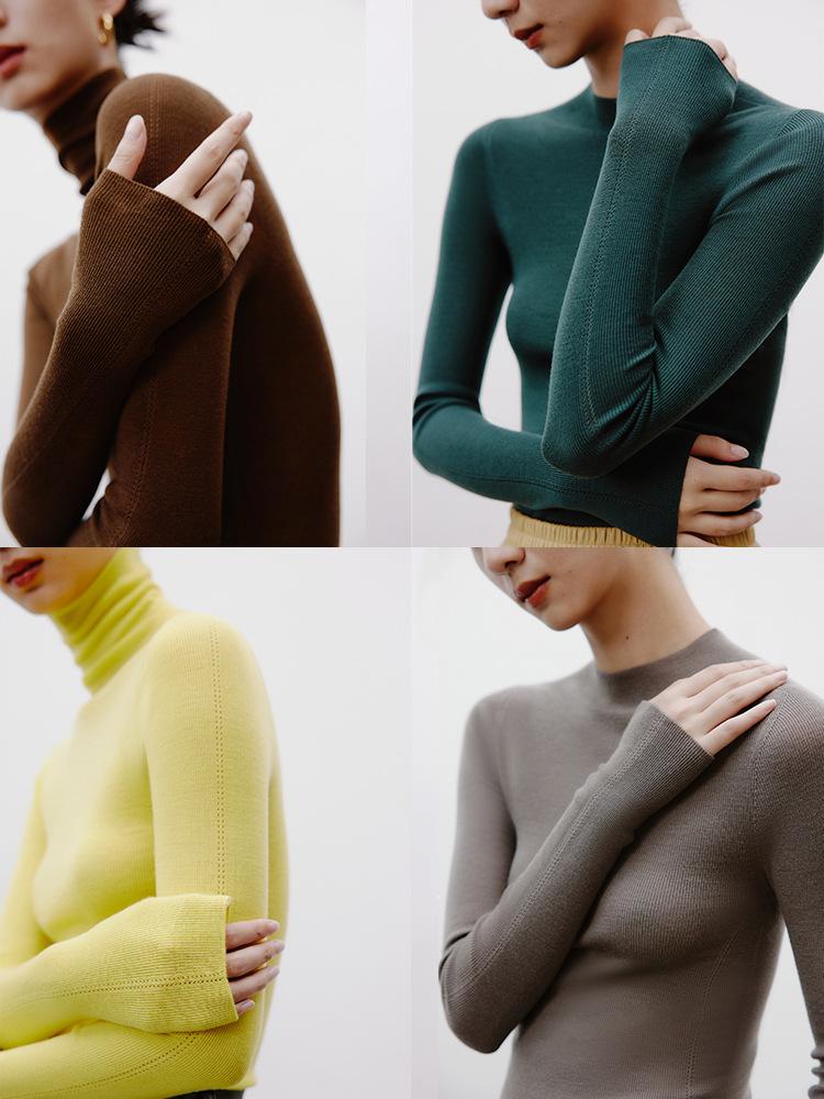 Suéter de manga larga ajustado con cuello alto para mujer, camisa de punto suave y encerada de alta gama, para otoño e invierno