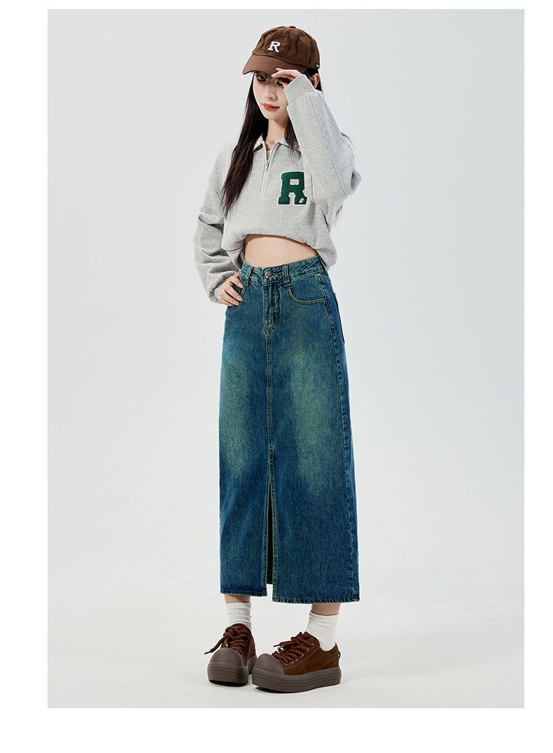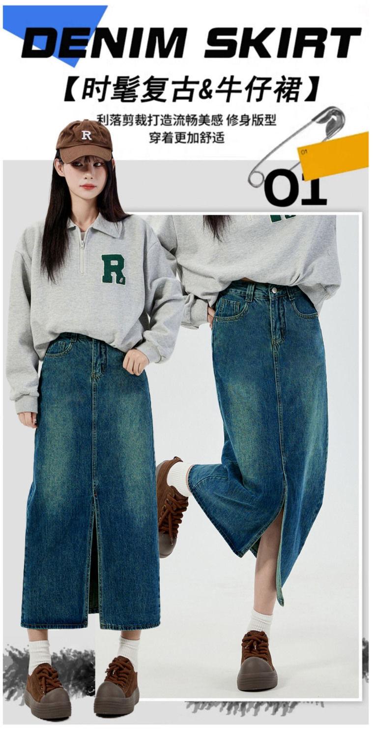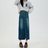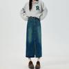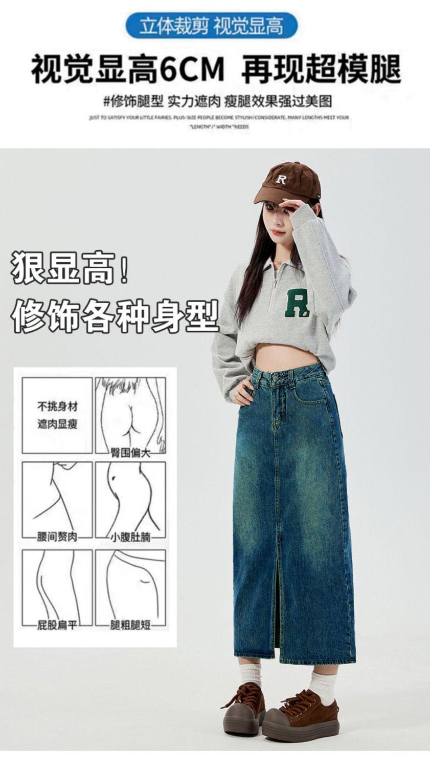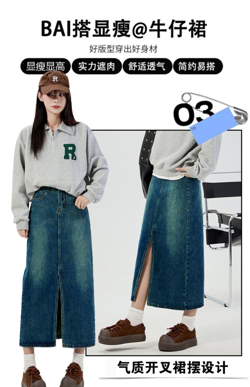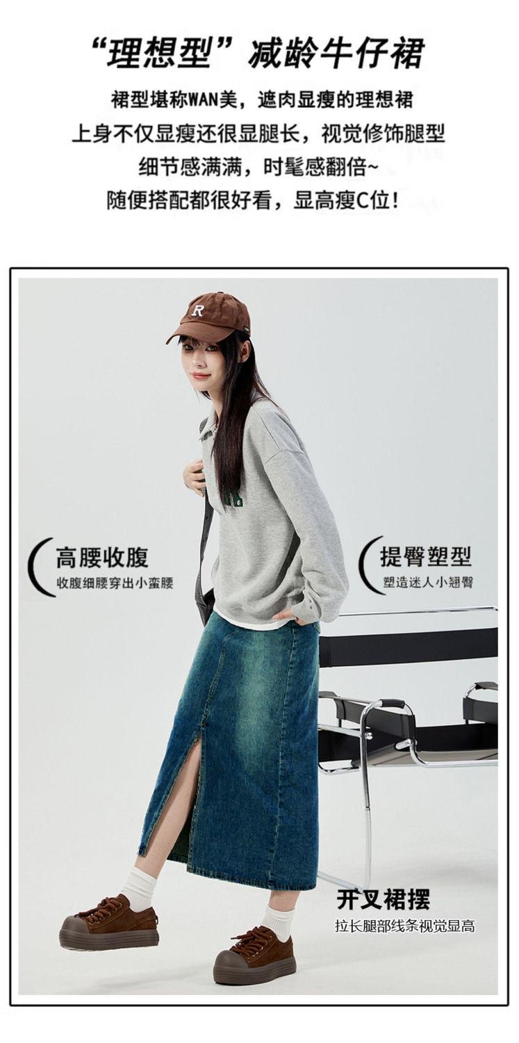Falda Vaquera Midi con Abertura Cintura Alta para Mujer Primavera 2025 Forma A Pequeña Combinable Ajustada Cadera