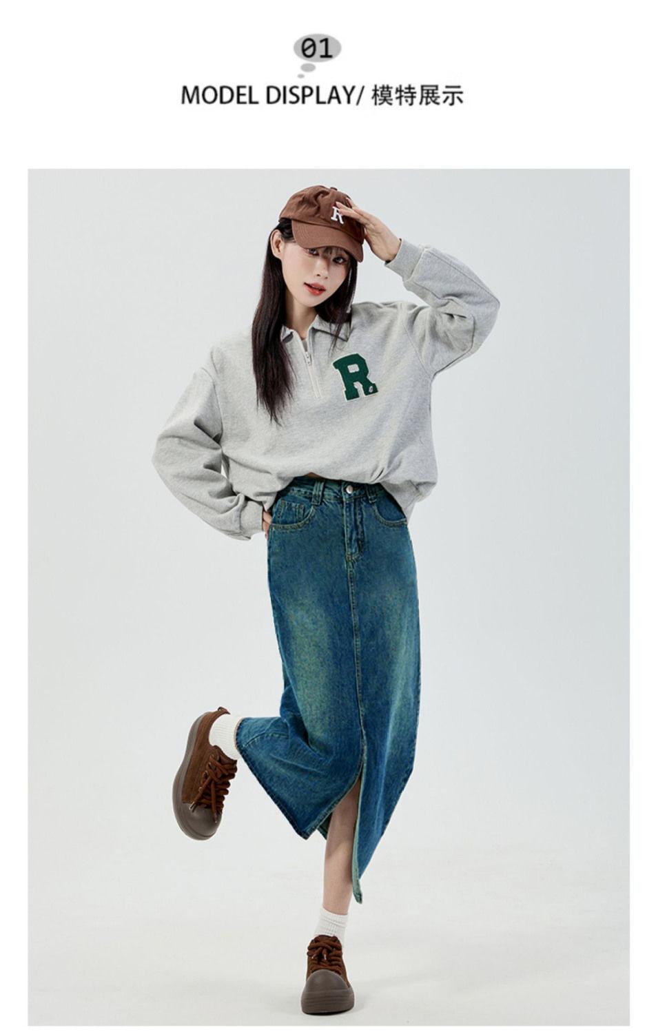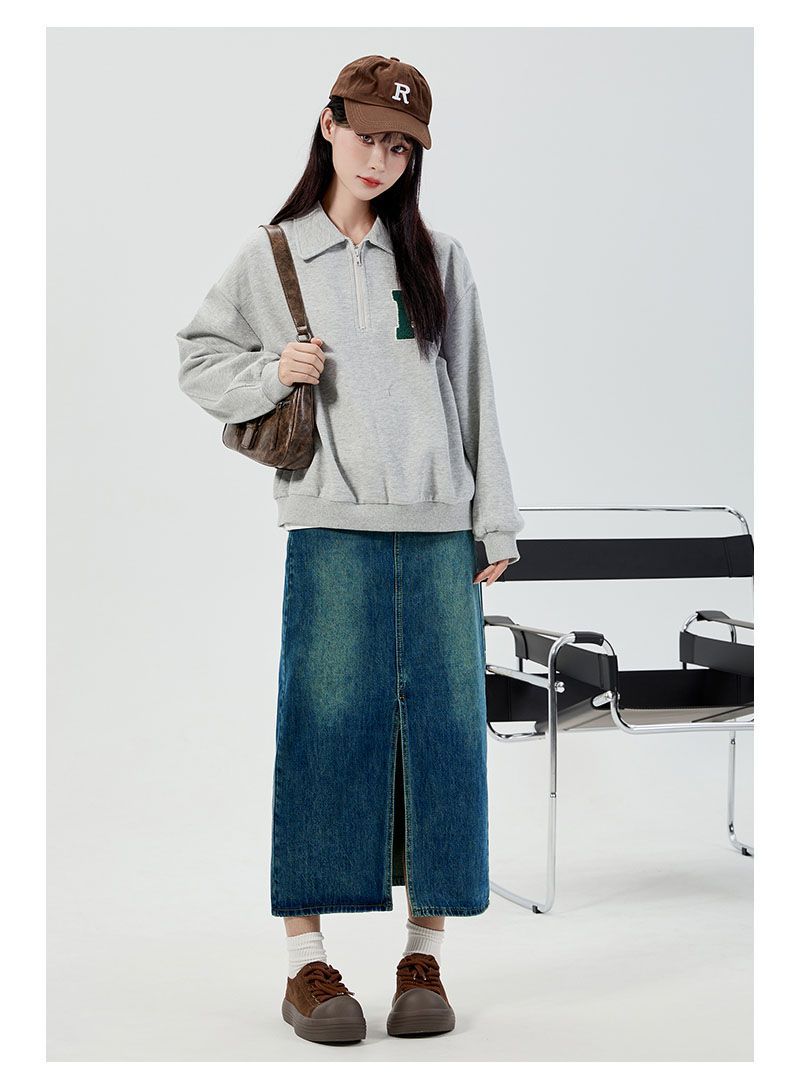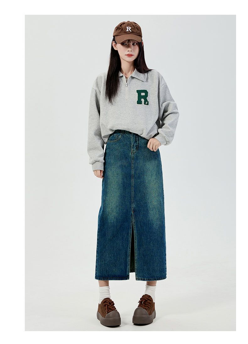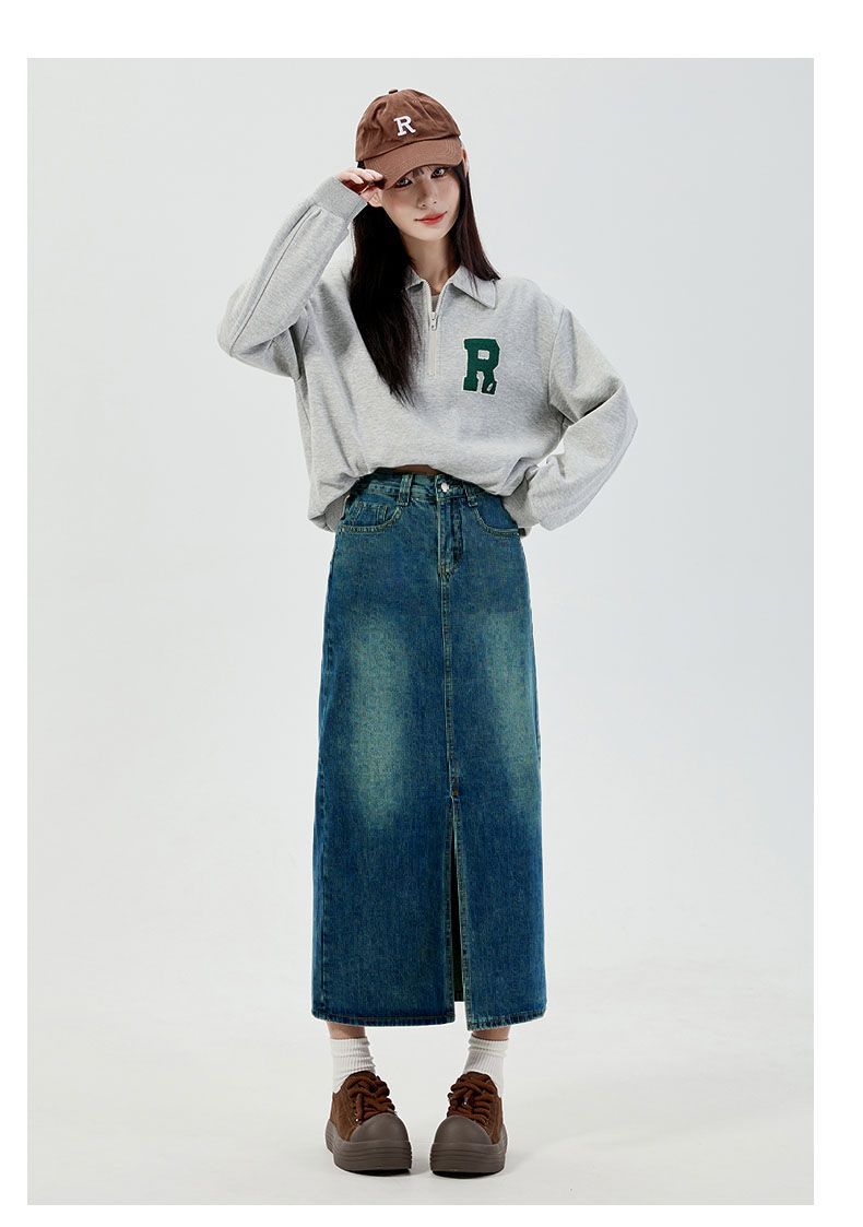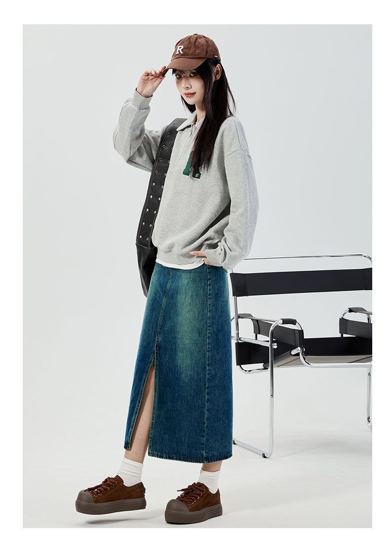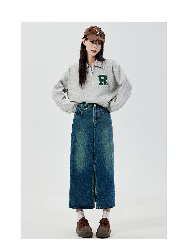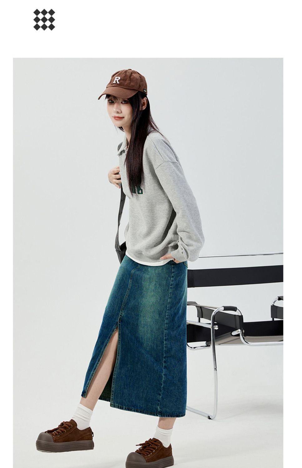 Falda Vaquera Midi con Abertura Cintura Alta para Mujer Primavera 2025 Forma A Pequeña Combinable Ajustada Cadera