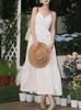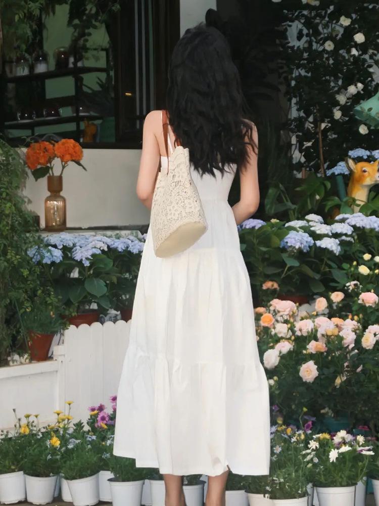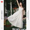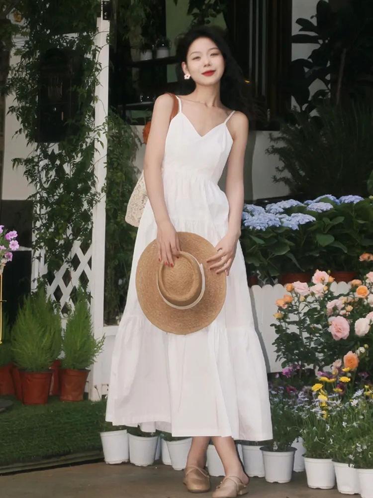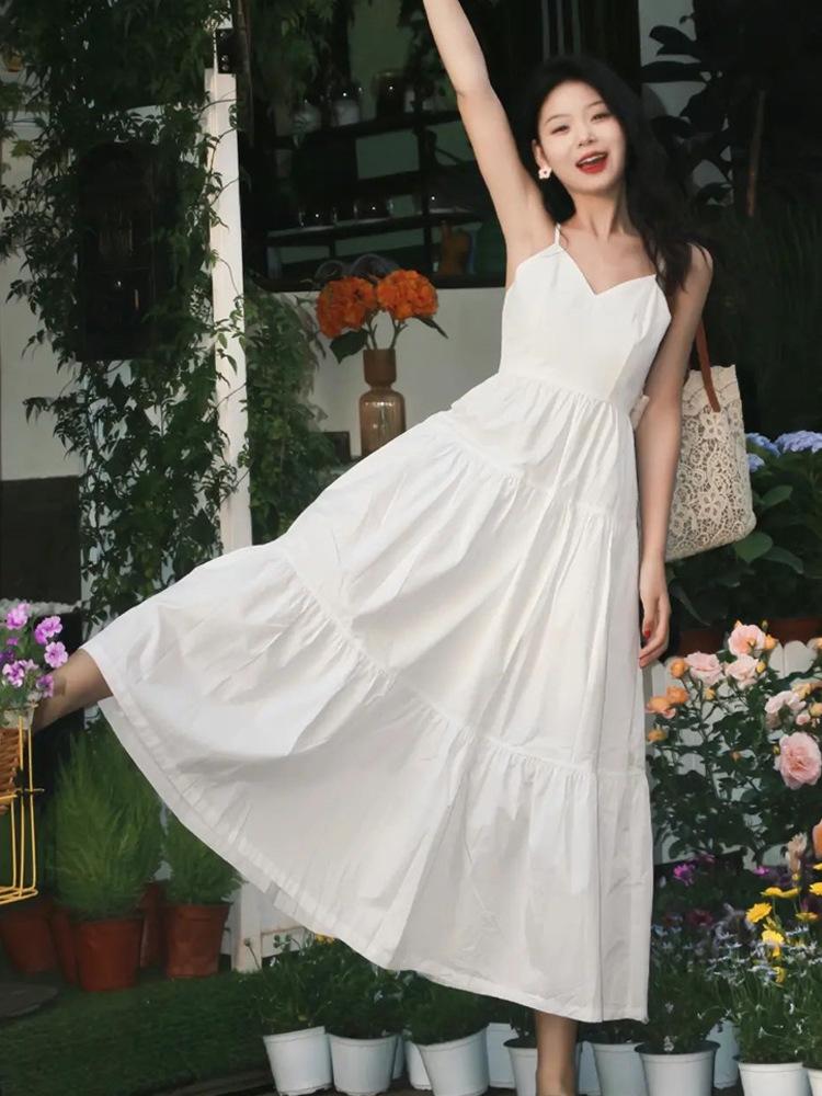 Vestido blanco con escote en V estilo francés, novedad de verano de 2025, diseño de cintura para mujer, elegante falda pequeña.