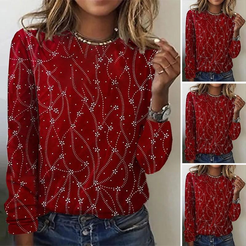 Amazon Europa y Estados Unidos Comercio exterior transfronterizo Primavera y verano Nueva moda femenina Casual estampado manga larga cuello redondo camiseta chaqueta mujer