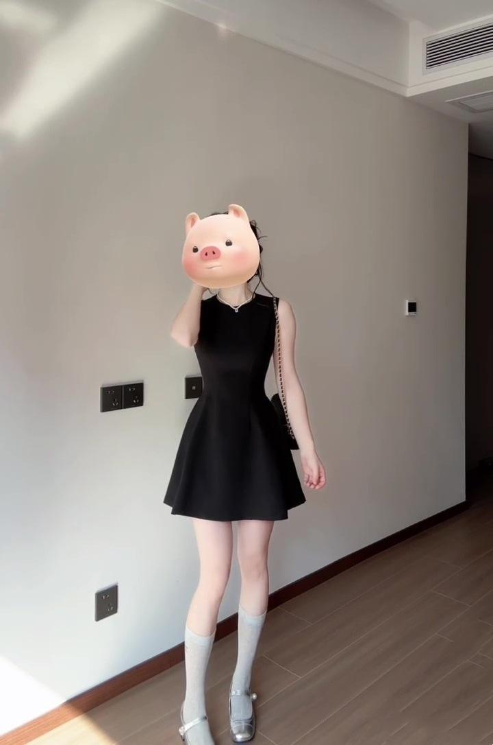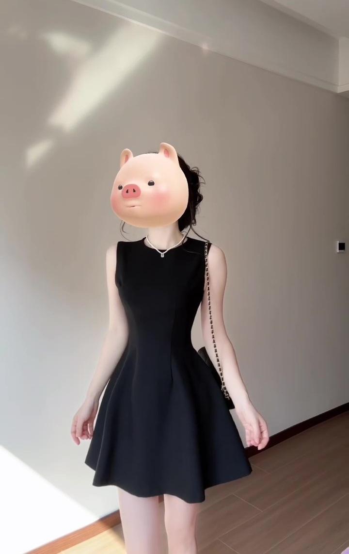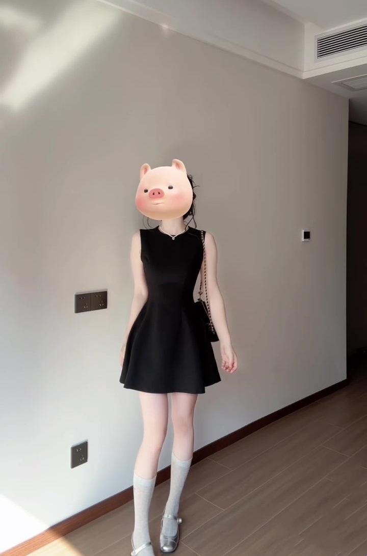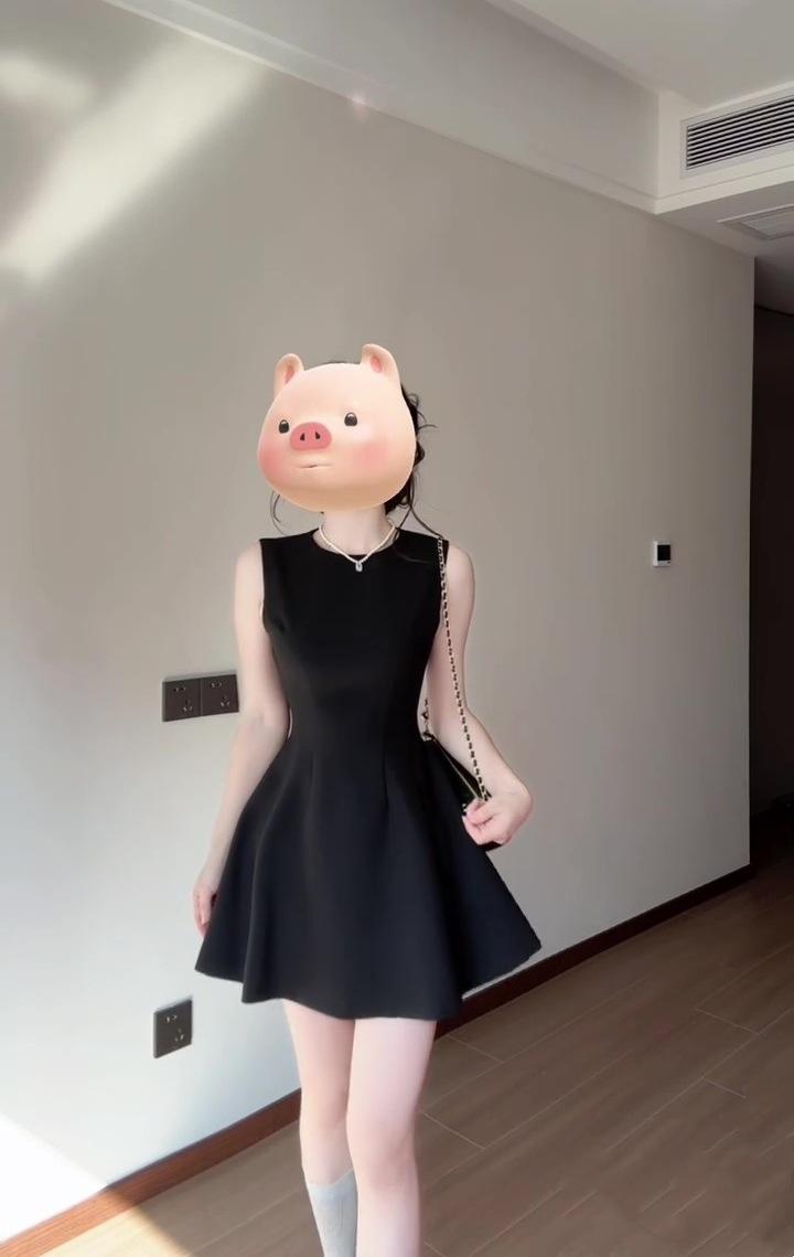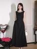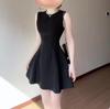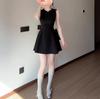 Vestido negro estilo francés para mujer, verano 2025, nuevo estilo Hepburn, sin mangas, elegante, con cintura pequeña.