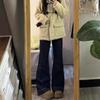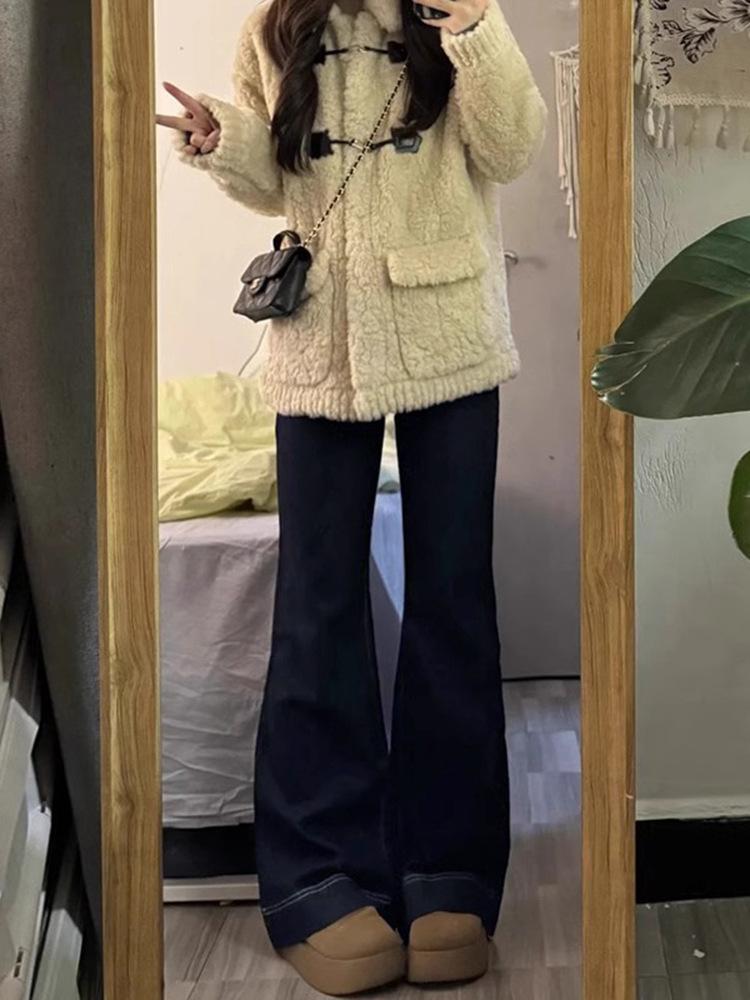 Pantalones vaqueros de mujer de primavera y otoño, micropantalones de talla grande para chica gordita, cintura alta, ajustados, nuevos pantalones holgados de pierna recta 2025
