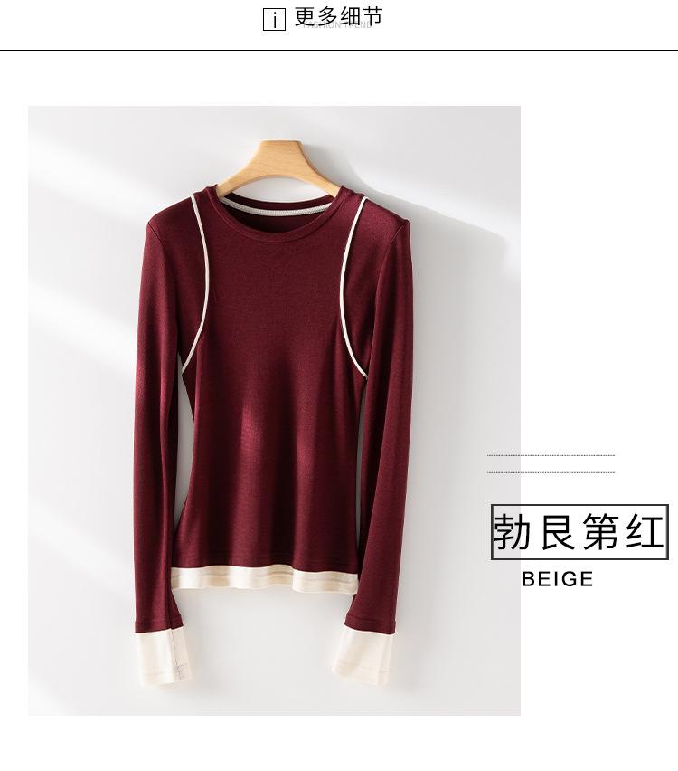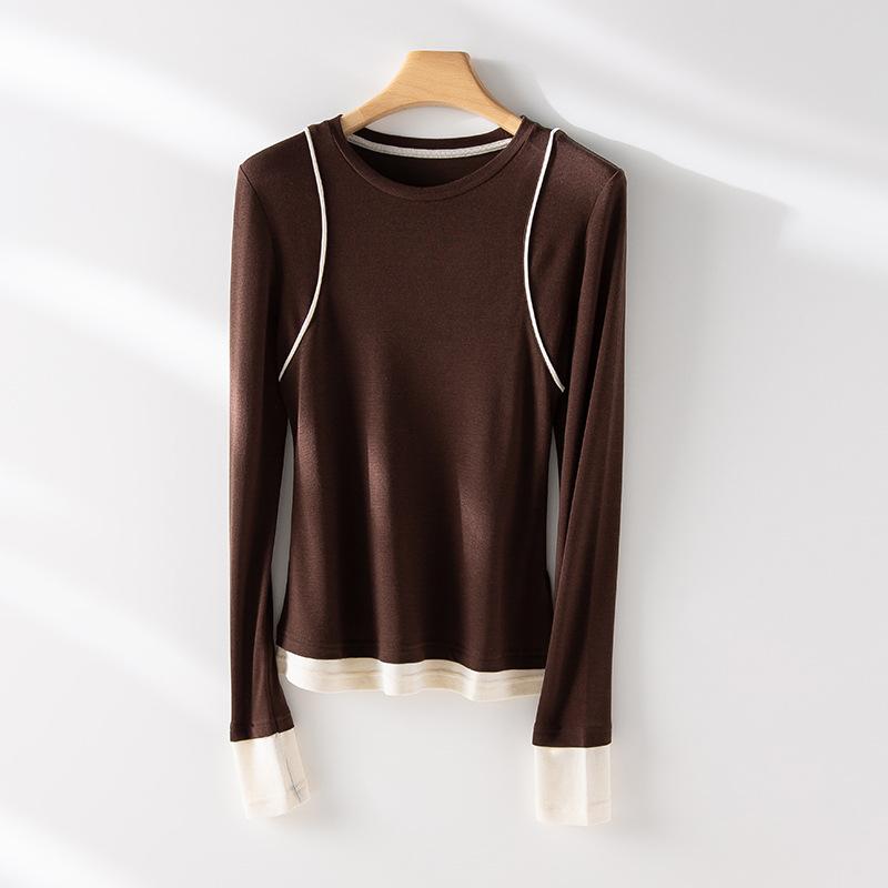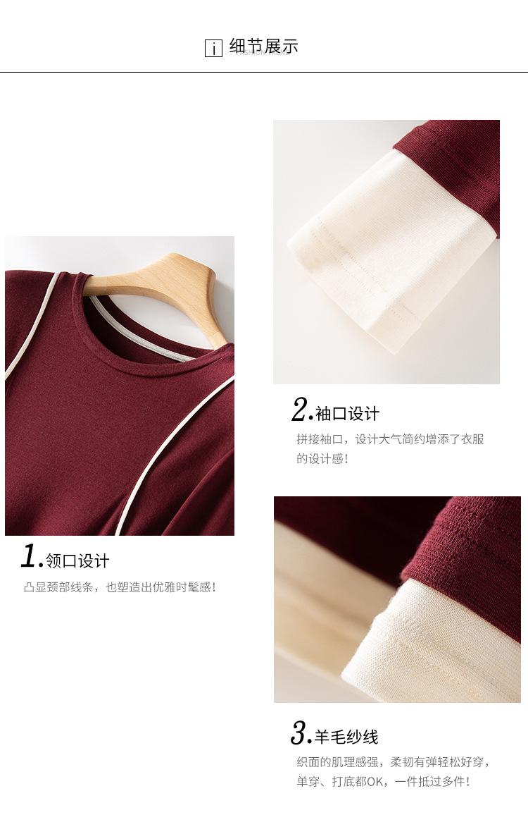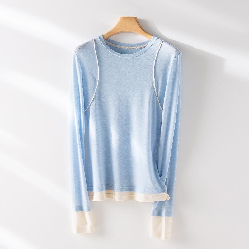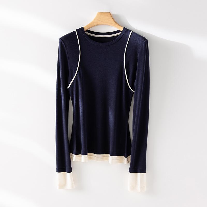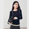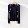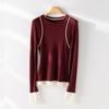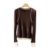 2025 Principios de Primavera Nuevo Suéter de Punto de Manga Larga con Cuello Redondo de Lana Tencel Camiseta de Contraste Elegante Jersey Top Básico para Mujer