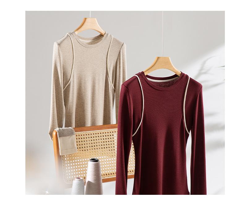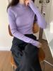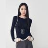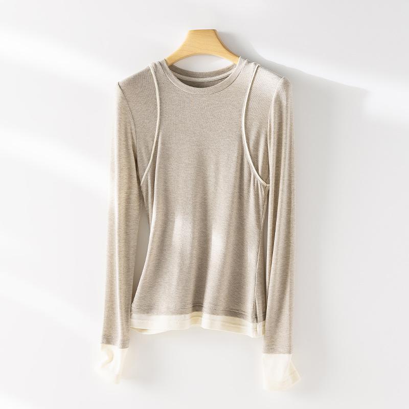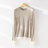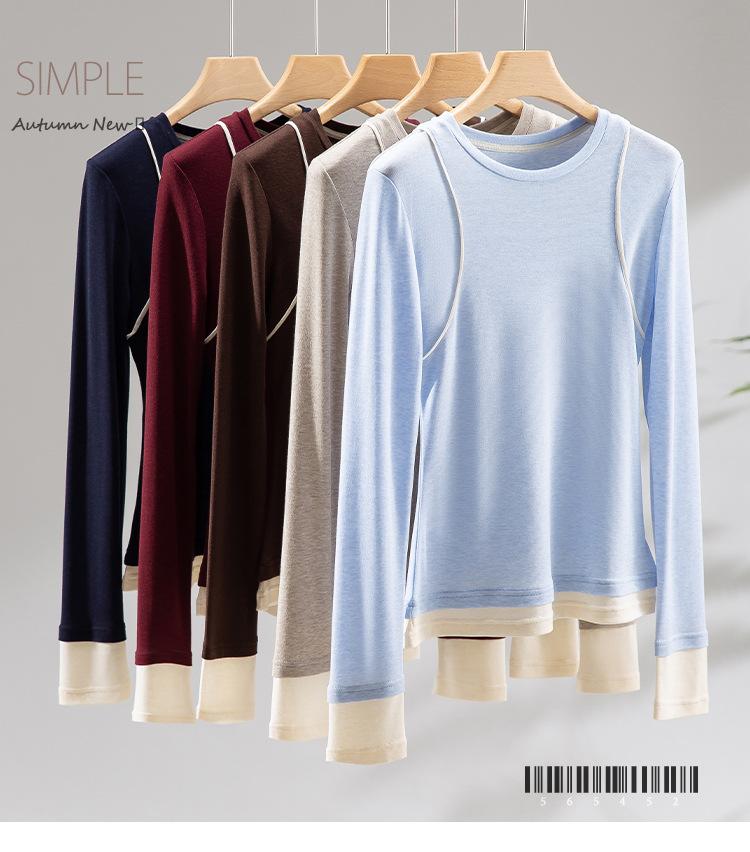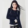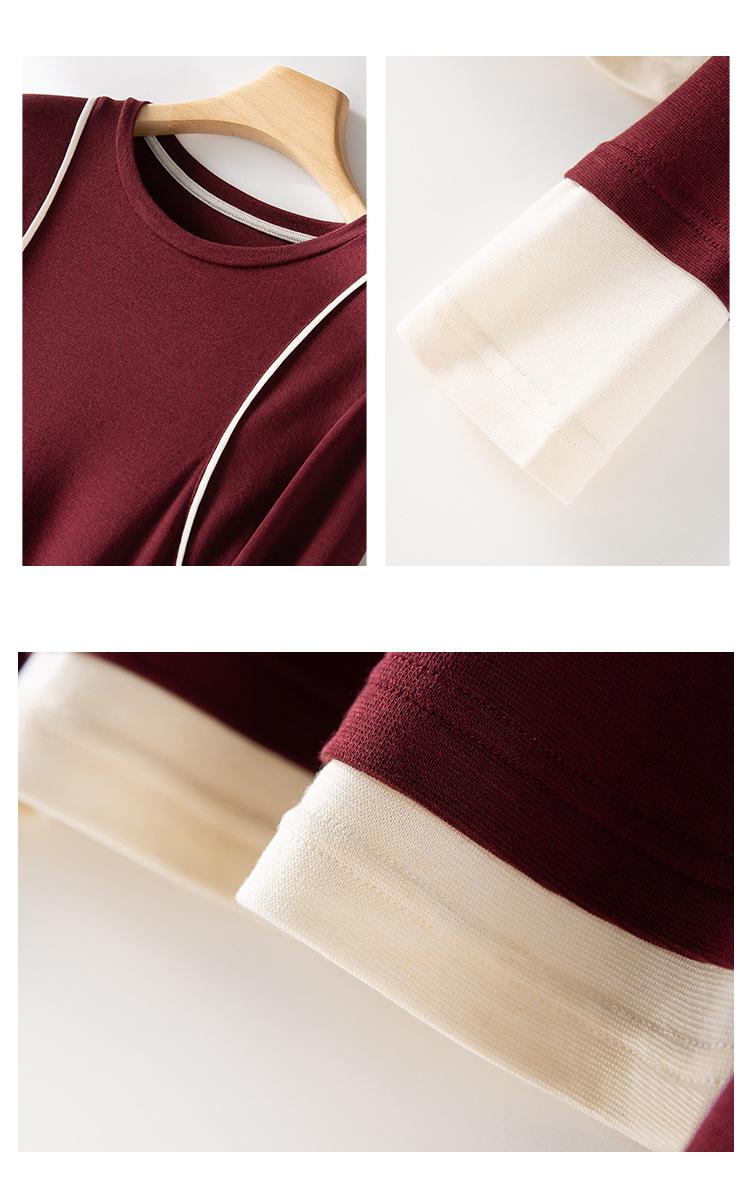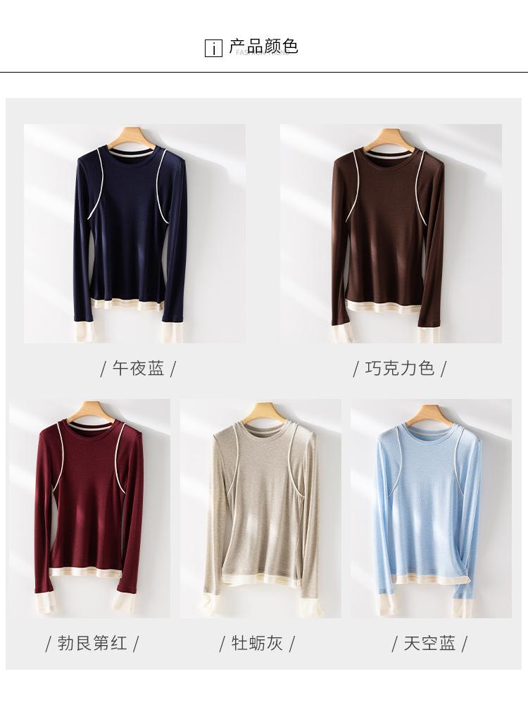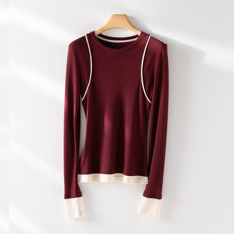 2025 Principios de Primavera Nuevo Suéter de Punto de Manga Larga con Cuello Redondo de Lana Tencel Camiseta de Contraste Elegante Jersey Top Básico para Mujer