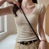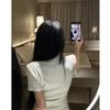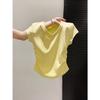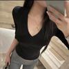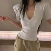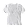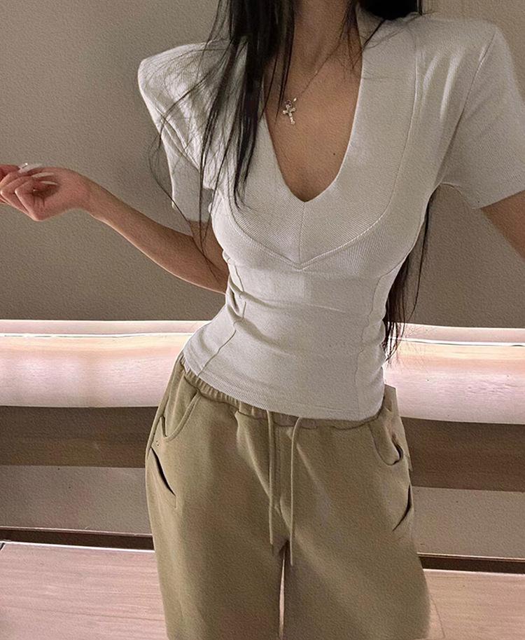 Playera de Manga Corta de Color Sólido Simple Sexy con Cuello en V y Hombro Regular para Mujer, Top Básico de Verano Ajustado Casual Versátil para Chica Hot