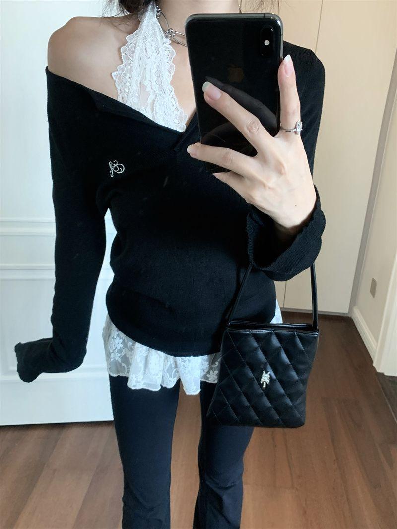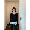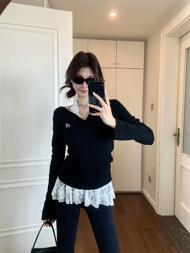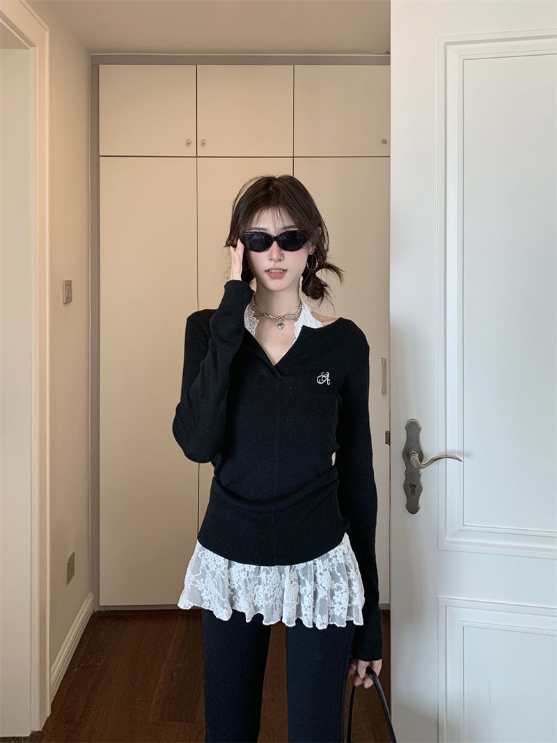 Traje de Spice Girl Dulce para Mujer Bordado de Industria Pesada en el Hombro Traje de Moda de Punto Principios de Primavera Chaleco con Cuello de Encaje Conjunto de Dos Piezas