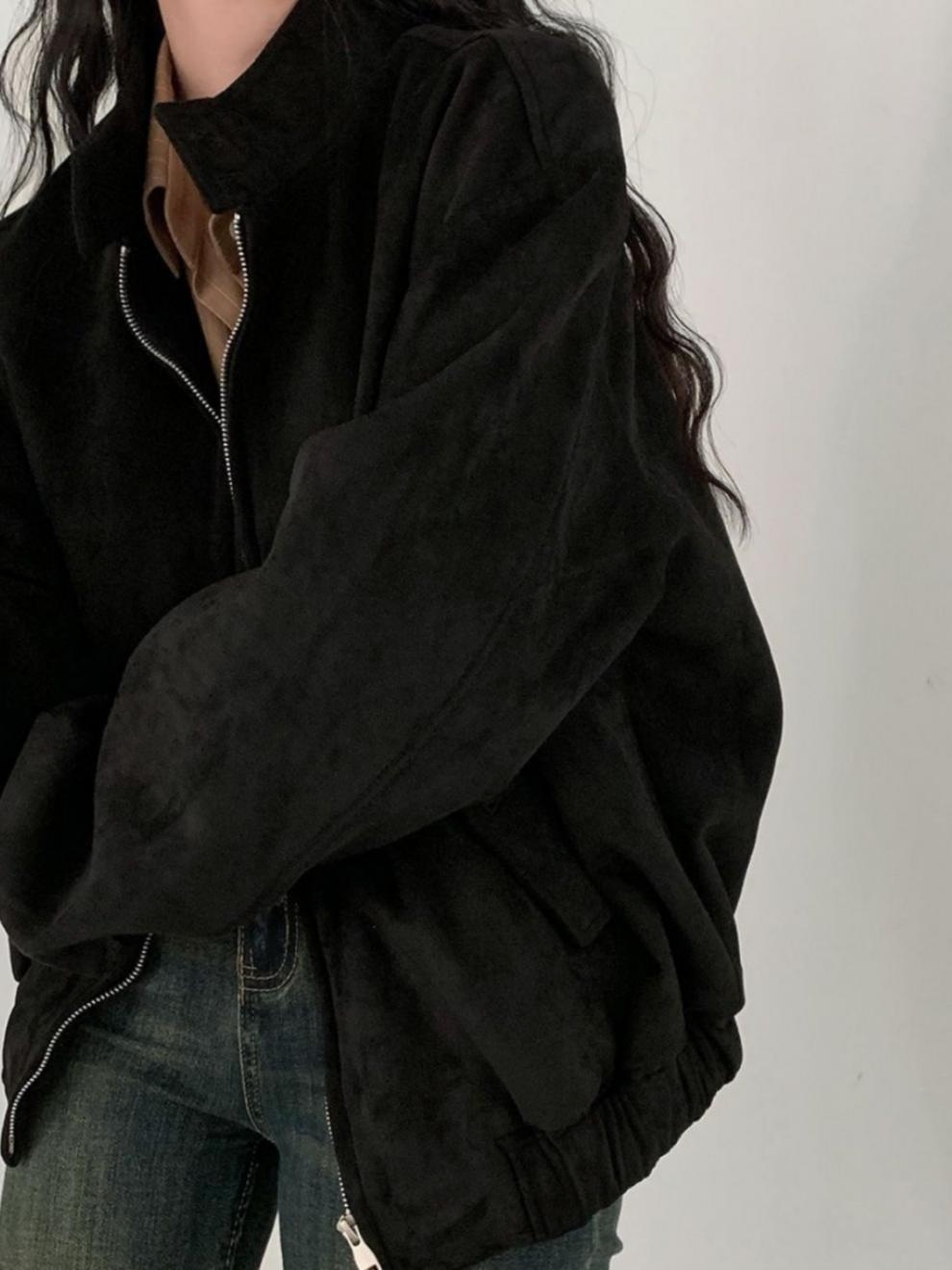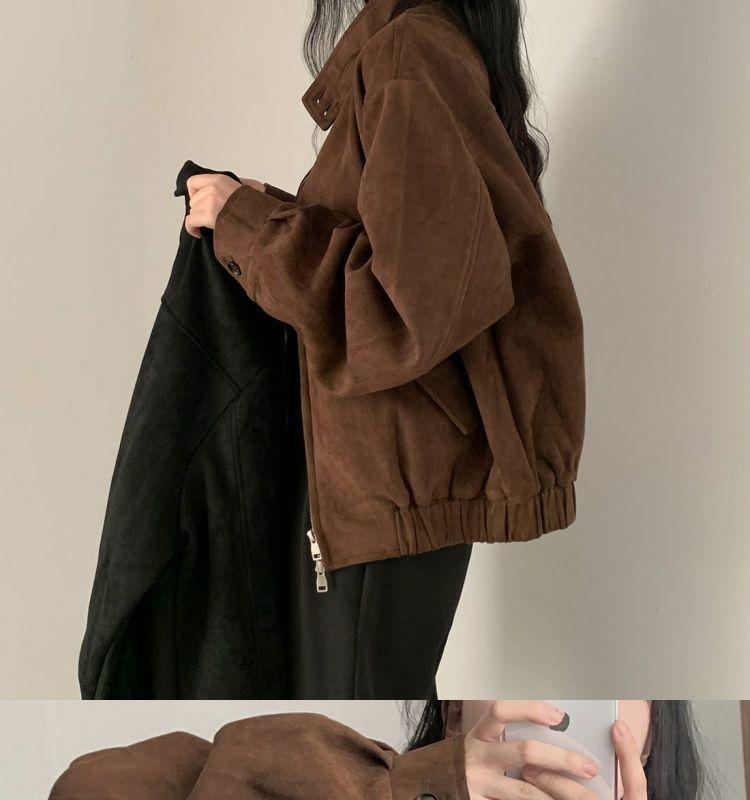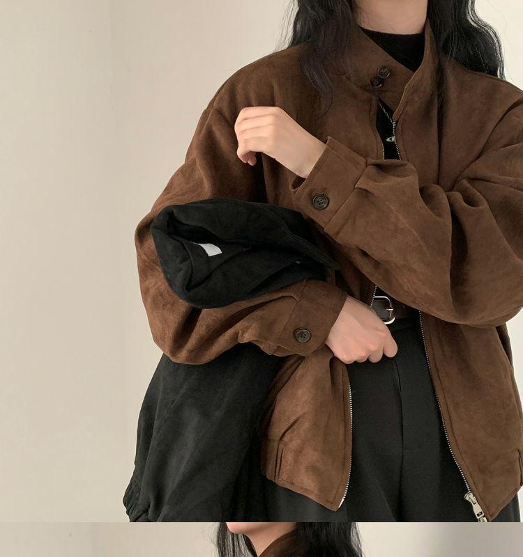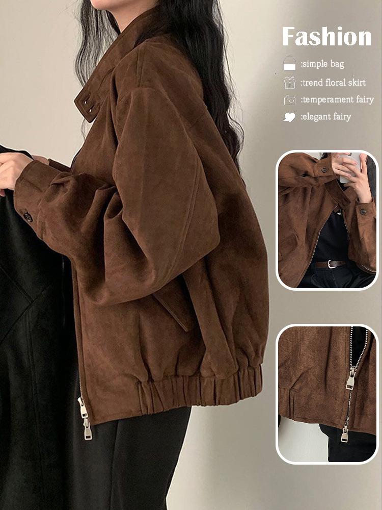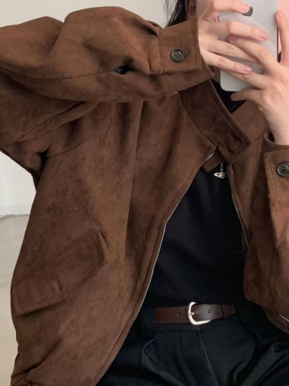 Chaqueta Nueva de Otoño e Invierno Shanli Dadi de Gamuza Sintética para Mujer, Chaqueta Corta Holgada Retro Americana