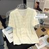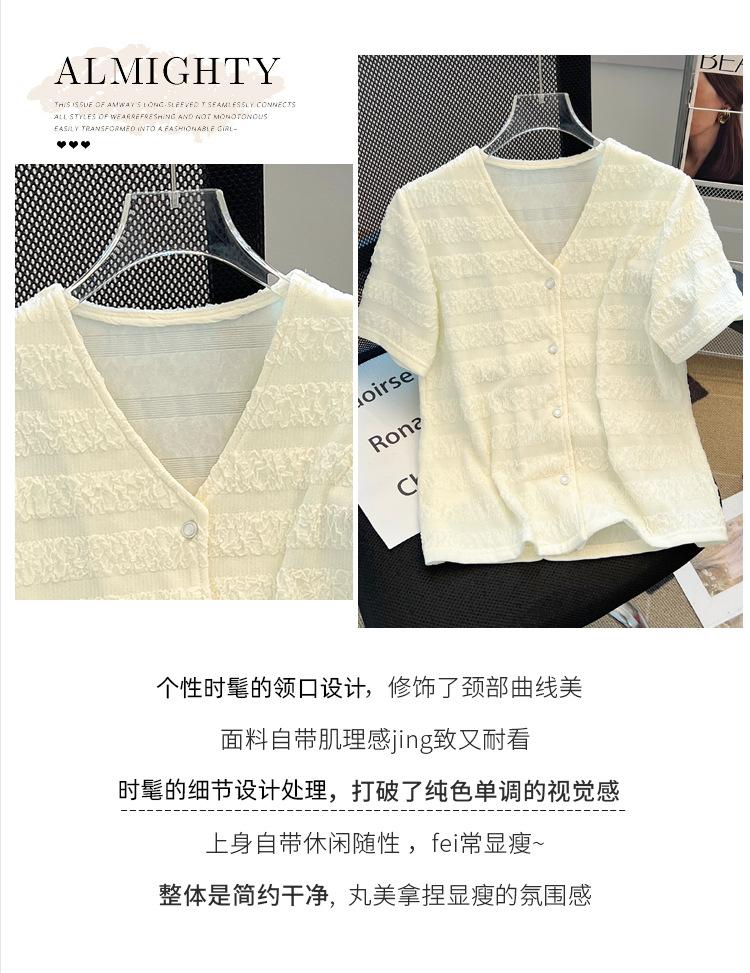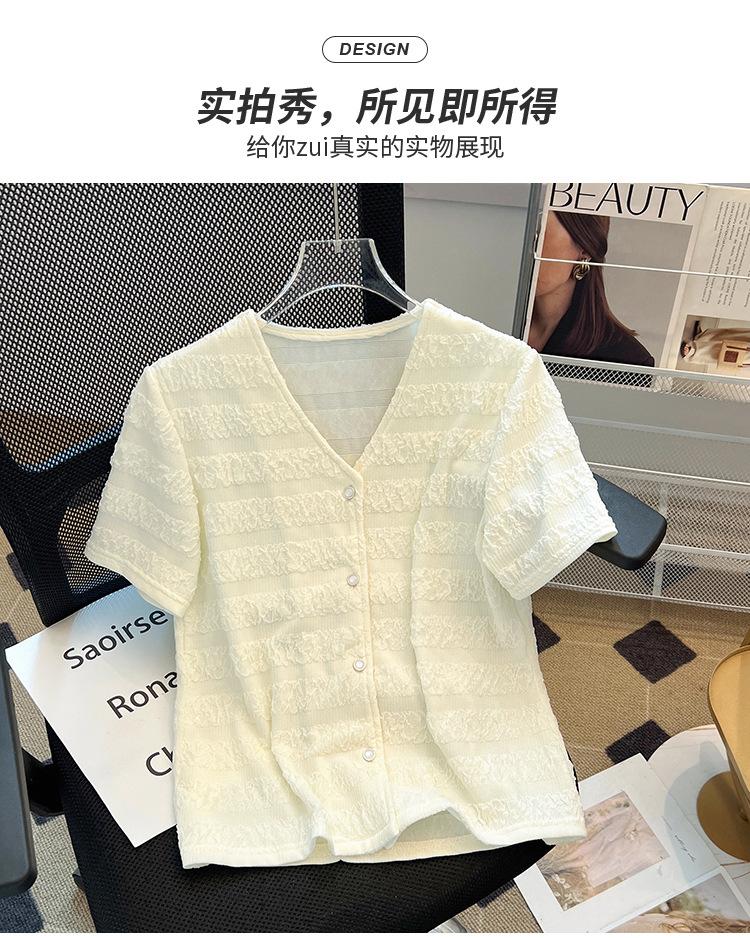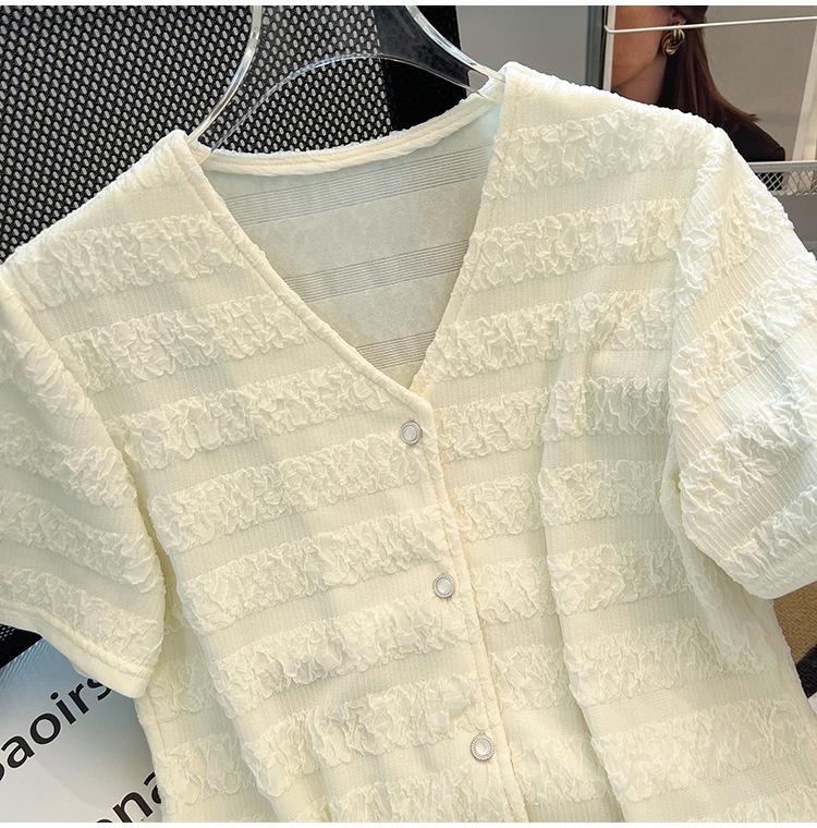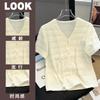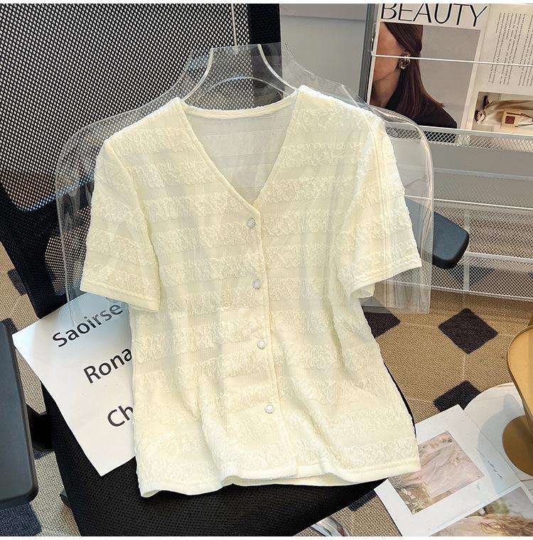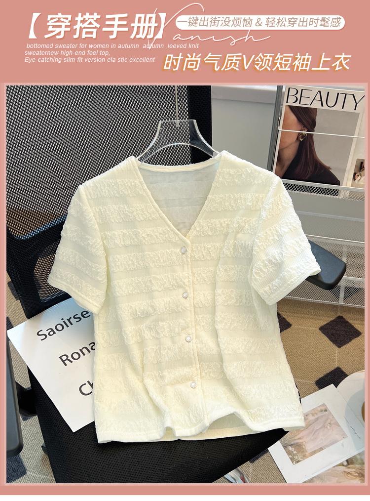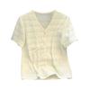 Camisa de punto de manga corta fina con textura nueva de verano 2025 para mujer, elegante blusa con cuello en V y textura francesa