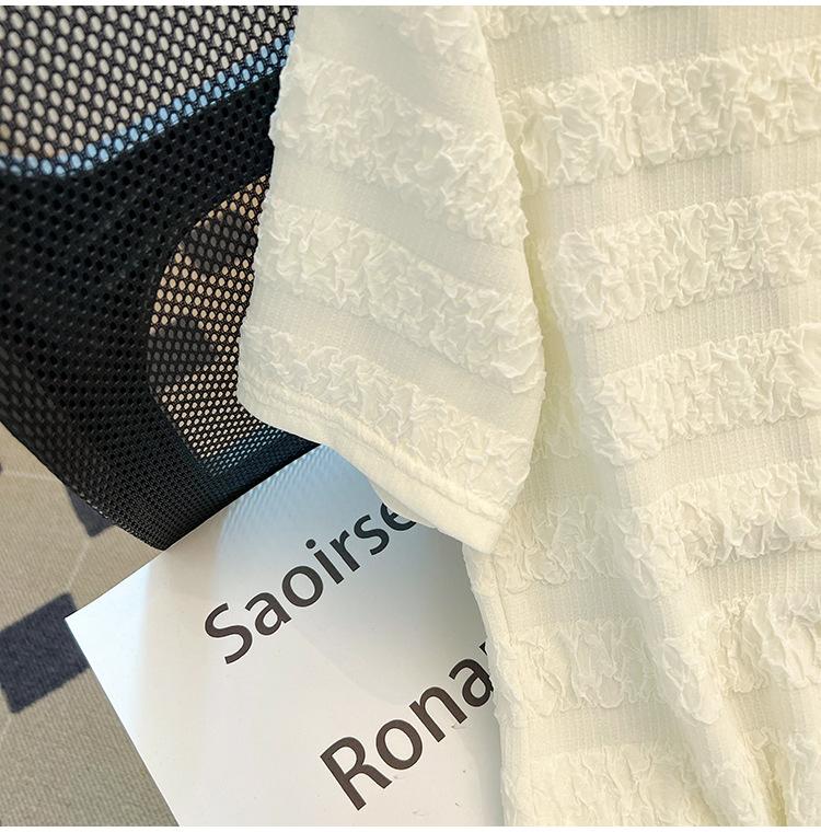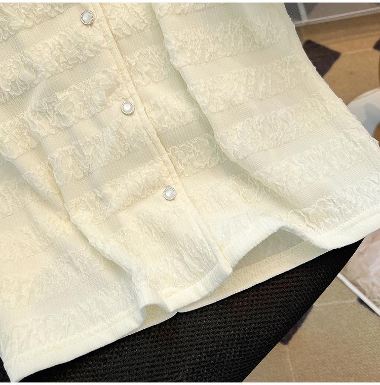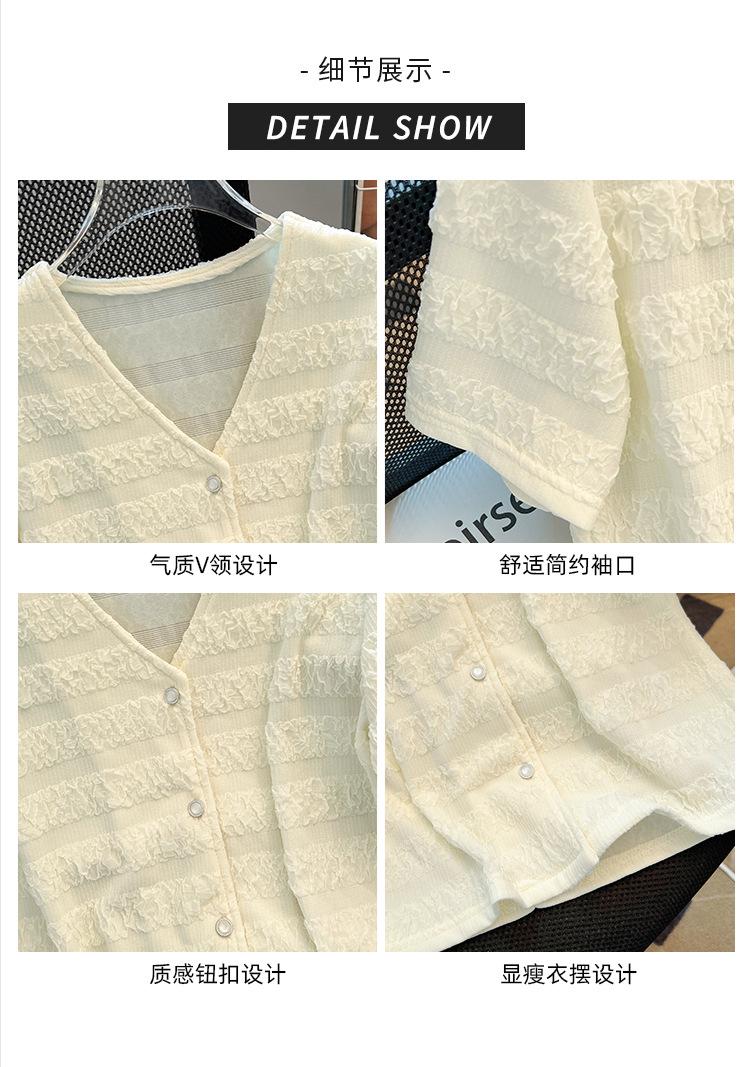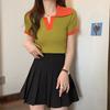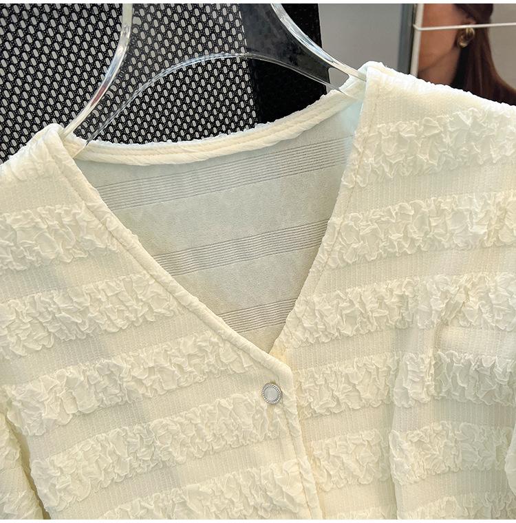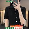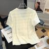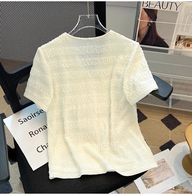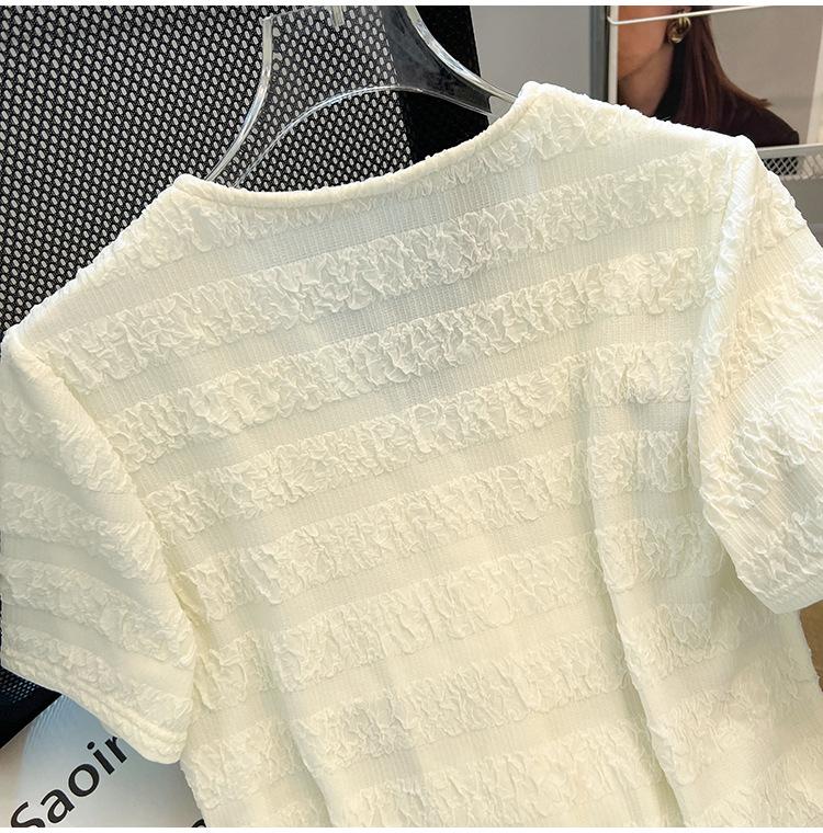 Camisa de punto de manga corta fina con textura nueva de verano 2025 para mujer, elegante blusa con cuello en V y textura francesa