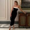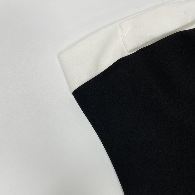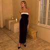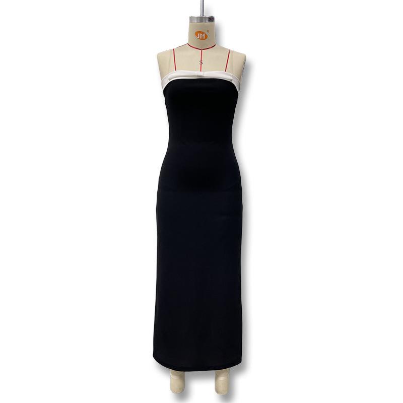 Ropa de Mujer Transfronteriza Europea y Americana 2025 Primavera y Verano Nueva Moda Costuras en Blanco y Negro Sexy Ajustado Cubre Caderas Vestido Tubo