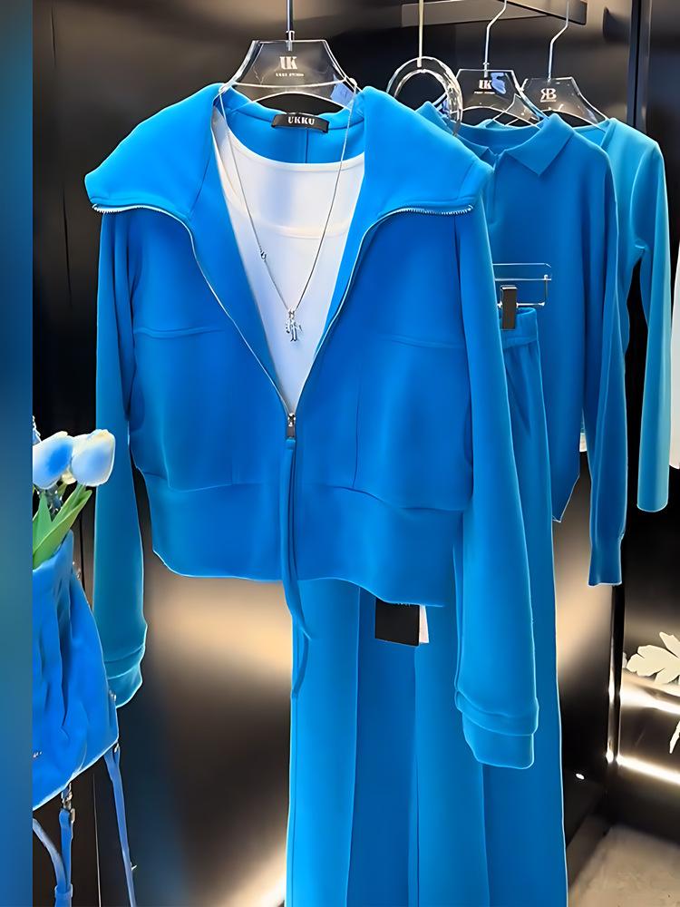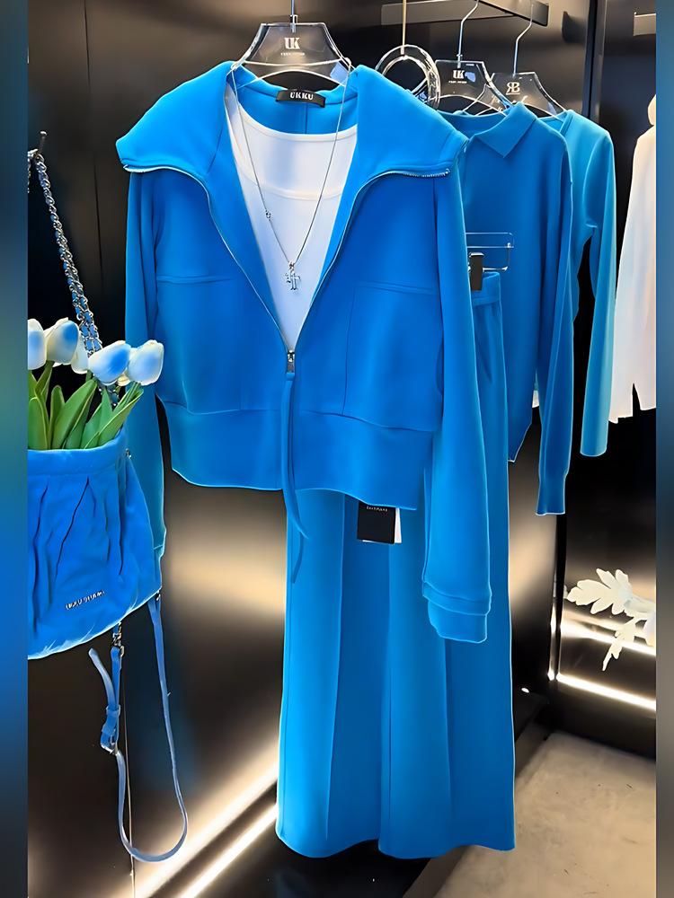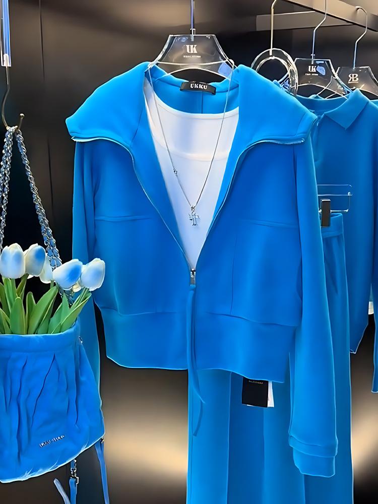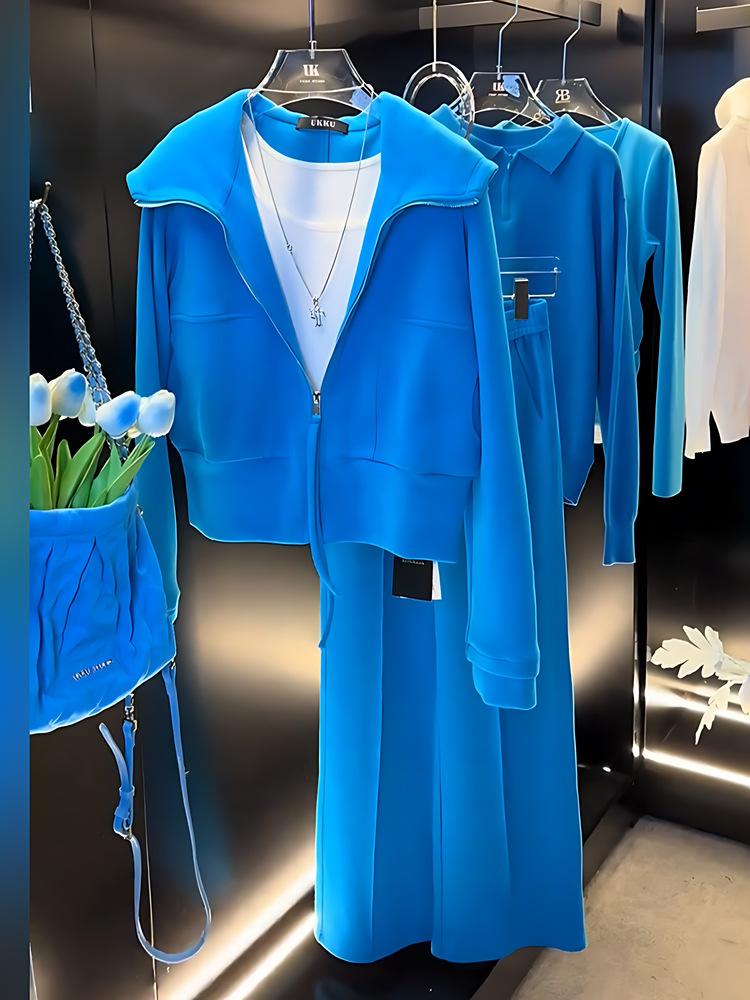 Traje deportivo casual azul para mujer 2025 Primavera Nuevo Moda Europea Estilo Occidental Ropa de Alta Gama Conjunto de Dos Piezas