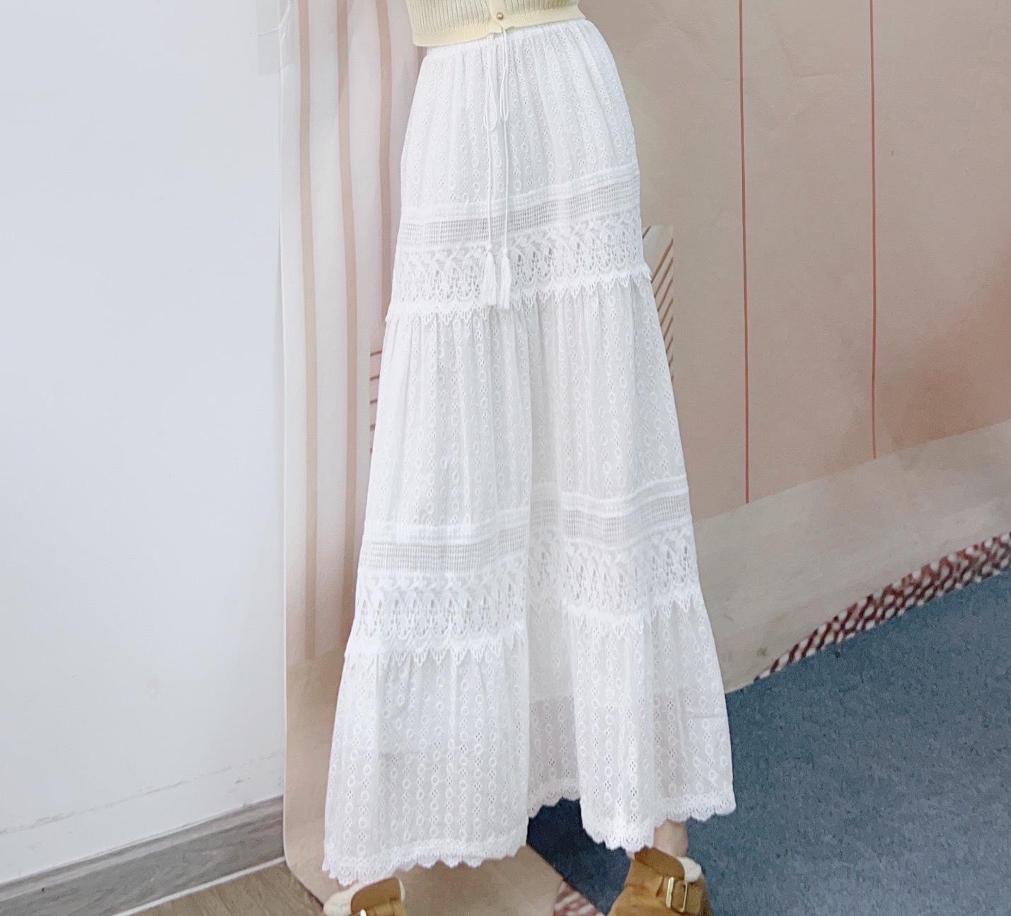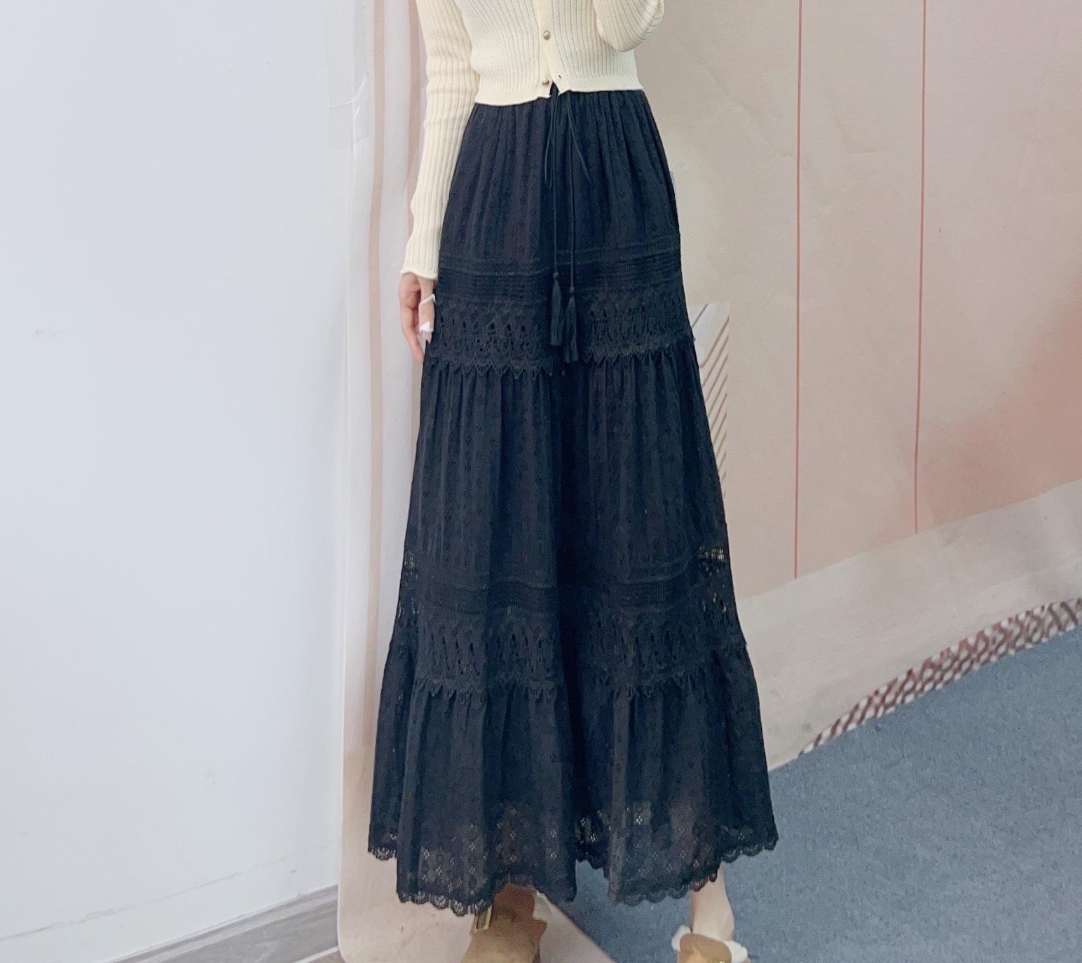 Primavera 2025 Nueva Moda Cintura Alta Adelgazante Versátil Dulce Calado Bordado Crochet Falda 333
