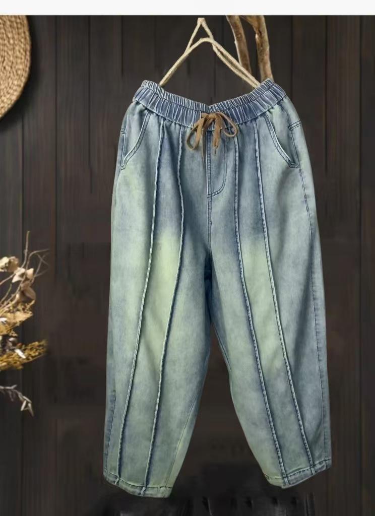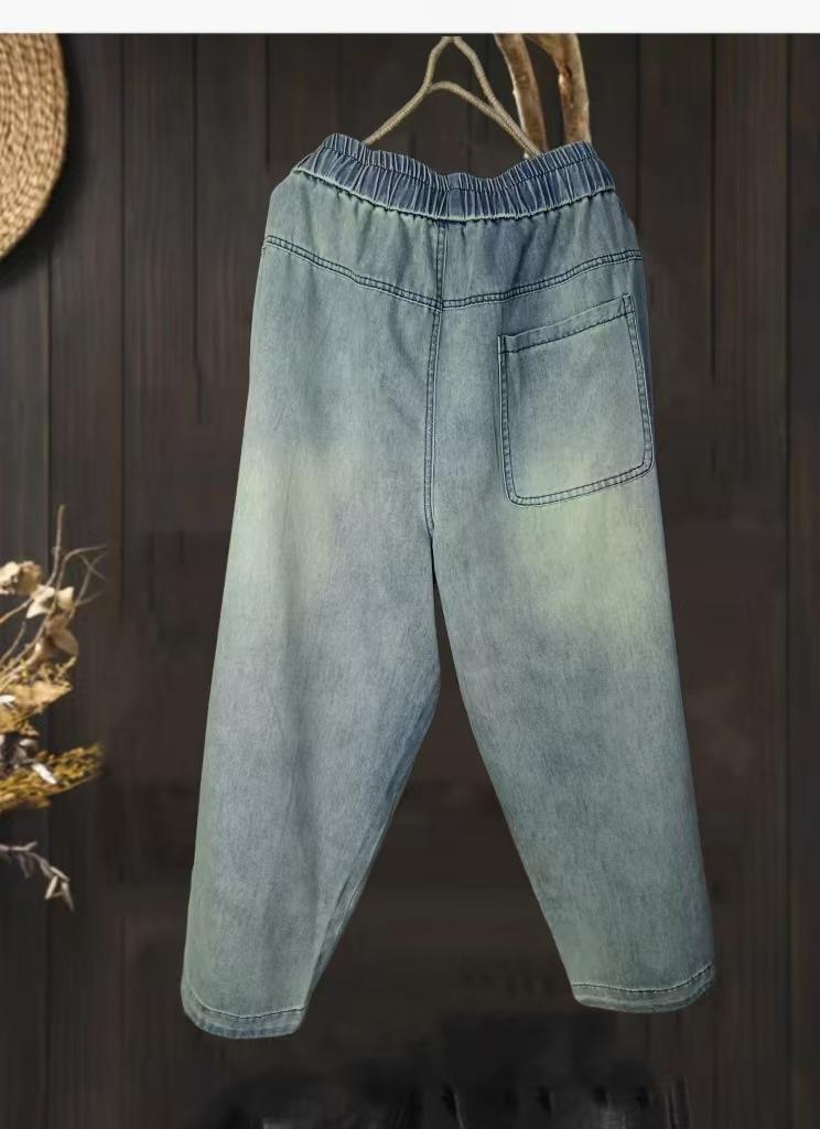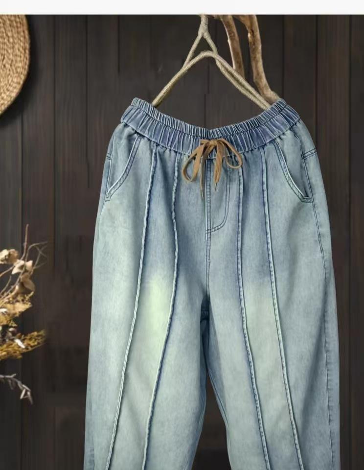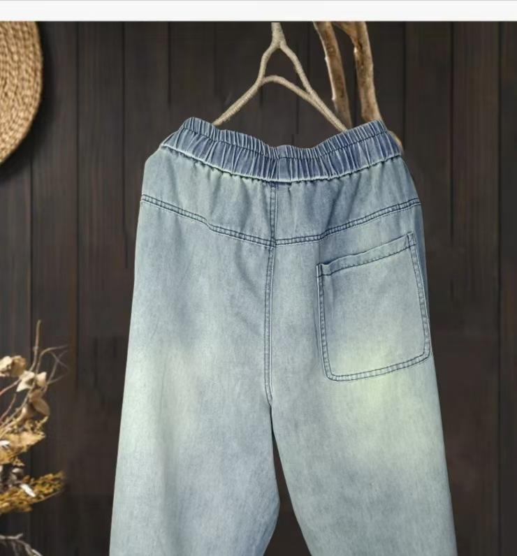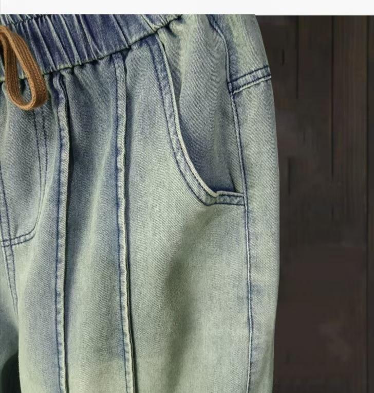Pantalones Harem de Mezclilla de Pierna Ancha Vintage Nuevos Primavera/Verano 2025 para Mujer, Versátiles Holgados Adelgazantes Cortos Pantalones de Papá Pantalones Baggy
