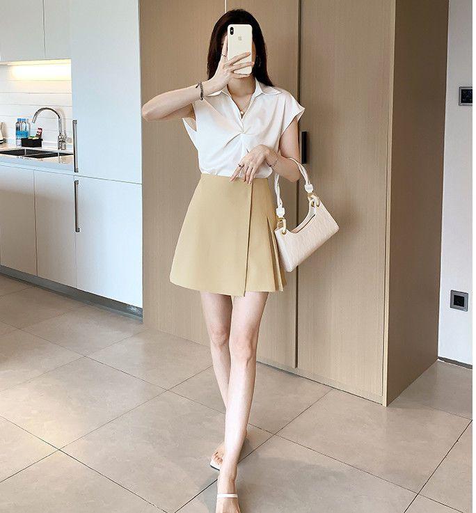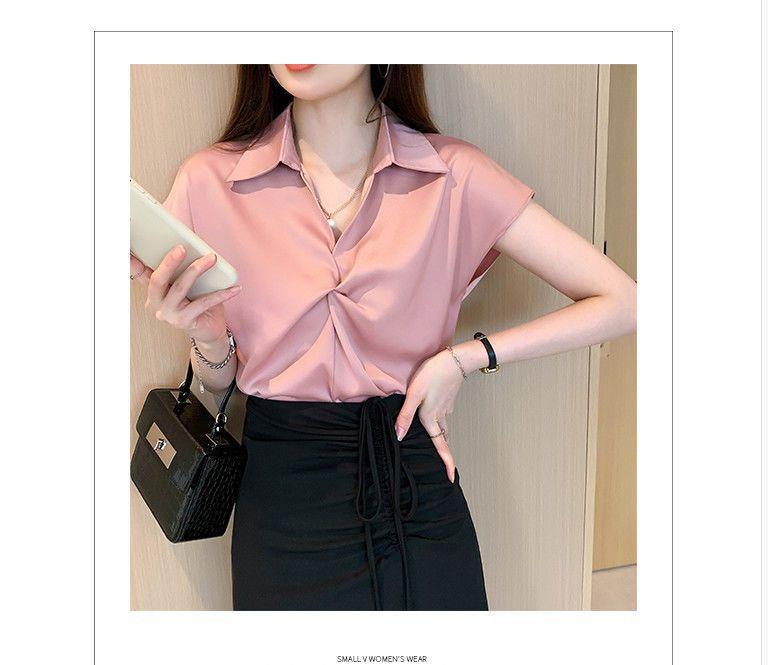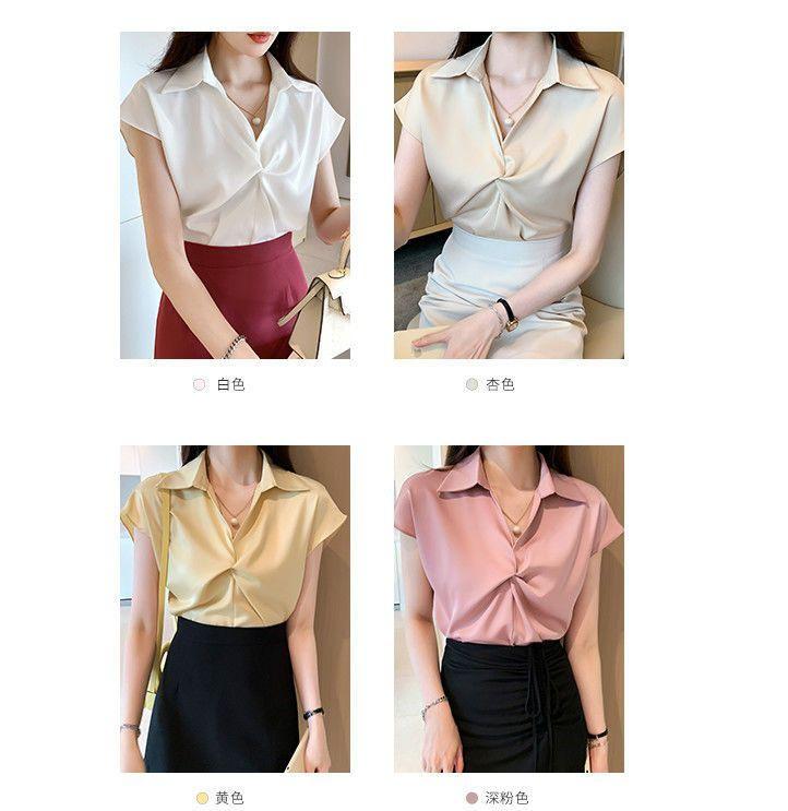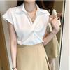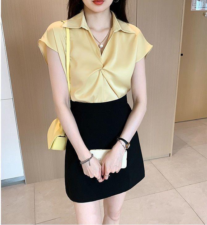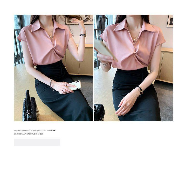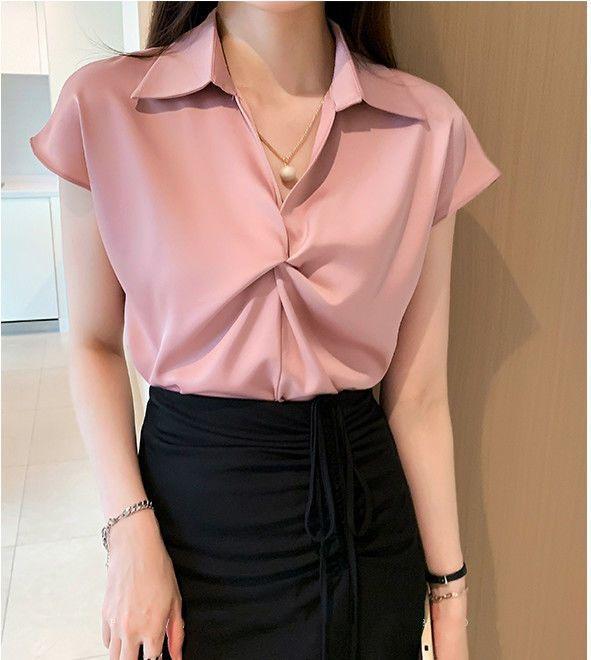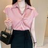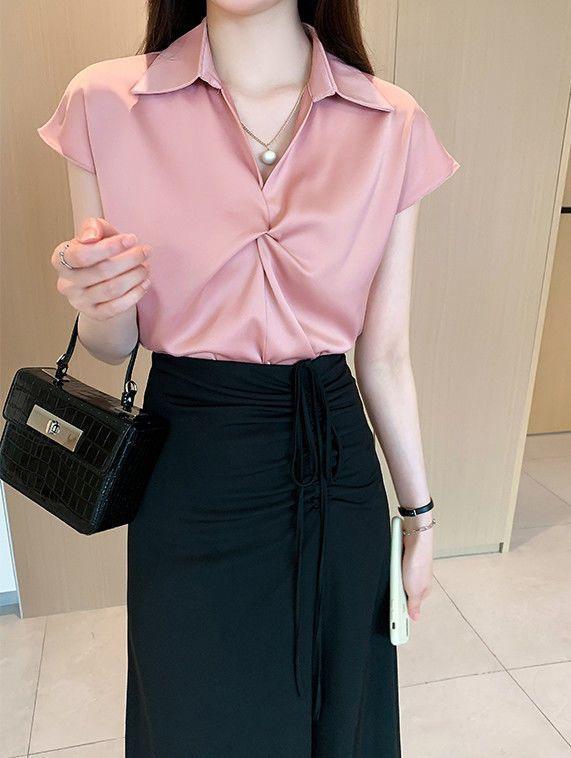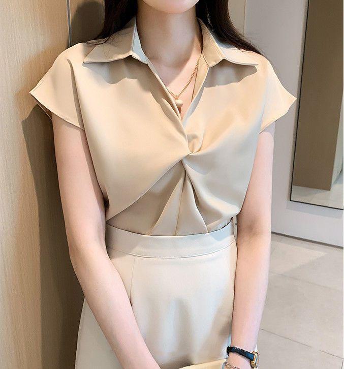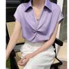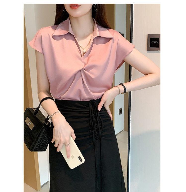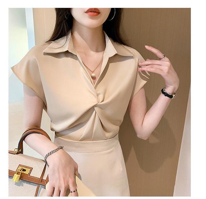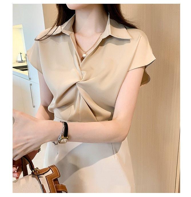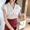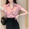Camisa Sexy de Gasa para Mujer Verano 2025 Nuevo Diseño Elegante Nicho Plisado Manga Corta Top Elegante Trendy