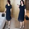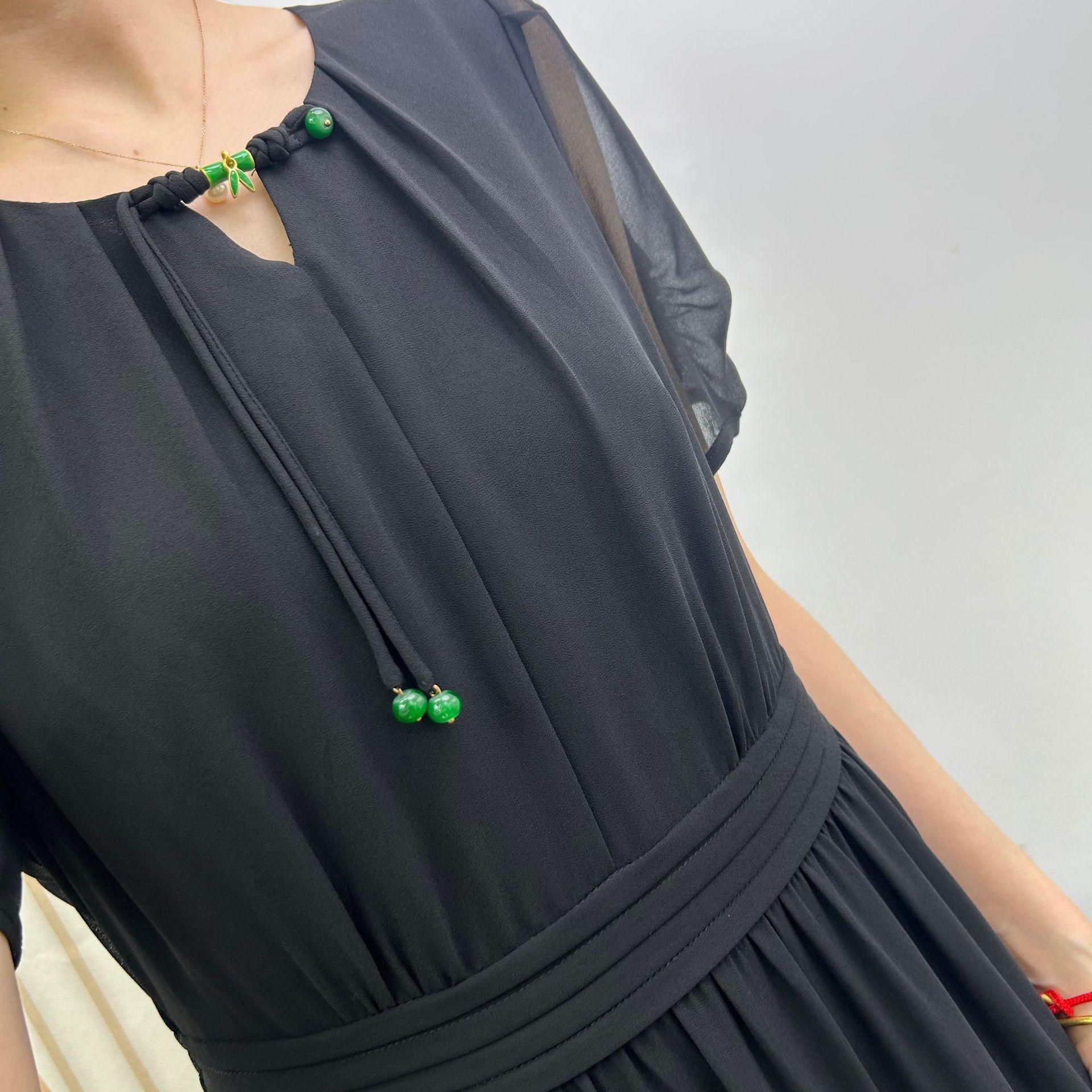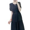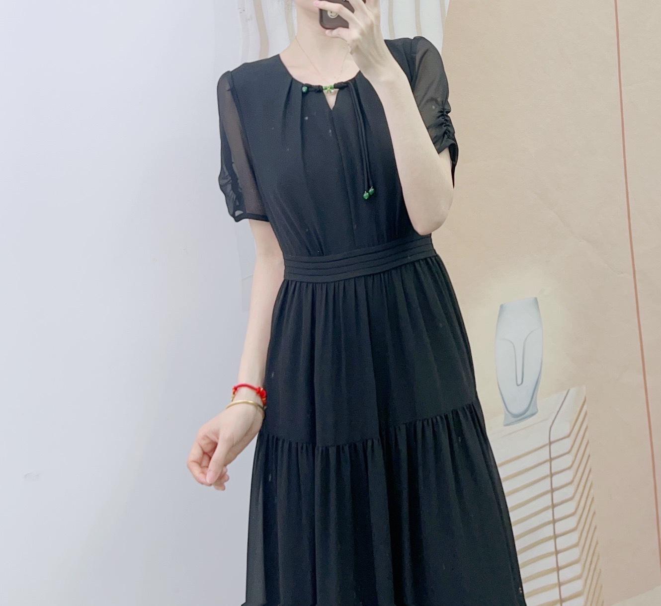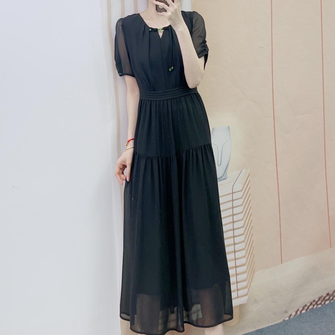 Vestido de gasa elegante, adelgazante y de manga corta, largo medio, para principios de verano de 2025, 037