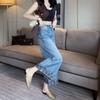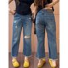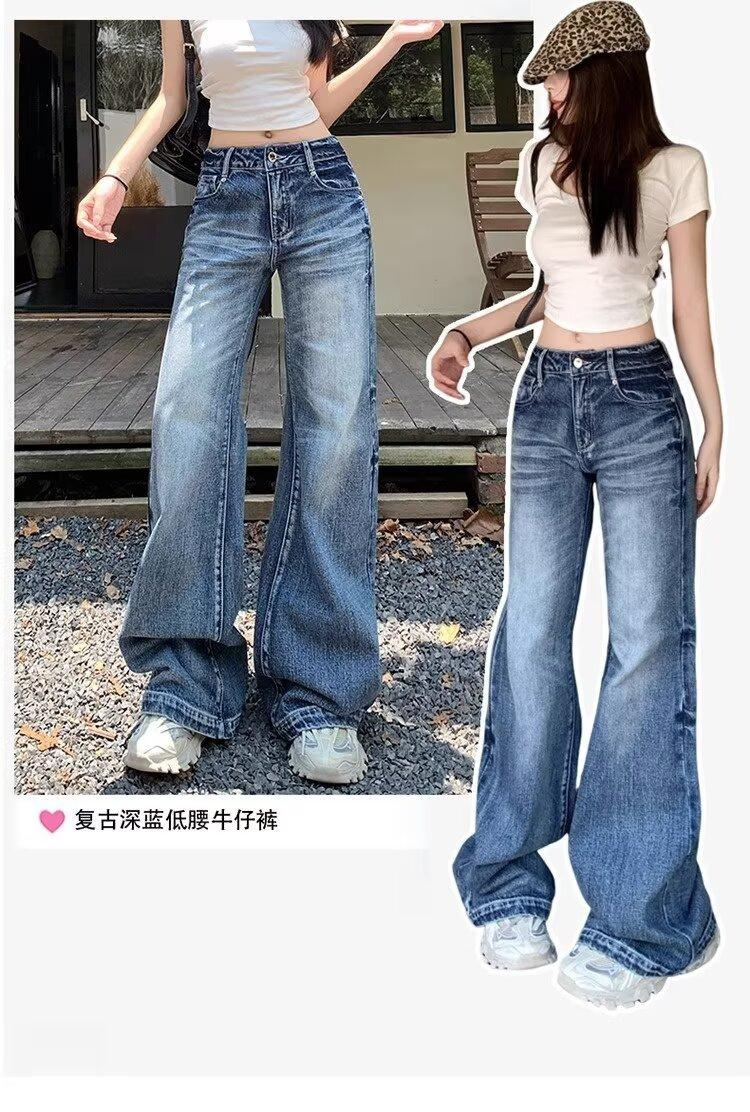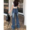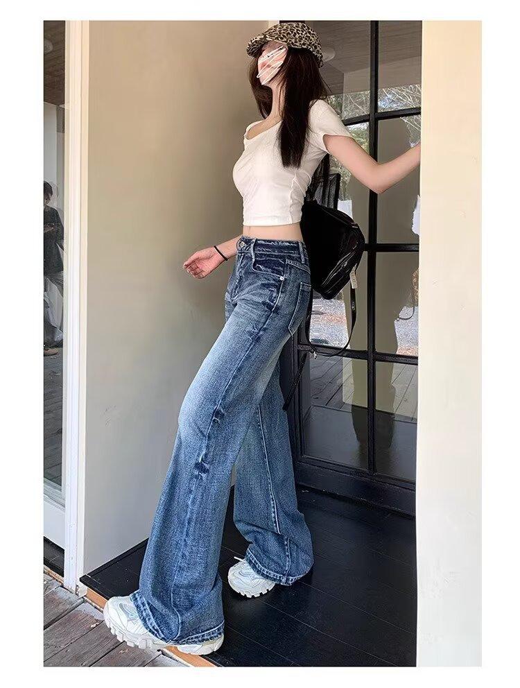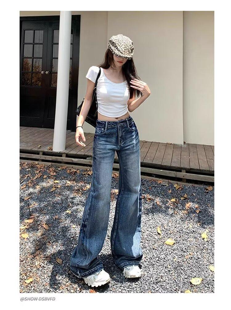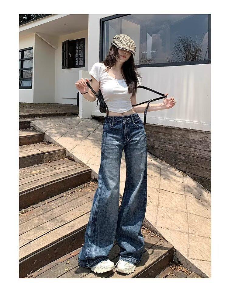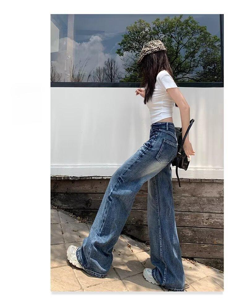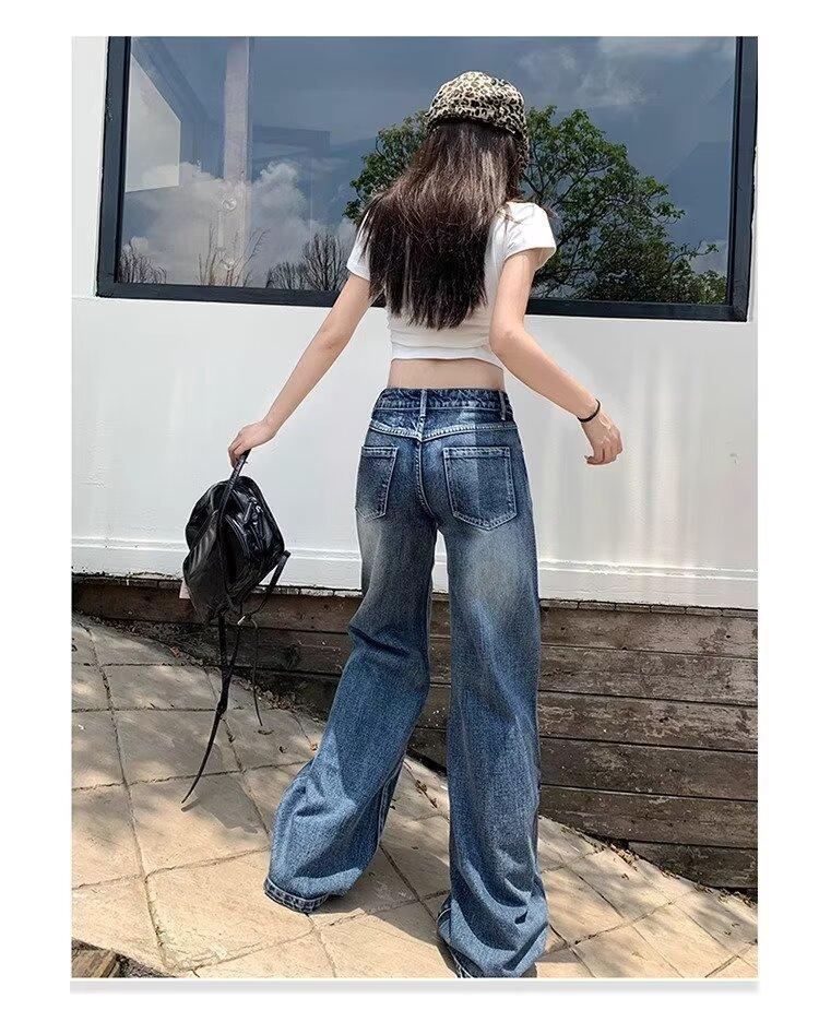 Talla grande Estilo Americano Vintage Lavado Jeans de Pierna Recta para Mujer 2025 Verano Nuevo Cintura Alta Entallados Adelgazantes Pantalones de Pierna Ancha