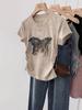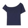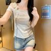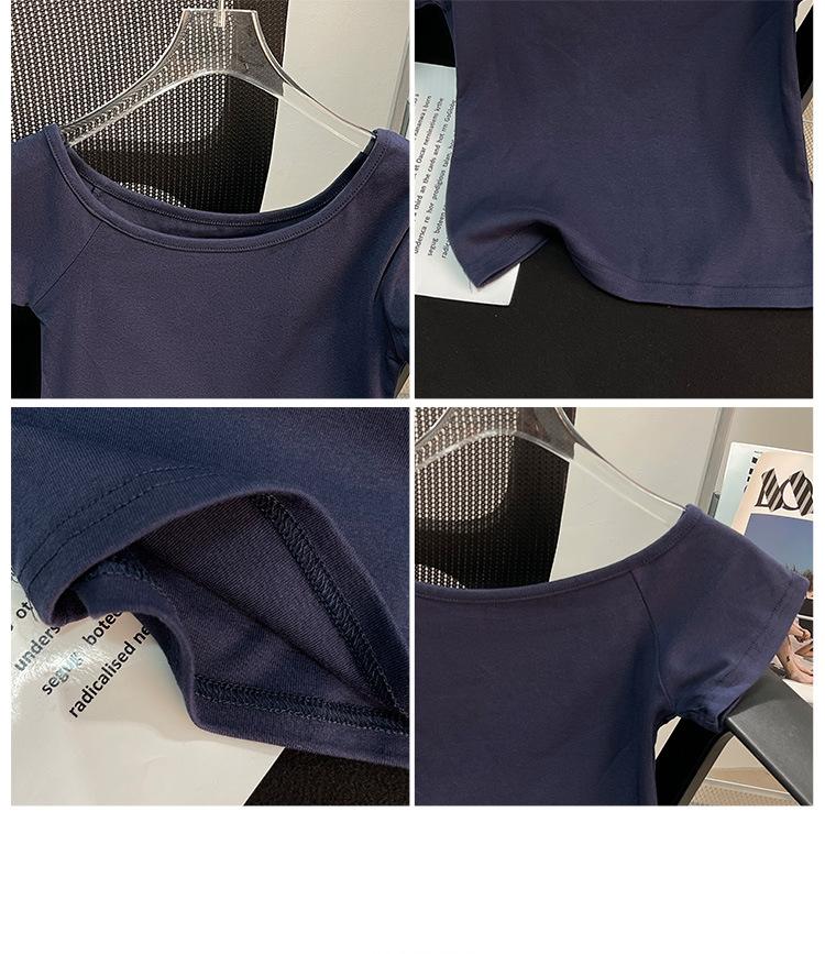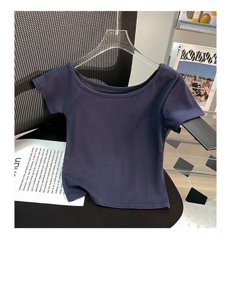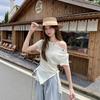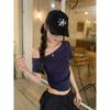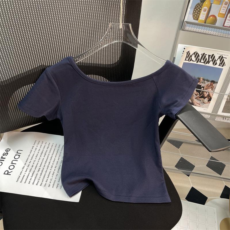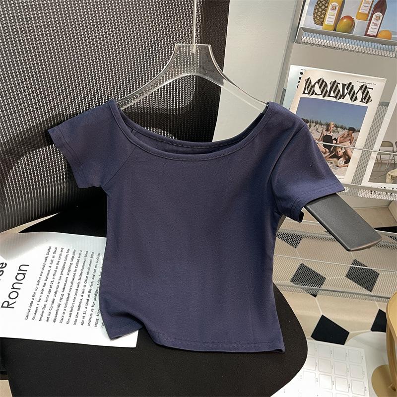 Diseño Estilo Chica Caliente Camiseta de Manga Corta con Hombros Descubiertos para Mujer Verano 2025 Nuevo Retro Slim Corto Top de Algodón Puro Trendy